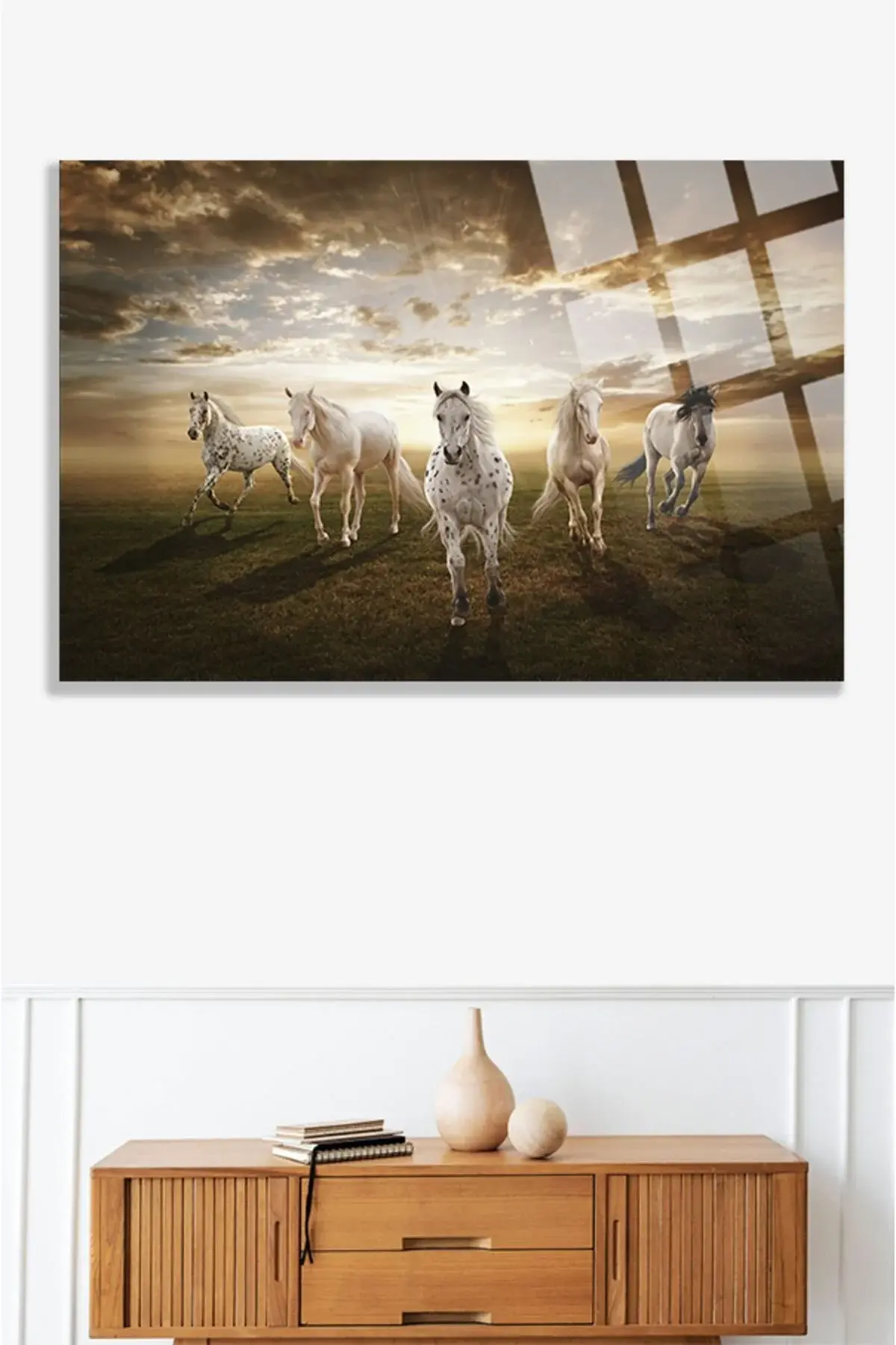 Koşan Atlar Lüks Kırılmaz Cam Tablo, Ev Ve Ofis Hediyesi Yüksek Çözünürlüklü 4mm Lüks Tablo