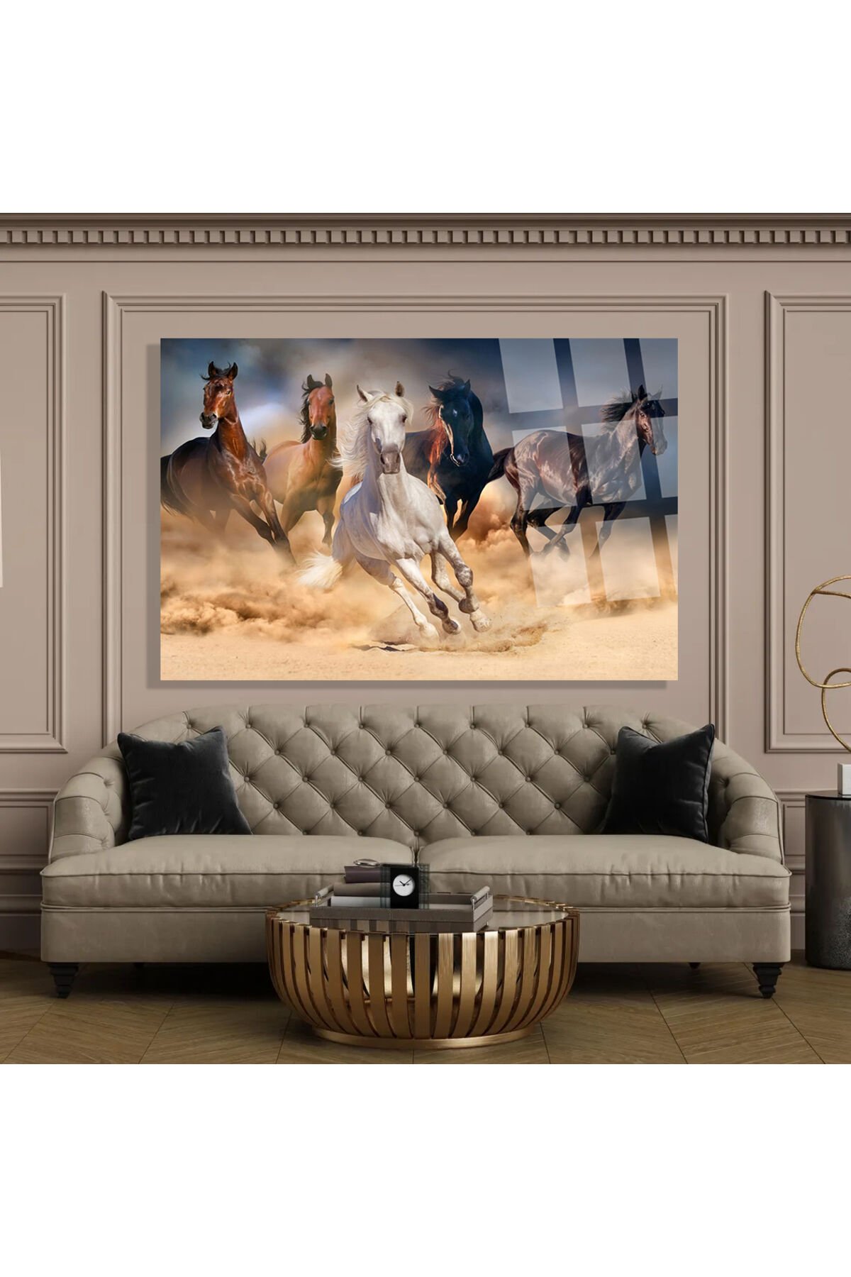 KOŞAN ATLAR ULTRA CANLI RENKLİ KIRILMAZ CAM TABLO EV HEDİYESİ AT TABLOSU Kahverengi