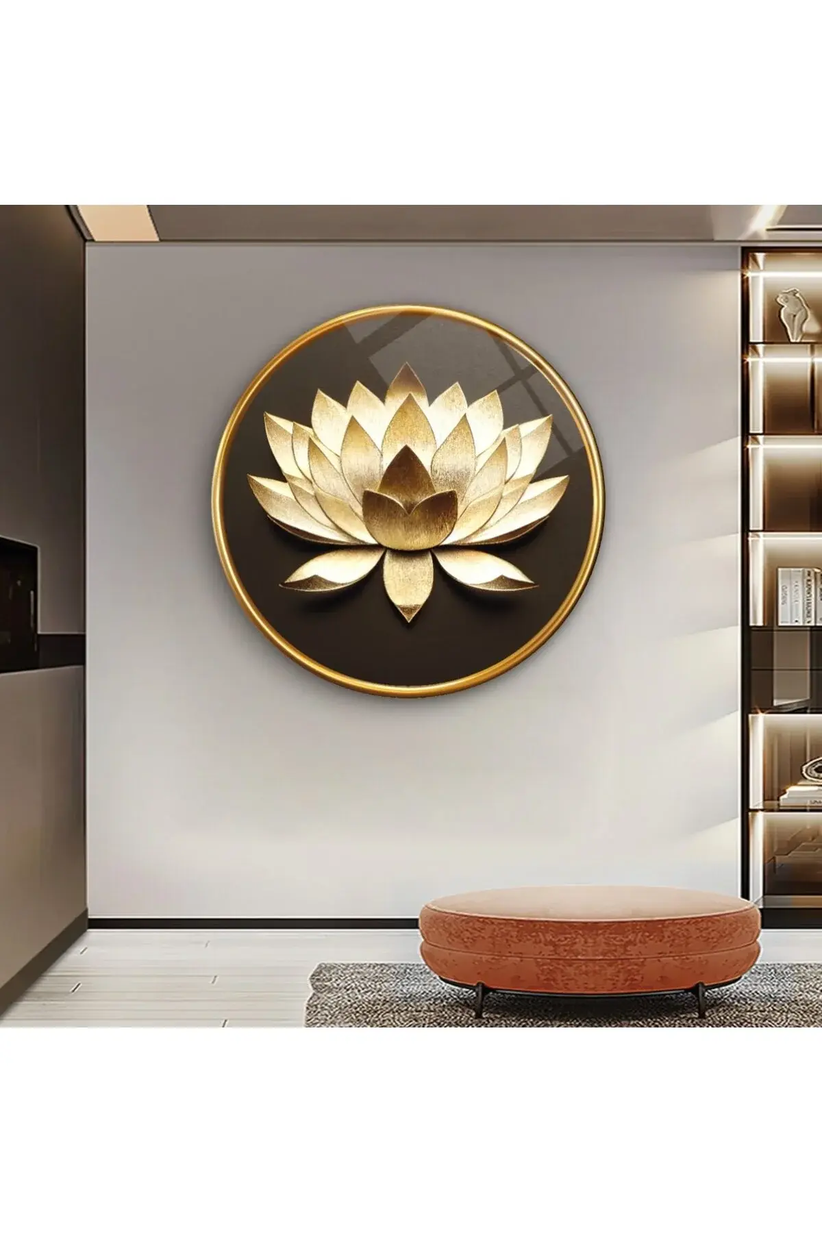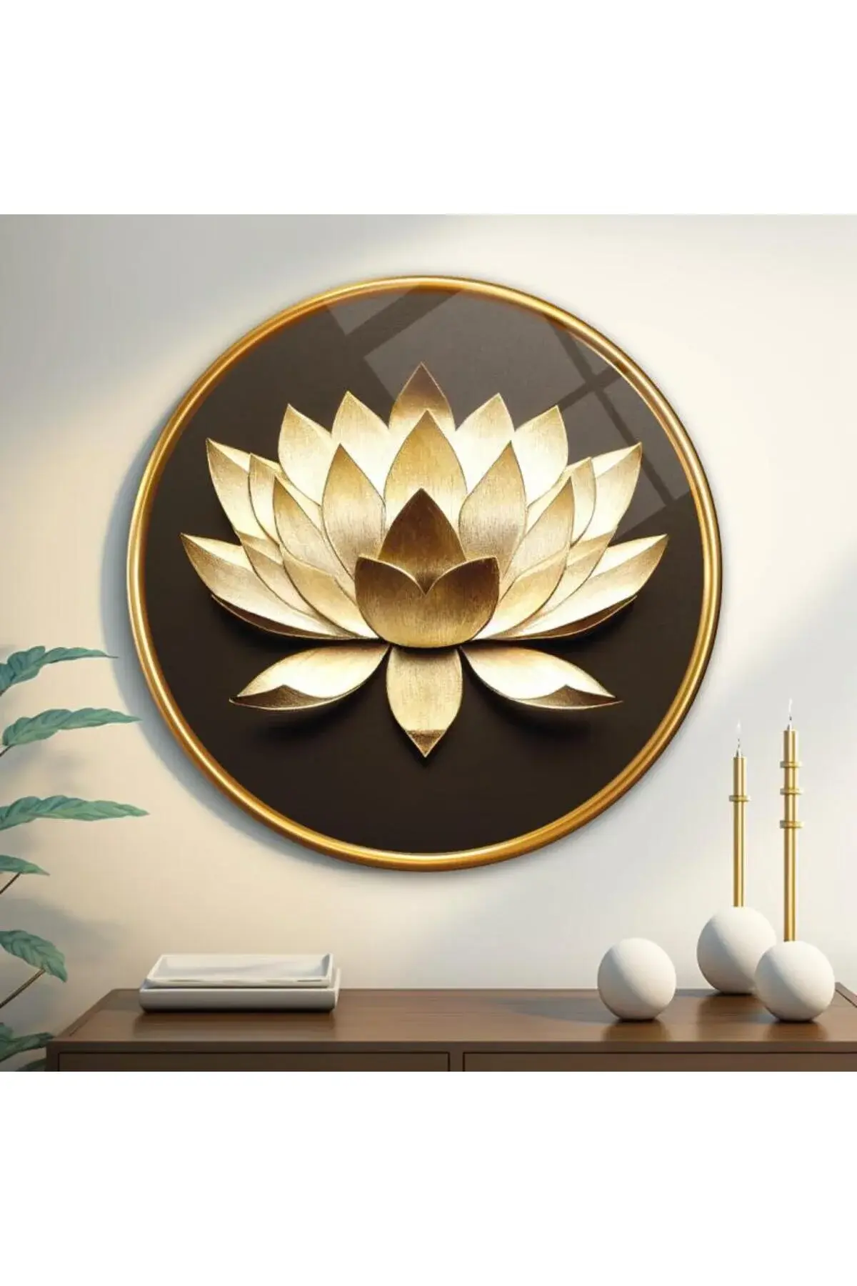 KREM RENGİ BOHEM LOTUS ÇİÇEĞİ TASARIMI KIRILMAZ MODERN CAM TABLO LÜKS HEDİYE Krem