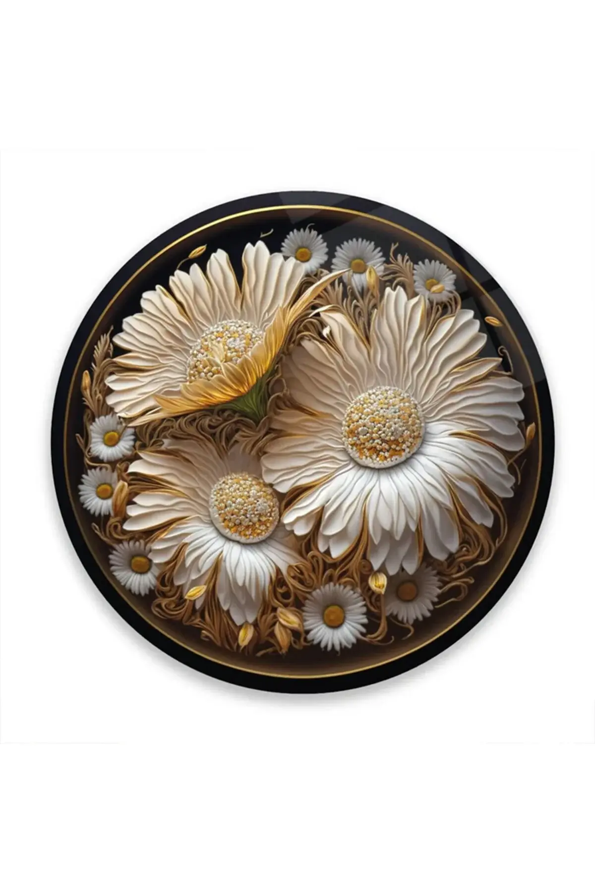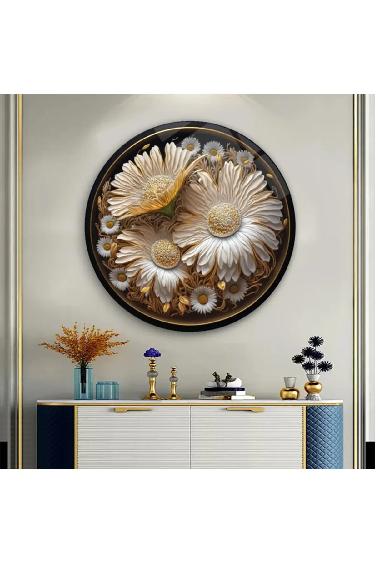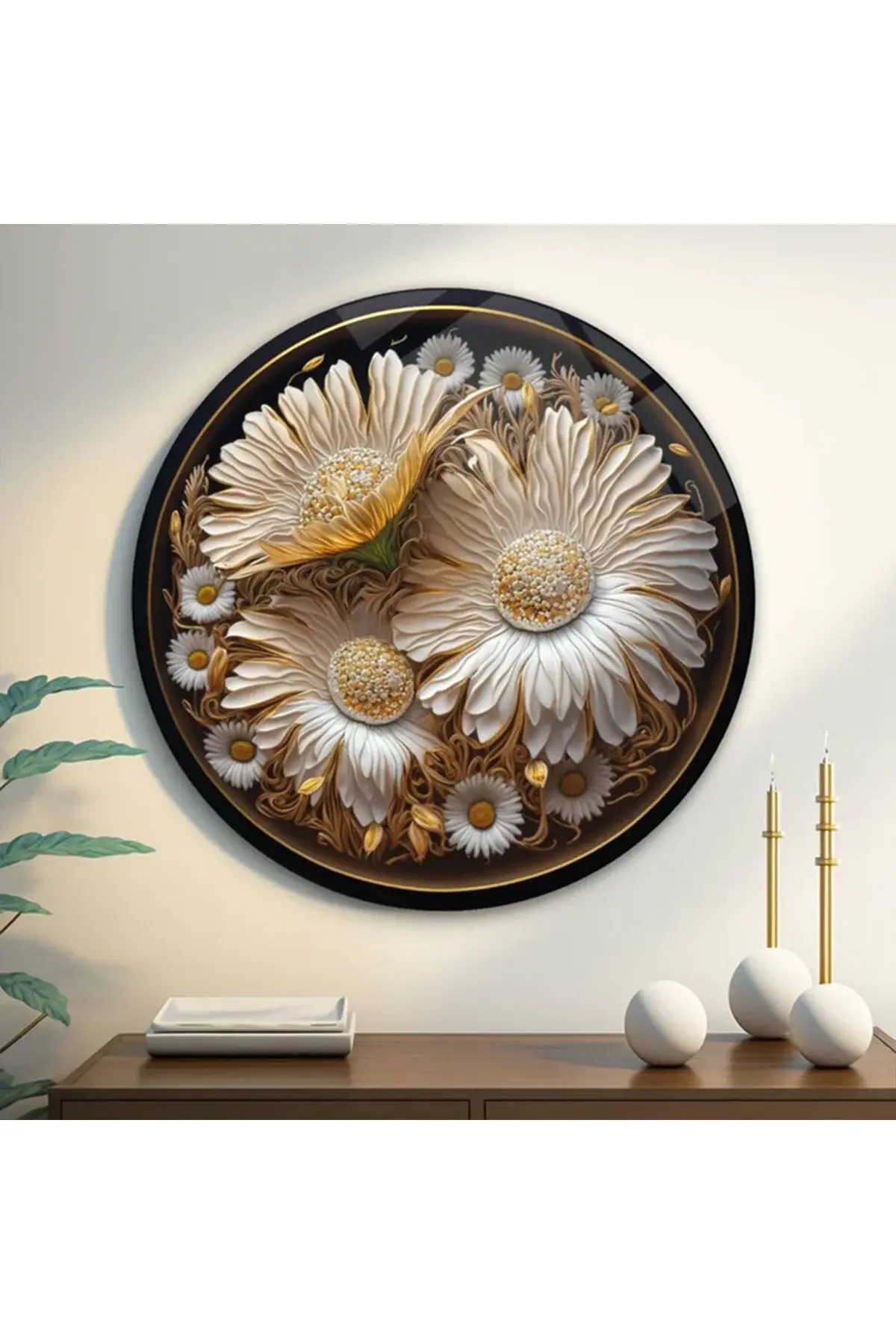 KREM RENK SALON ÇİÇEĞİ TABLOSU TASARIMI MODERN KIRILMAZ LÜKS YUVARLAK CAM TABLO MODERN HEDİYE TABLO Krem