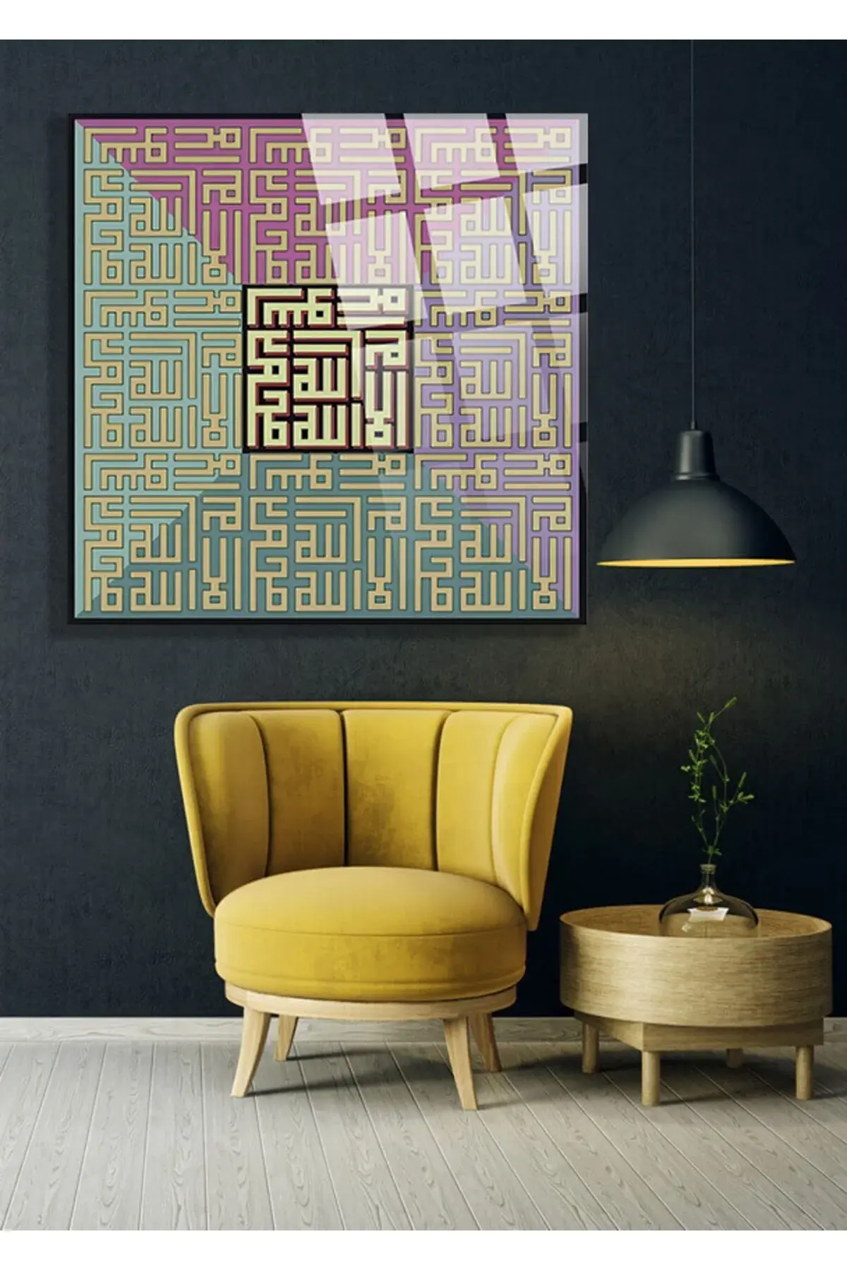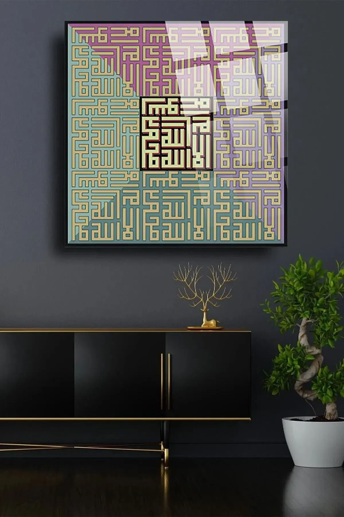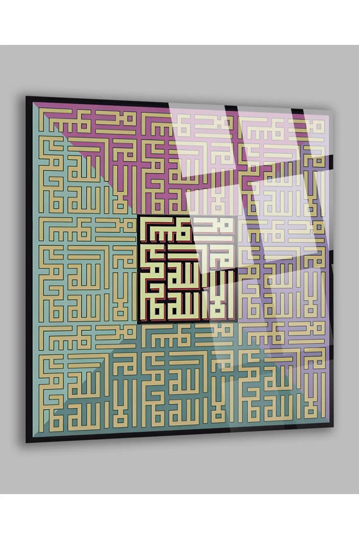 Kufi Sanatı Dini İslami Kırılmaz Cam Tablo, Ev Ofis Hediyesi Yüksek Çözünürlüklü 4mm Cam Tablo