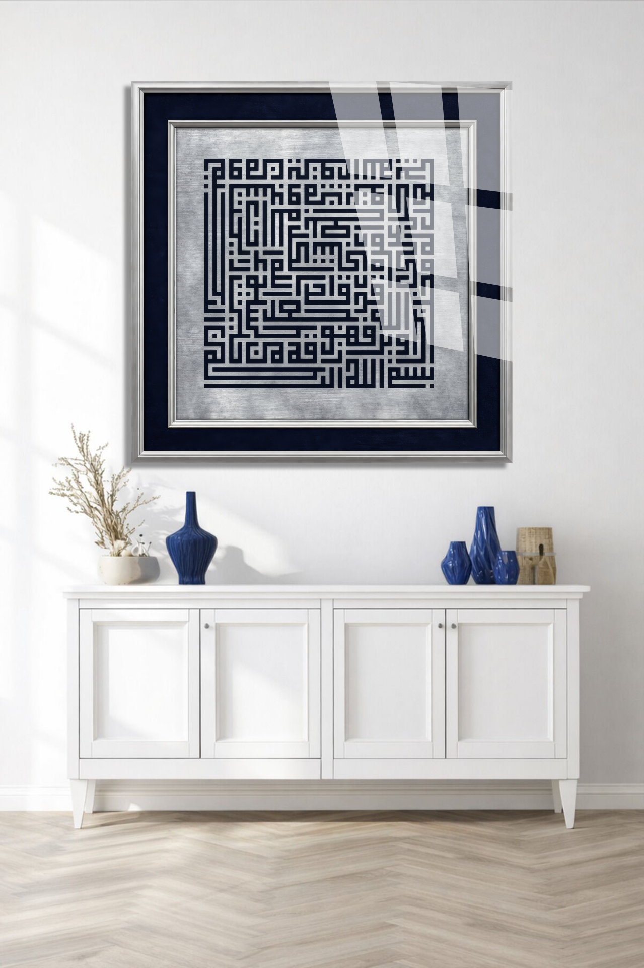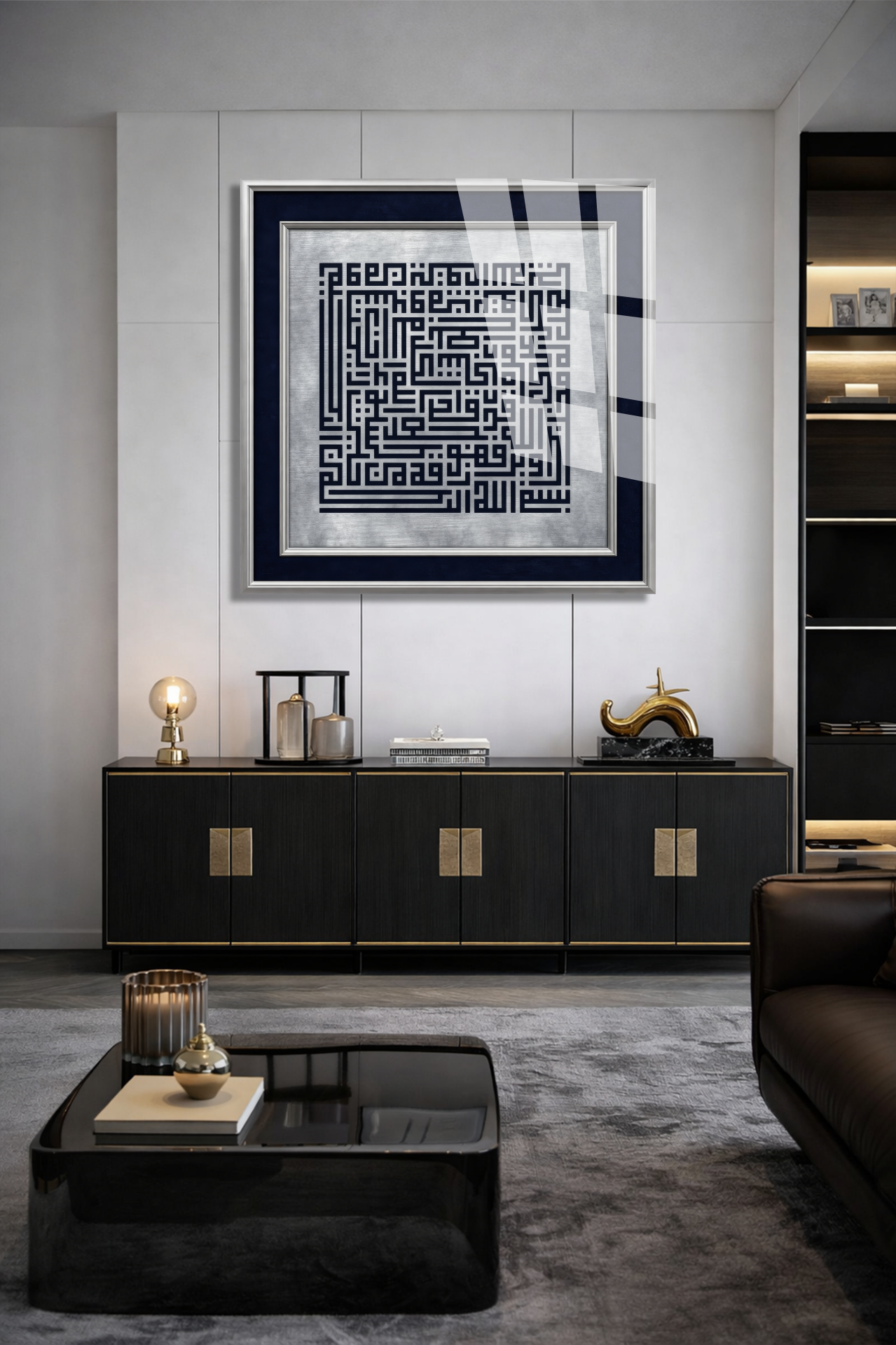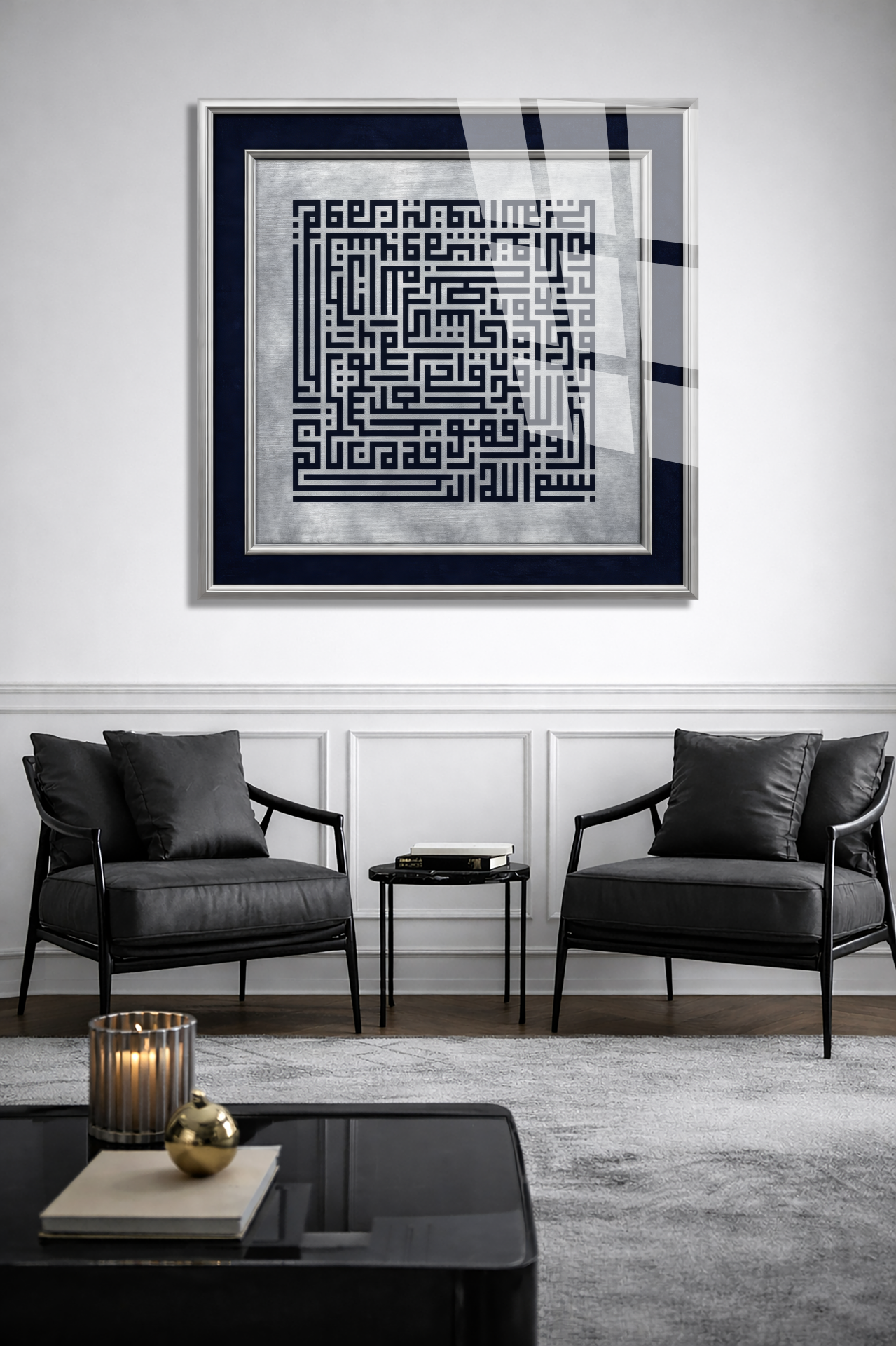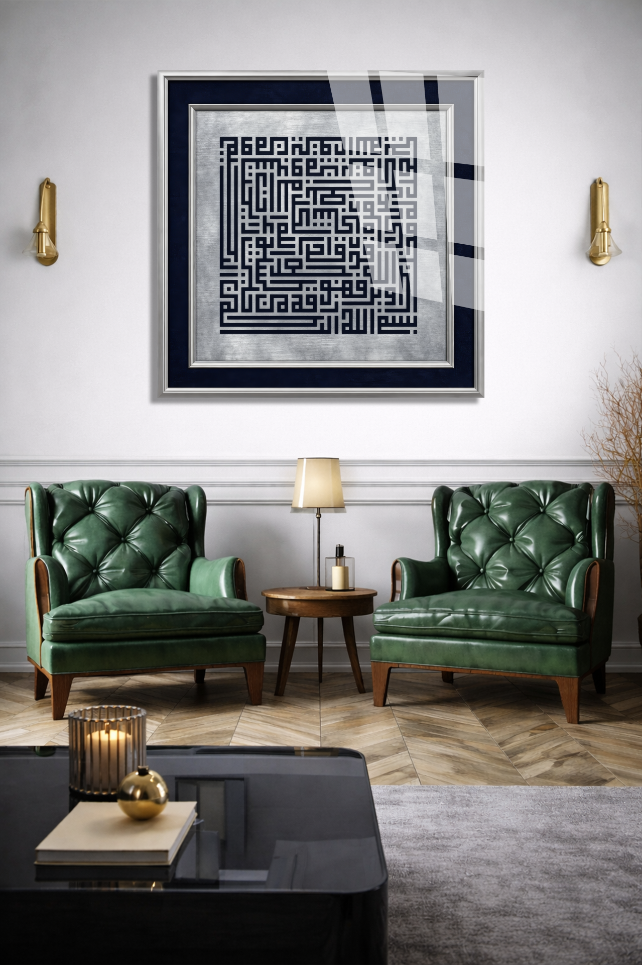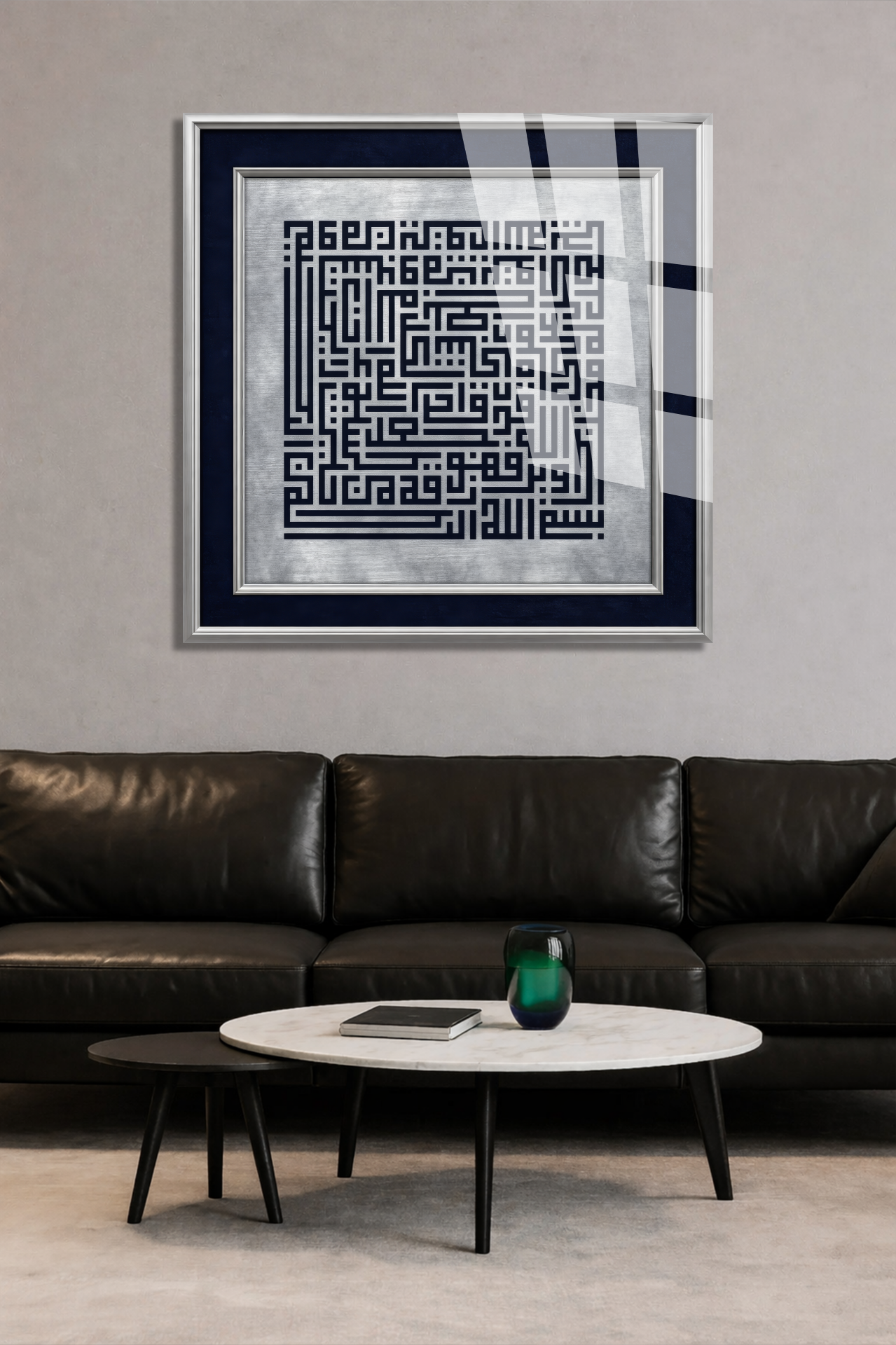 Kufi Sanatı Dini İslami Kırılmaz Cam Tablo, Ev Ofis Hediyesi Yüksek Çözünürlüklü 4mm Cam Tablo
