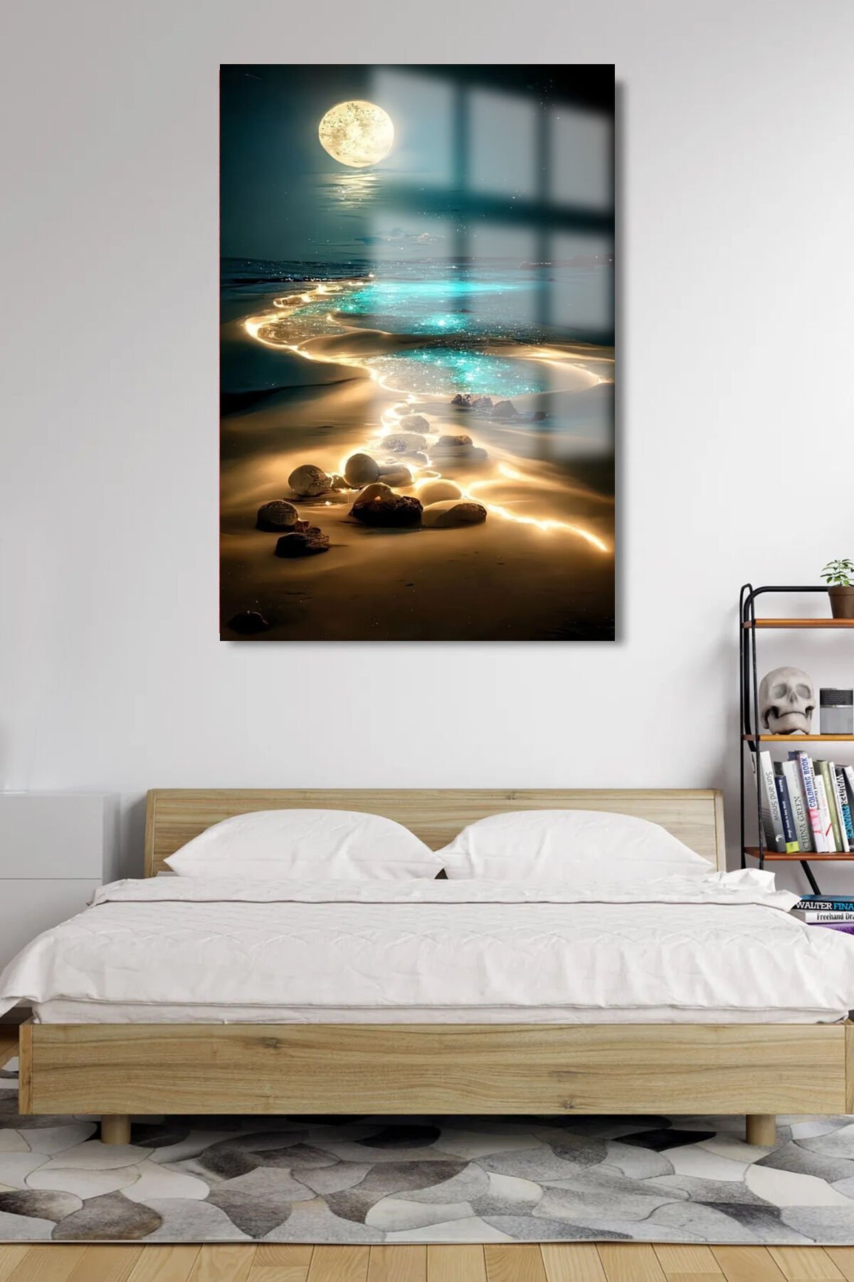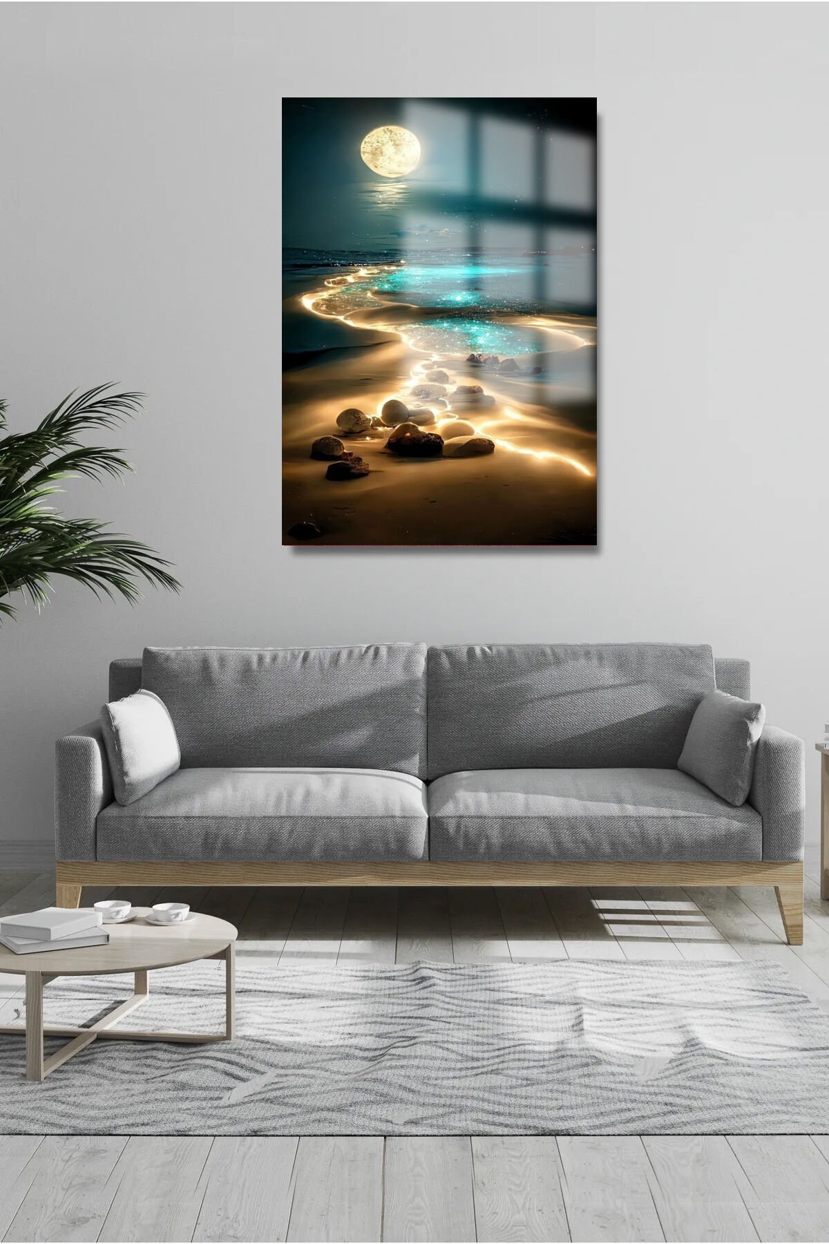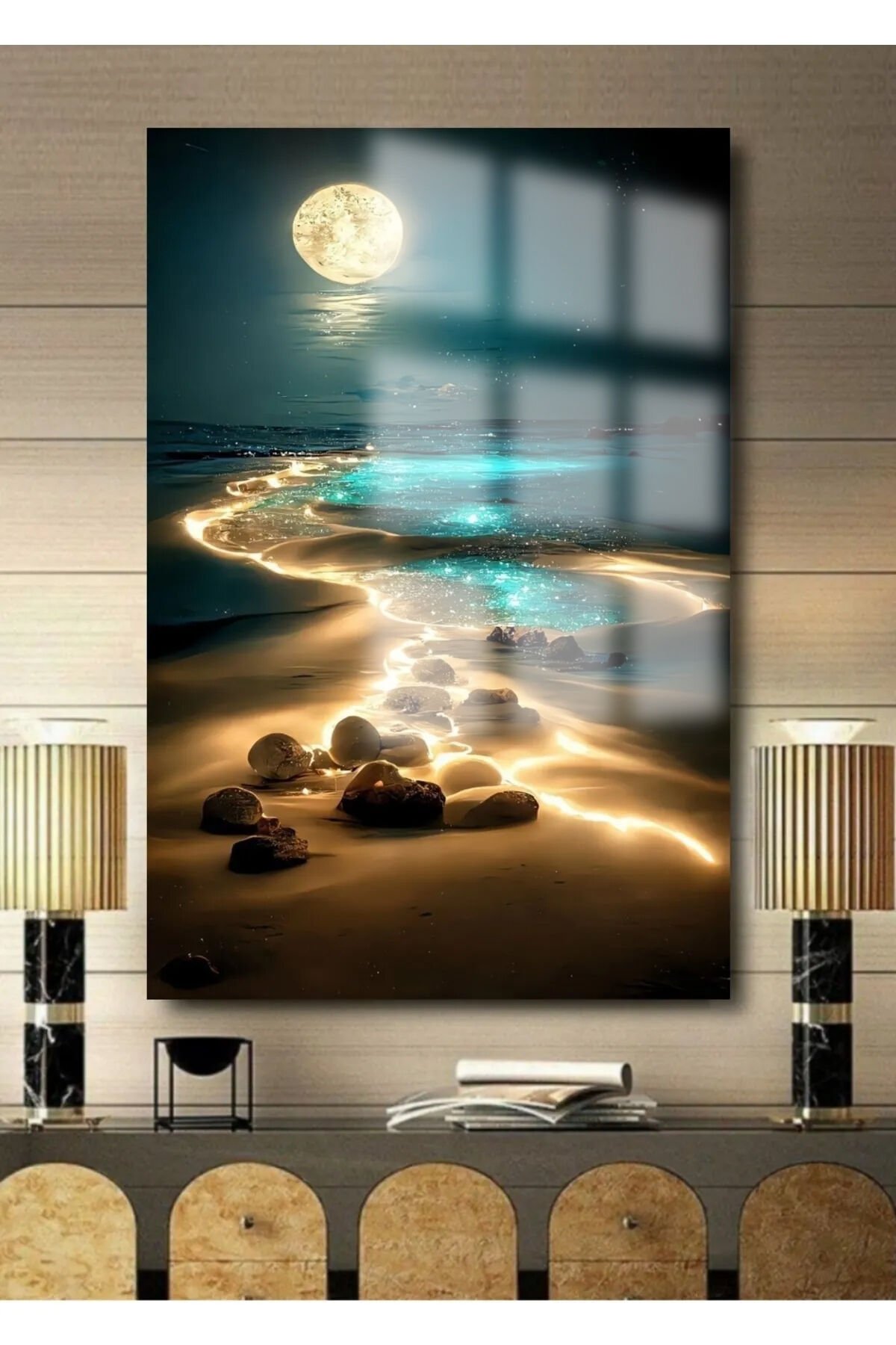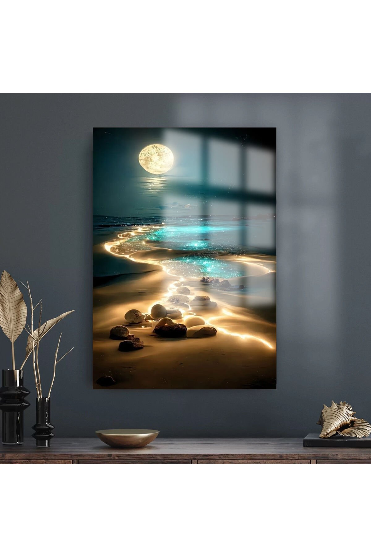 KUMSAL DETAYLI MANZARA KIRILMAZ LÜKS CAM TABLO 4MM EV İŞ YERİ OFİS HEDİYESİ TABLO Lacivert