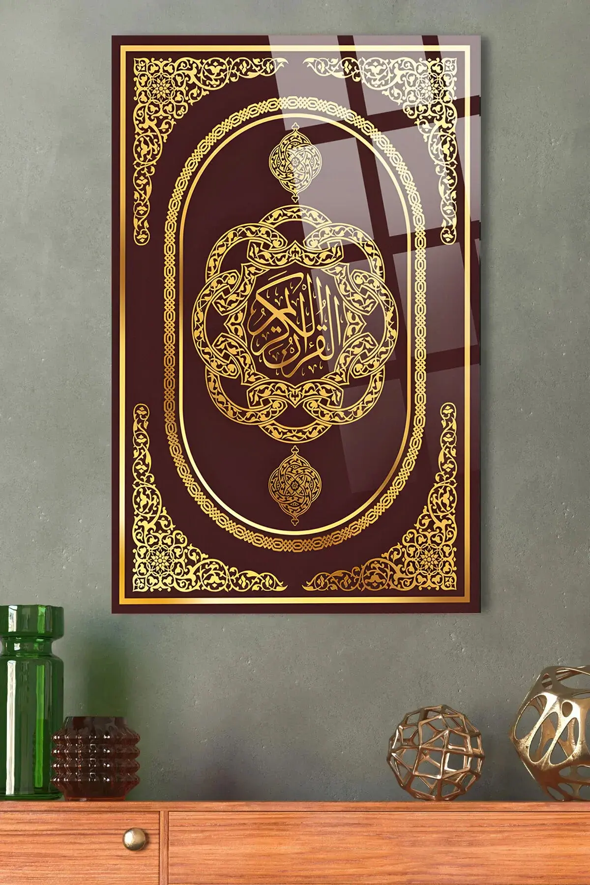 Kuran-ı Kerim Kitap Kapağı DİNİ İSLAMİ KIRILMAZ LÜKS CAM TABLO EV, İŞ YERİ, OFİS HEDİYESİ