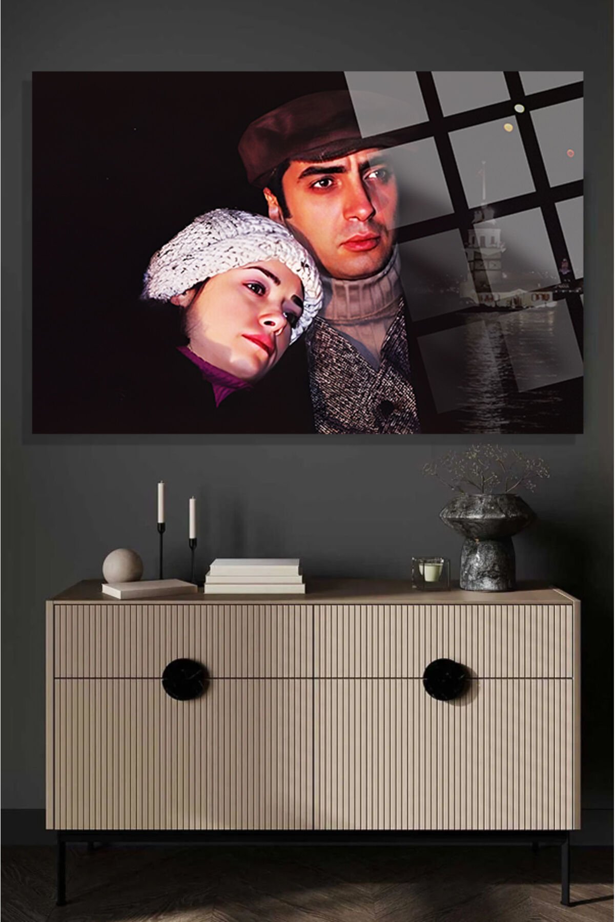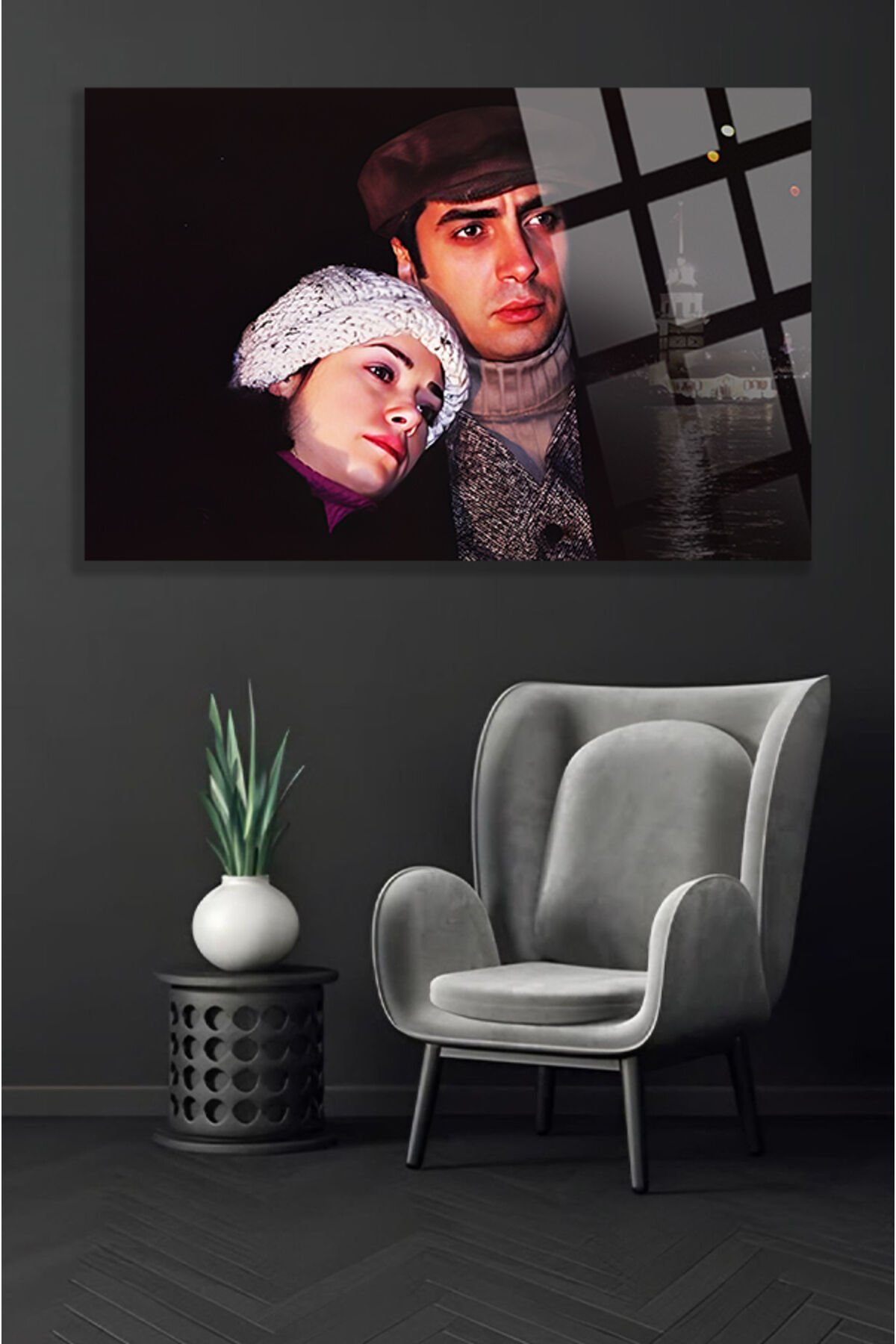 Kurtlar Vadisi Polat ve Elif Kız Kulesi Manzara 4mm Kırılmaz Temperli Yüksek Çözünürlüklü Cam Tablo siyah