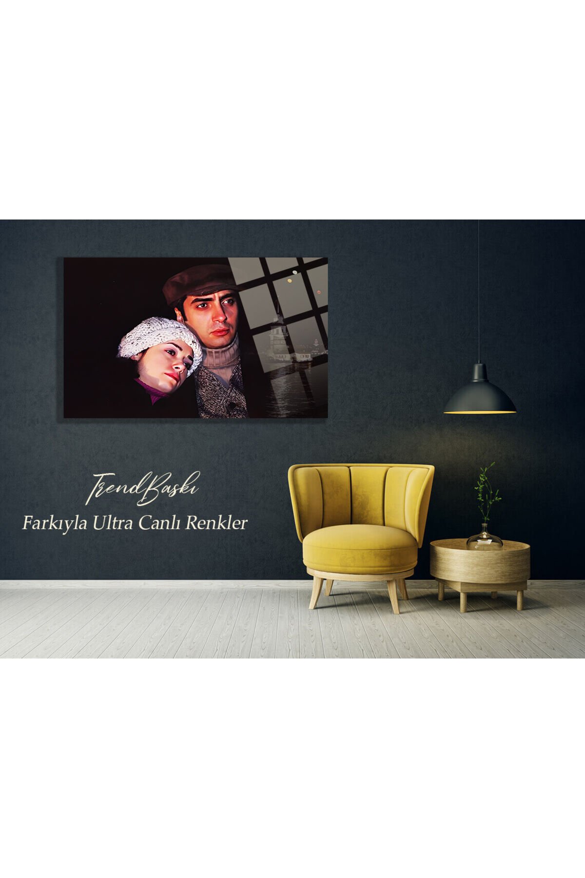Cam tablolarımız 4 mm kalınlığında temper işlemi (ısıl işlem) görmüştür.; Kenarları rodajlanmış (kesiciliği giderilmiş) yüksek kaliteli düz camlardan oluşmaktadır.; Normal camlara göre kırılmaya 10 kat daha dayanıklıdır.; Gönderilirken özel koruma aparat ve ambalajları ile gönderilmektedir.; ; Tarafımızca hazırlanan özel tasarımlar doğrudan cam yüzeyine uv baskı tekniğiyle yüksek çözünürlüklü makinalarımız tarafından uygulanır.; Bu nedenle yüksek kaliteli,mükemmel bir görüntü derinliği sağlar.; Herhangi bir medyaya(folyo,kağıt v.; b.; ) baskı yapılmış görselin cam yüzeyine yapıştırılması şeklinde değildir.; Görsellerimiz camın arka yüzeyine doğrudan uv cam boyası kullanılarak basılır ve özel koruma boyası ile arka yüzey kapatılır.; Baskı cam ile arka koruma boyası arasında kalır.; Tasarımları ön yüzeyden camın parlaklığı ve şıklığı ile görürsünüz.; Cam tablolar zamanla solmazlar ve renkler canlılığını hiç kaybetmez.; ; Özel tasarım cam tablolar duvar dekorasyonunda yeni bir sayfa açmaktadır.; Özellikle ev ve ofis dekorasyonunda büyük tablolar duvarlarda çok şık bir görünüm sağlarlar.; Dekoratif ve zarif tablolar ev ve ofis duvarlarınıza estetik bir hava katar.; ; Tablolarımız sizler için özel olarak tasarlanmıştır.; ; Temizliği son derece kolay olan cam tablolarımızı,herhangi bir kimyasal ürünle veya nemli bez ile gönül rahatlığıyla silebilirsiniz.; Özel askı aparatı sayesinde ürünlerimizin duvardan kazara düşme olasılığı çok düşüktür.; Tek çivi ile kolayca duvara monte edebilirsiniz.; Ürün asıldığında duvardan 2 cm önde durmaktadır.; ; Kargo esnasında yaşanacak her türlü olumsuzluk(kırılma v.; b.; ) firmamıza aittir.; Kırılma olasılığı %1 in altındadır.; Özel çerçeveli kargo metodumuz Türkiyede yalnızca tarafımıza aittir bu sayede kırılma yaşanmamaktadır.; En ufak bir sorunda ise sizlere sağlam şekilde ulaşıncaya kadar tekrar gönderilir.; ; Üretici firma olarak özel tasarımlarıyla camı birleştirerek yaşam alanlarınıza şık bir görünüm ve modern bir hava katmayı amaç edinilmiştir.Kişiye özel Tablo seçeneğimiz de mevcuttur kişiye özel cam tablolalar için iletişime geçiniz.