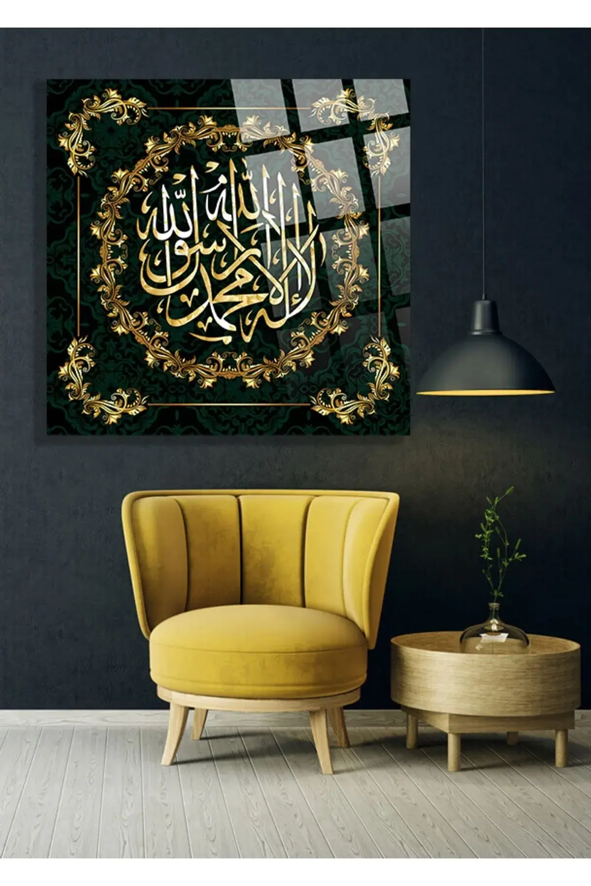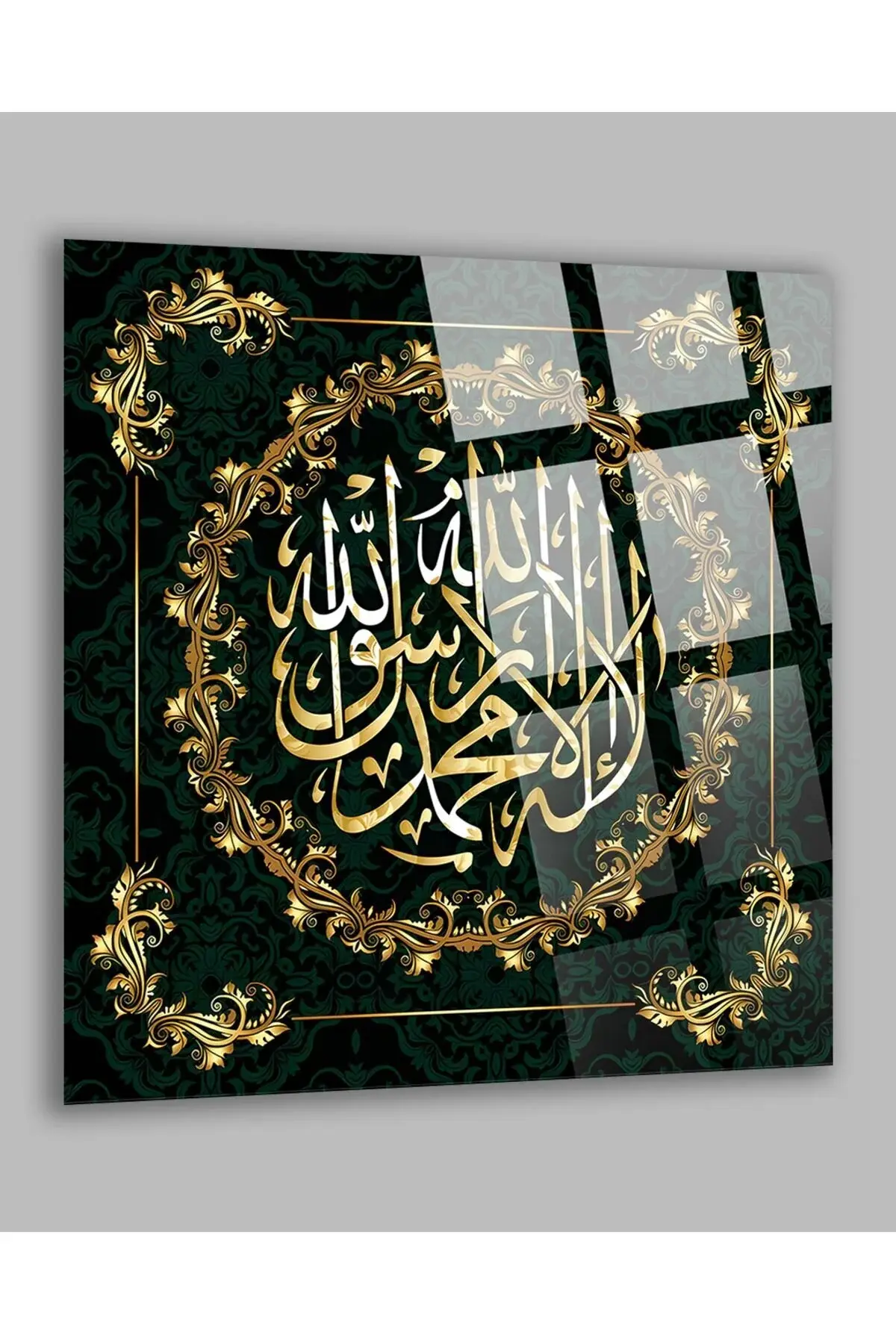 La ilahe illallah Muhammedün resulullah Kırılmaz Cam Tablo, Ev Ofis Hediyesi Yüksek Çözünürlüklü 4mm