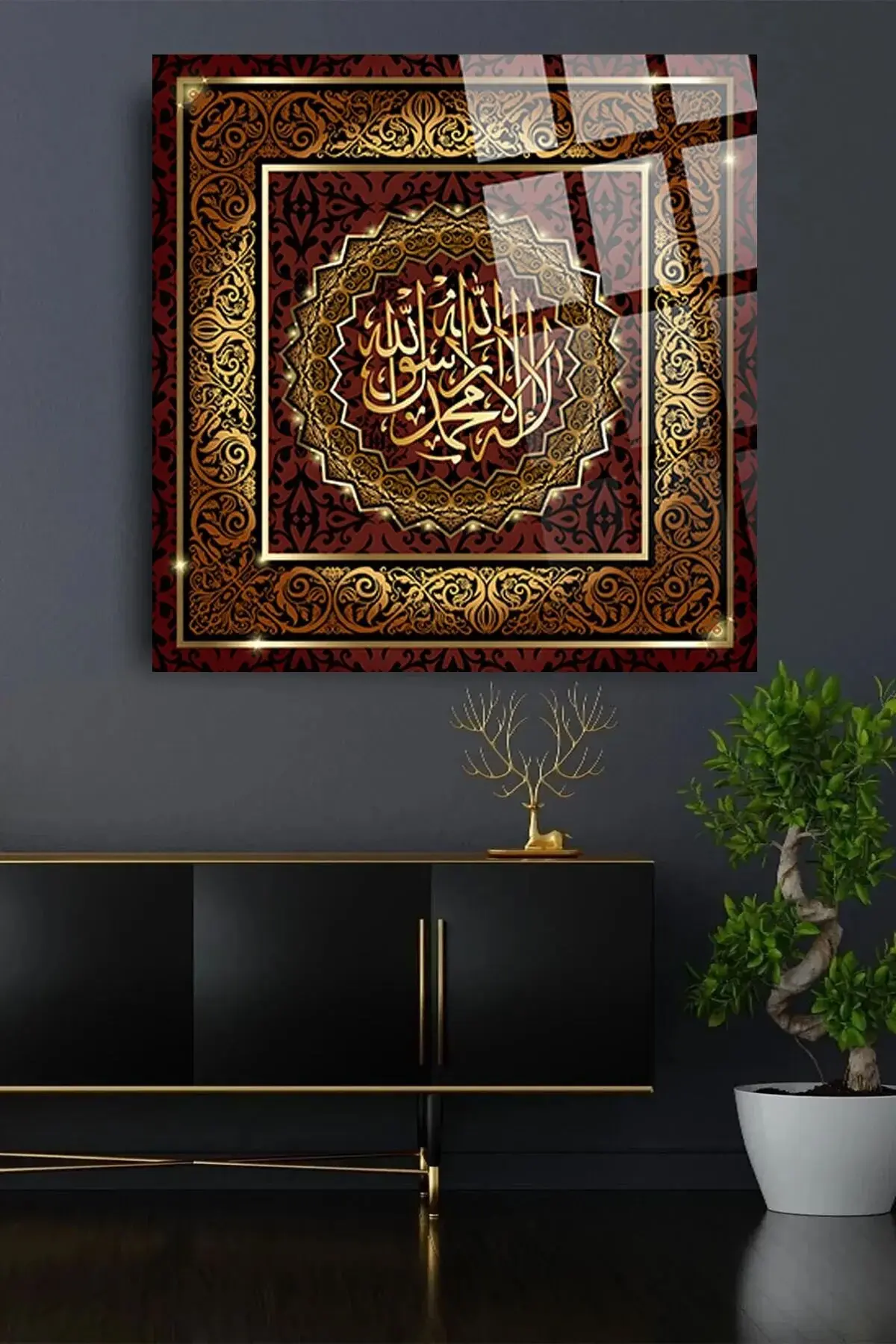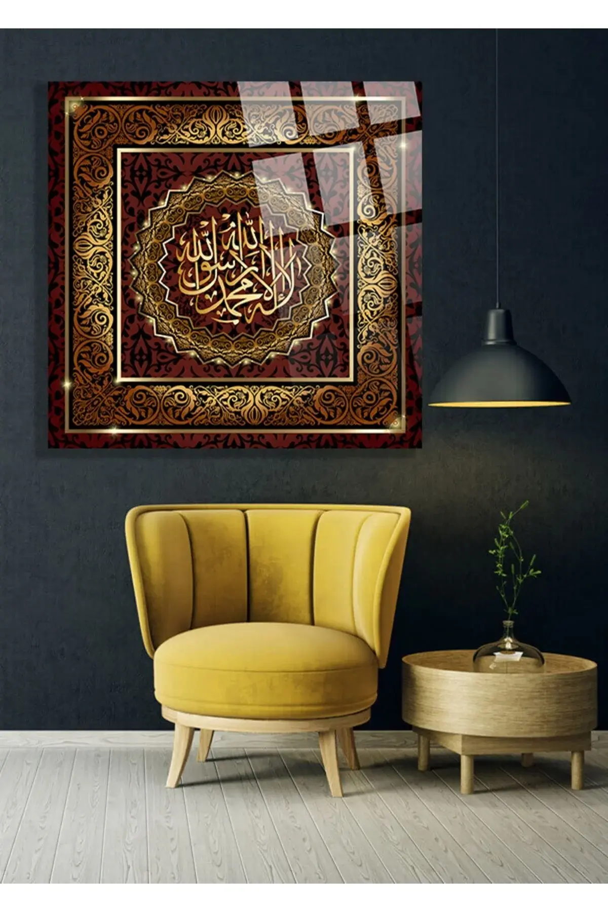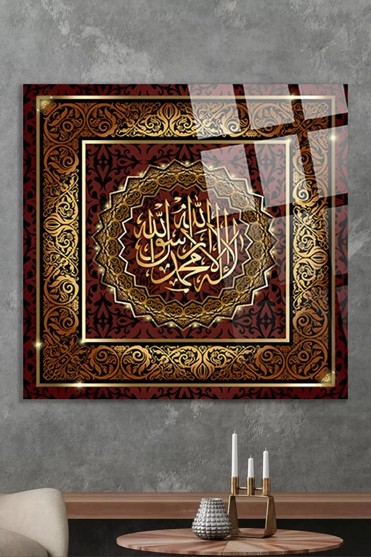 La ilahe illallah Muhammedün resulullah Kırılmaz Cam Tablo, Ev Ofis Hediyesi Yüksek Çözünürlüklü 4mm