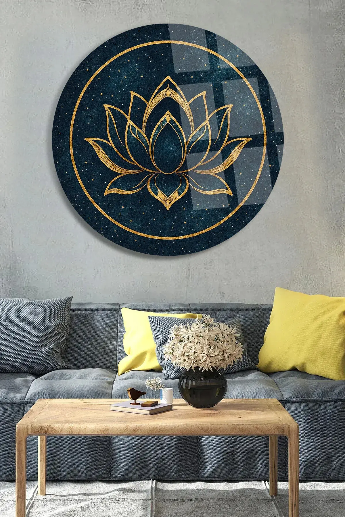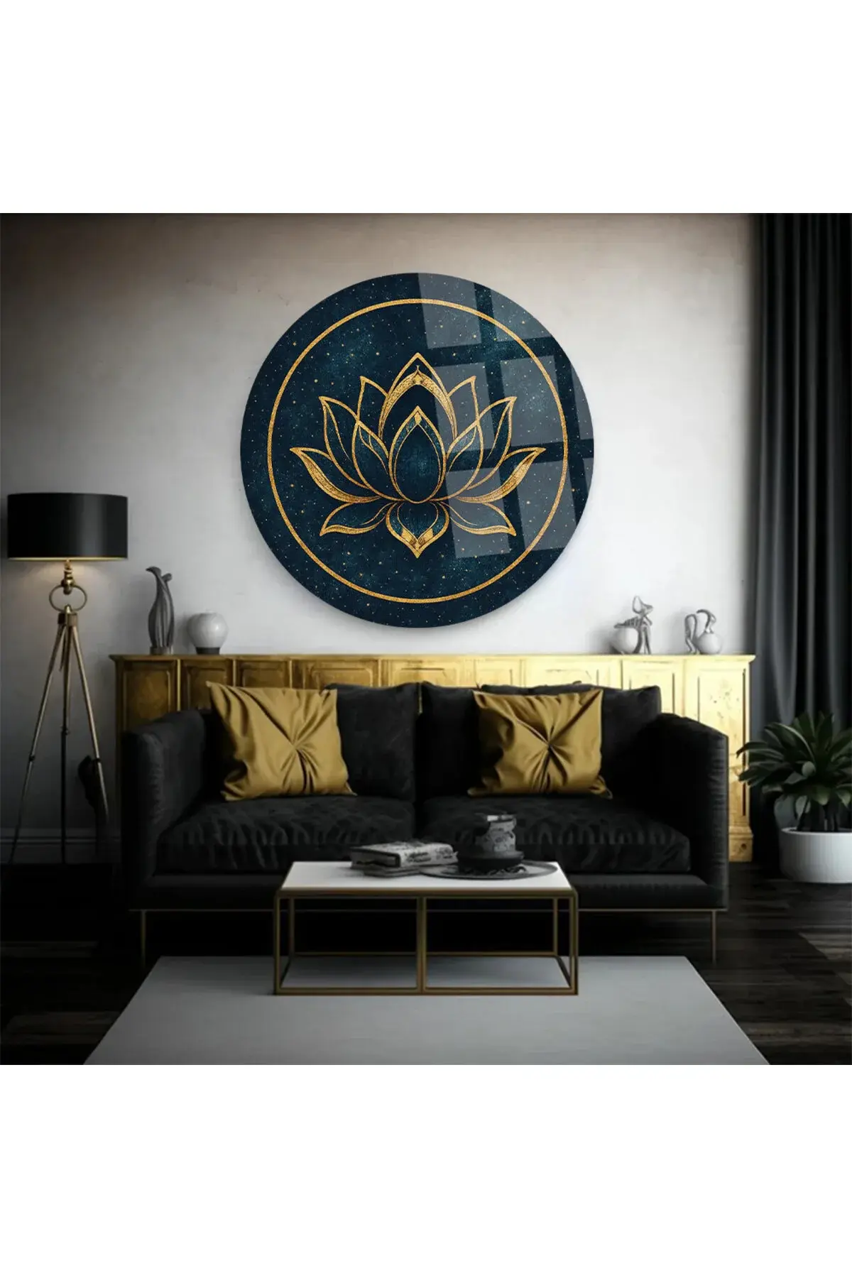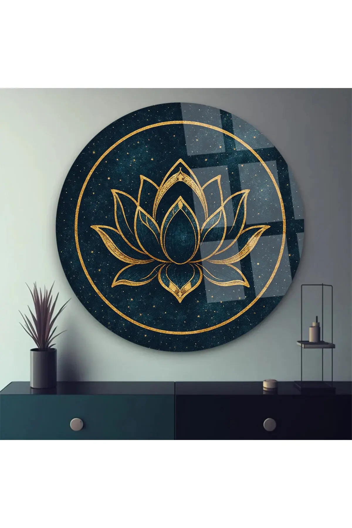 LACİVERT LOTUS ÇİÇEĞİ TABLOSU TASARIMI LÜKS KIRILMAZ MODERN CAM TABLO HEDİYE TABLO MODERN TABLO Lacivert
