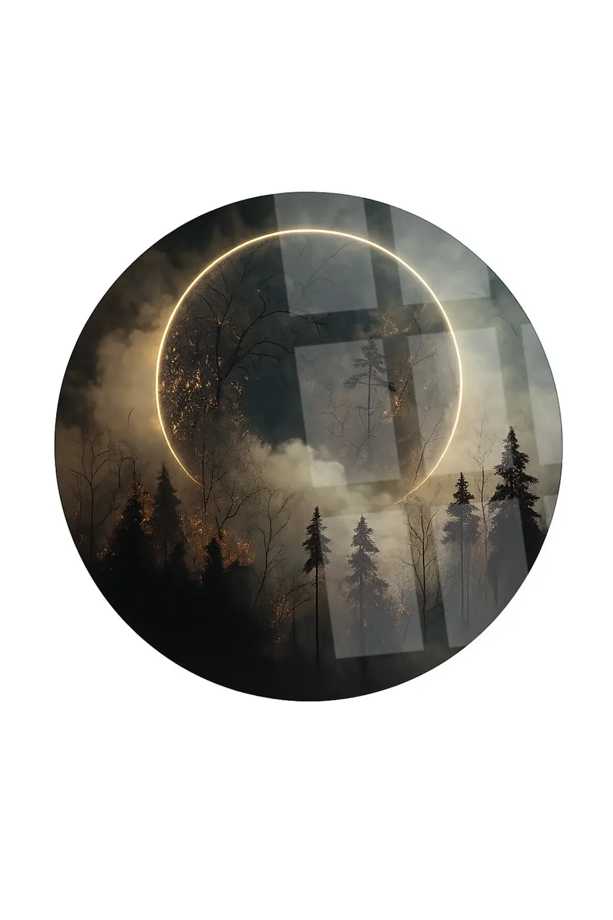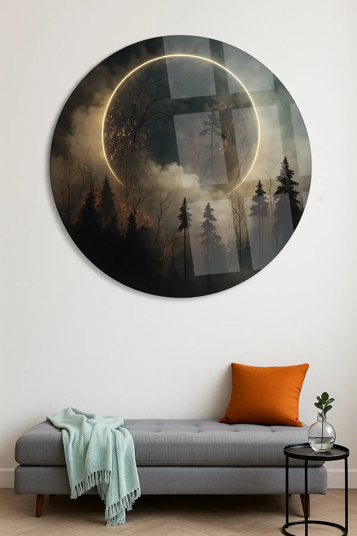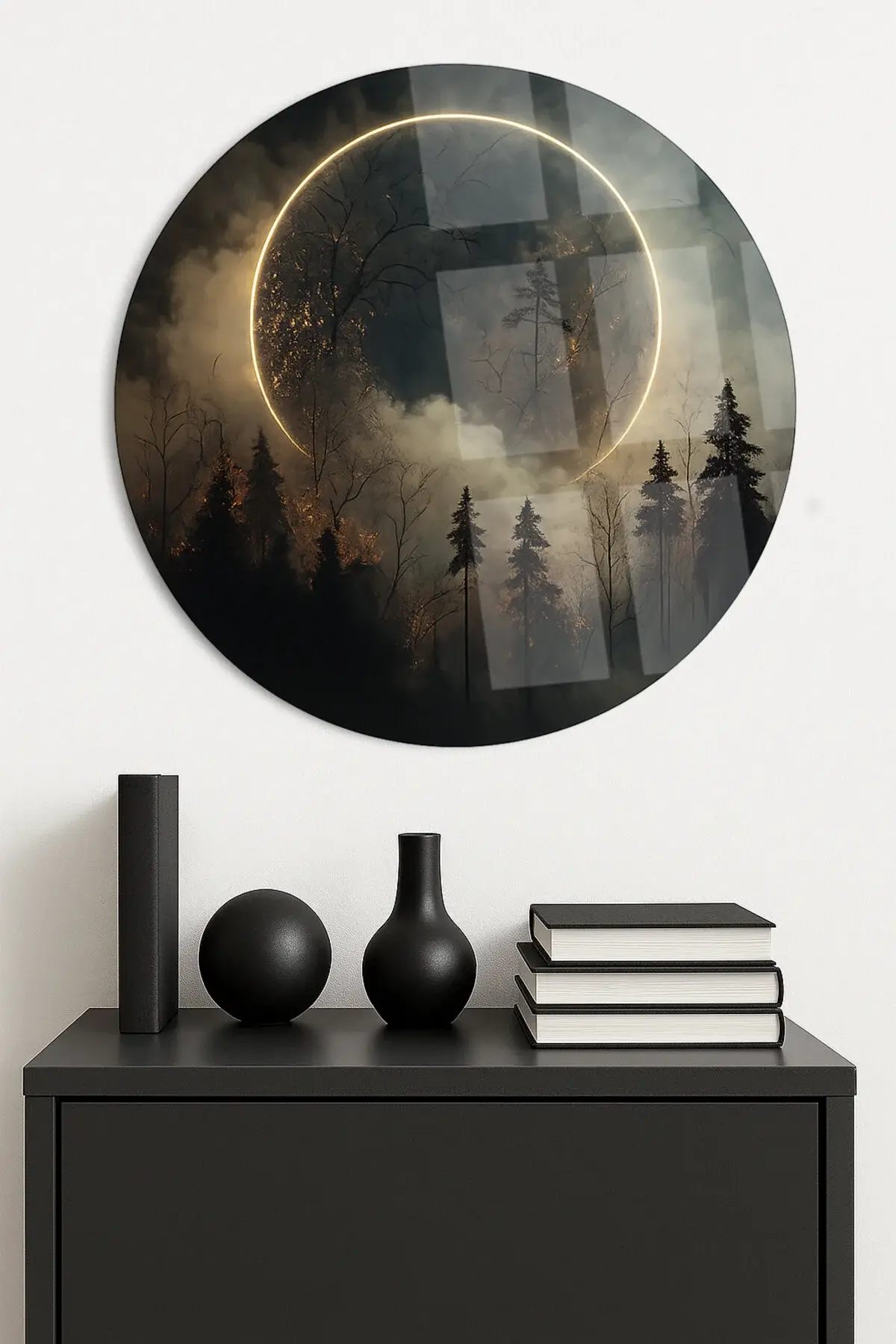 LÜKS AY MOON TABLOSU TASARIMI MODERN KIRILMAZ LÜKS YUVARLAK CAM TABLO MODERN HEDİYE TABLO Siyah