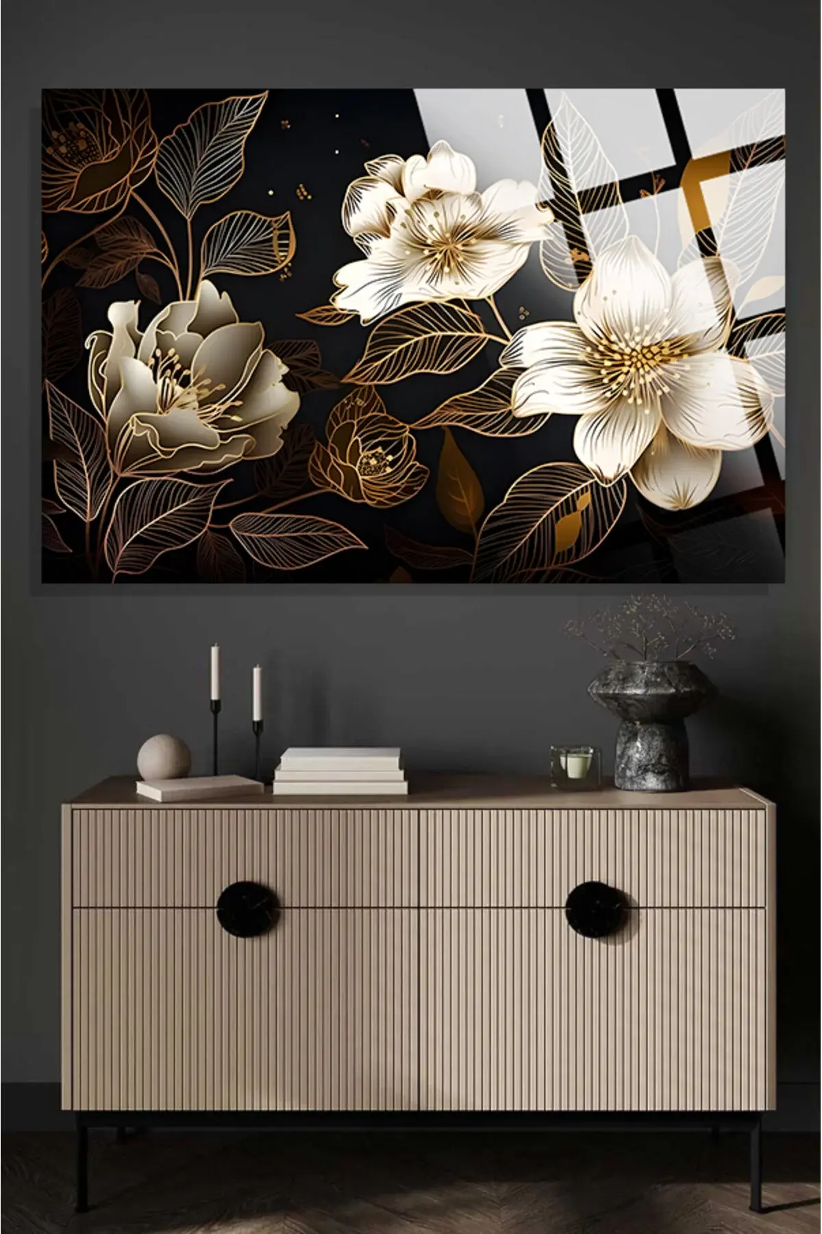 Lüks Görünümlü Harika Çiçek Görseli 4mm Kırılmaz Temperli Yüksek Çözünürlüklü Cam Tablo