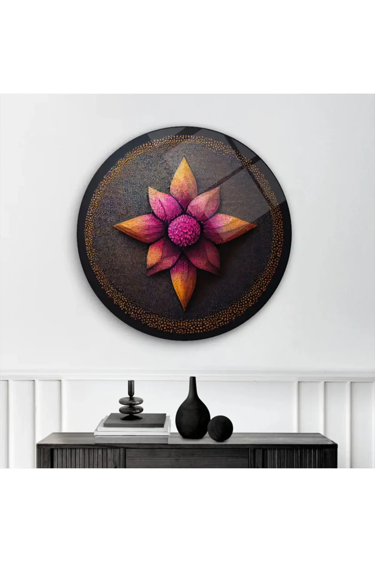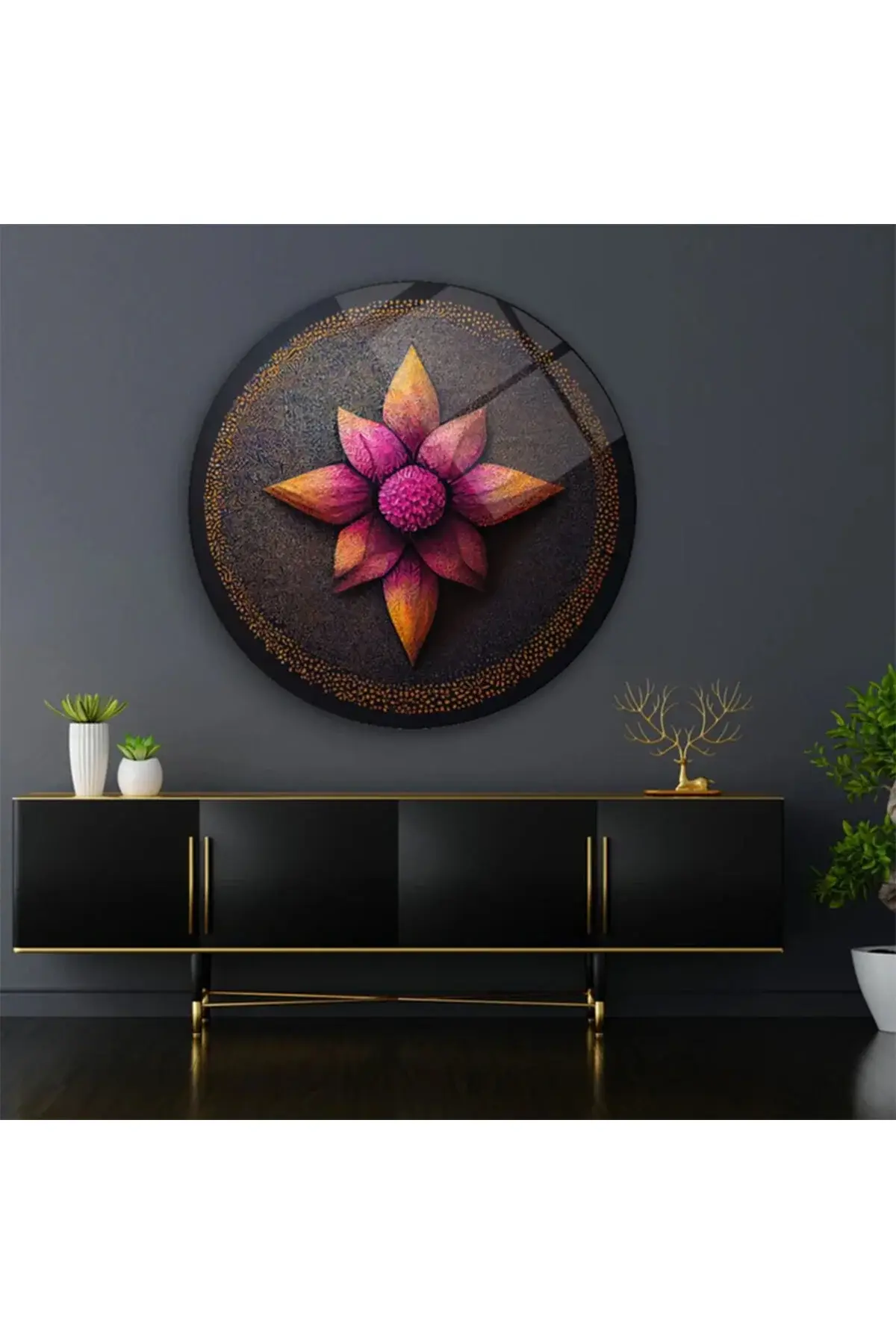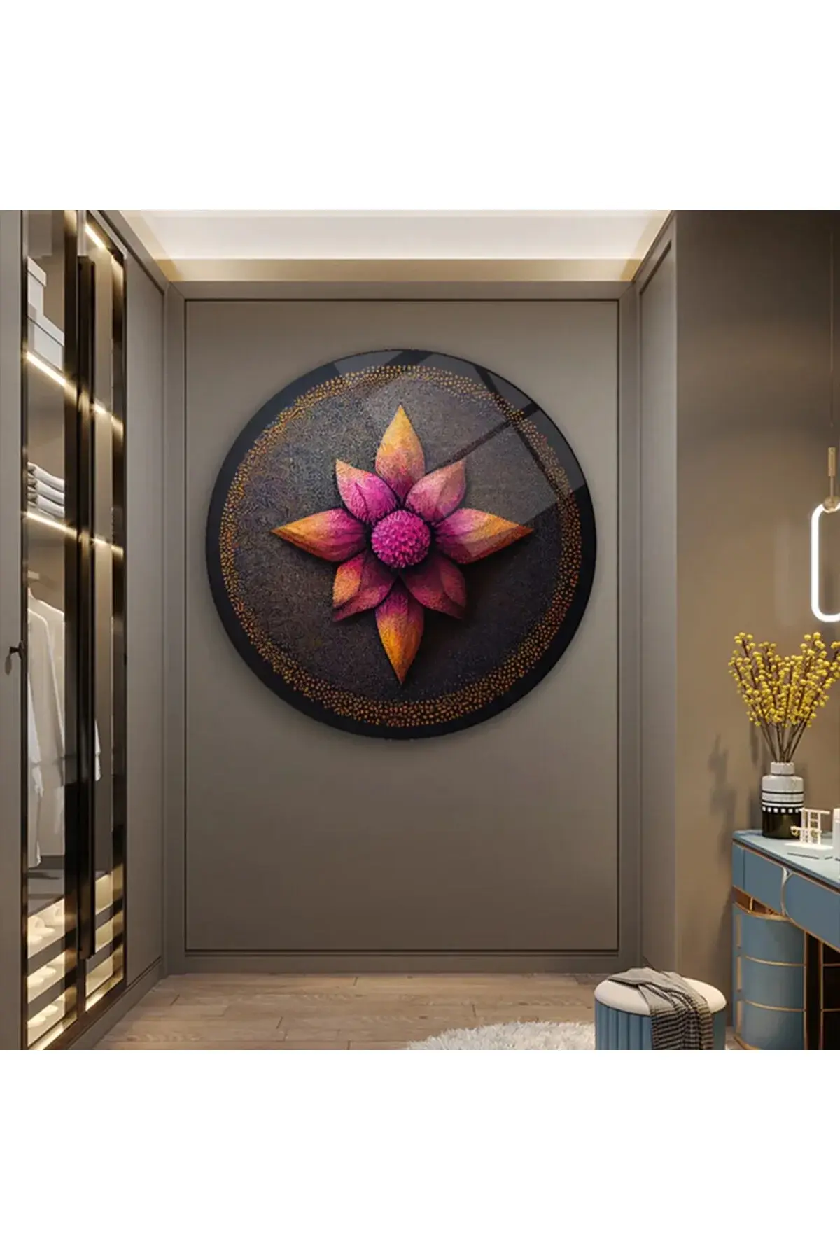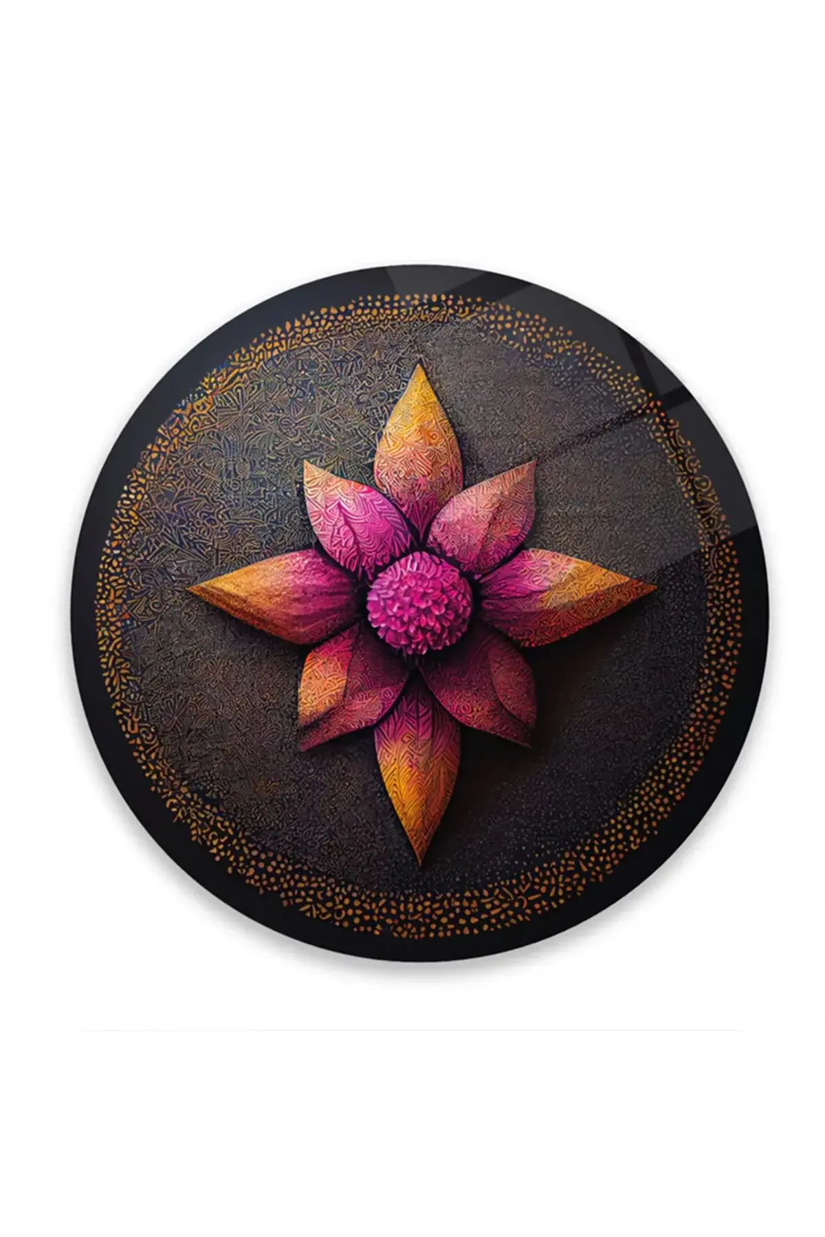 LÜKS LOTUS ÇİÇEĞİ TABLOSU TASARIMI MODERN KIRILMAZ LÜKS YUVARLAK CAM TABLO MODERN HEDİYE TABLO Pembe