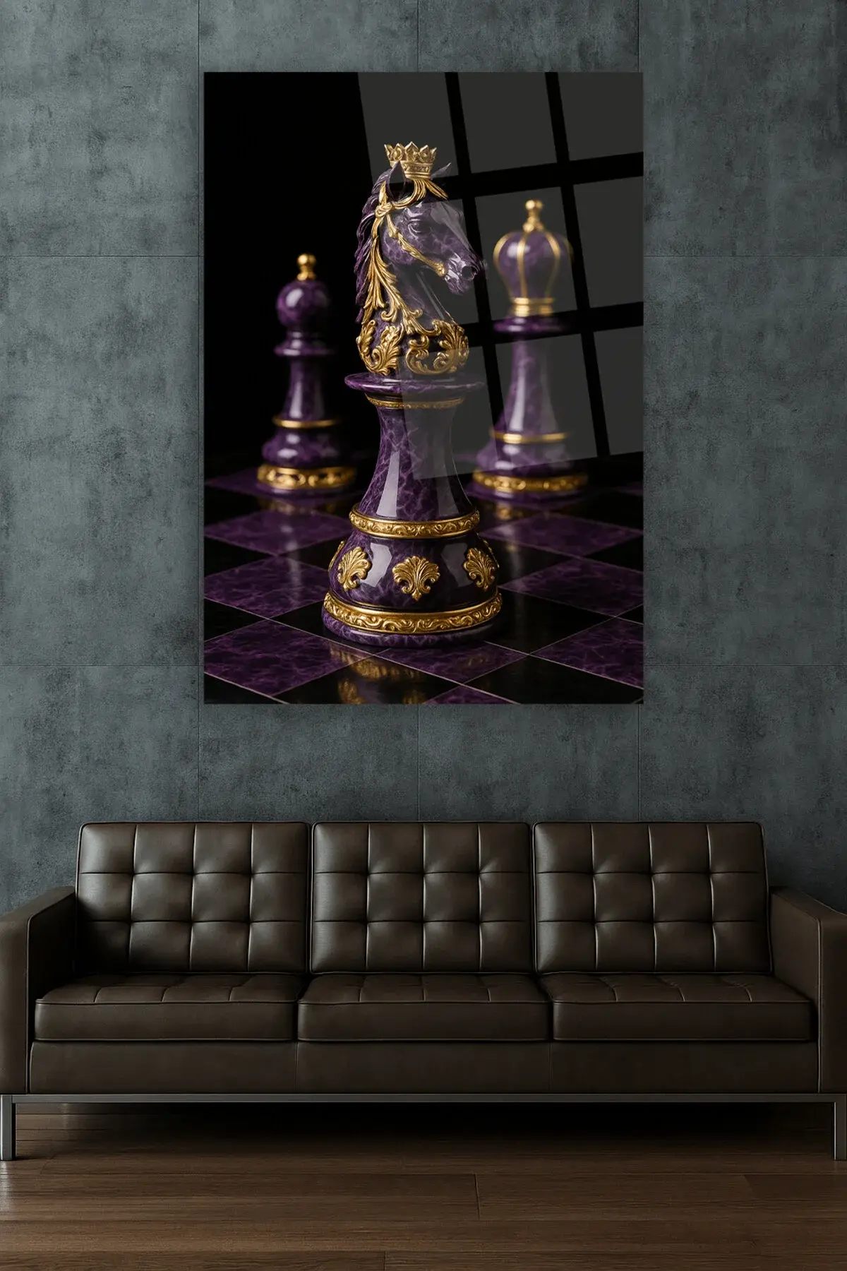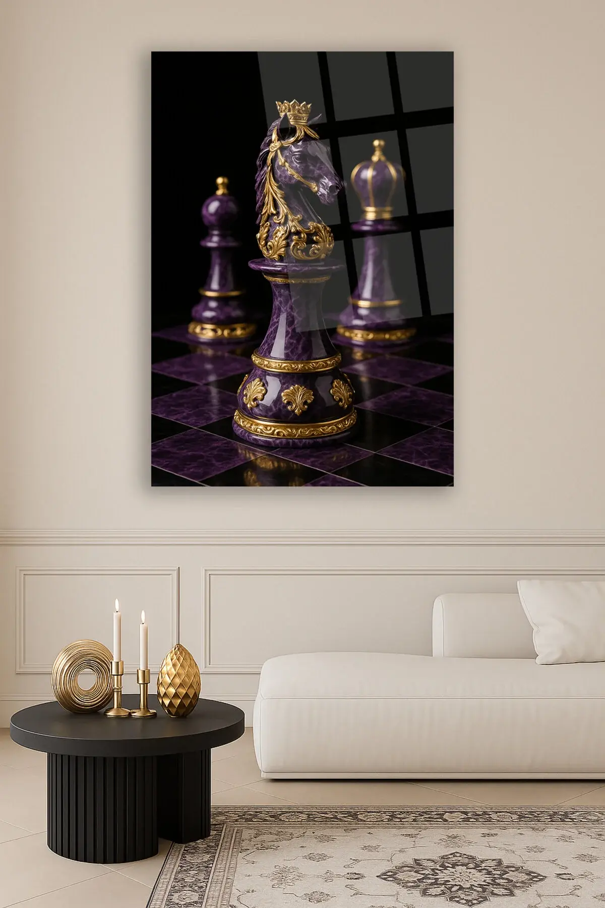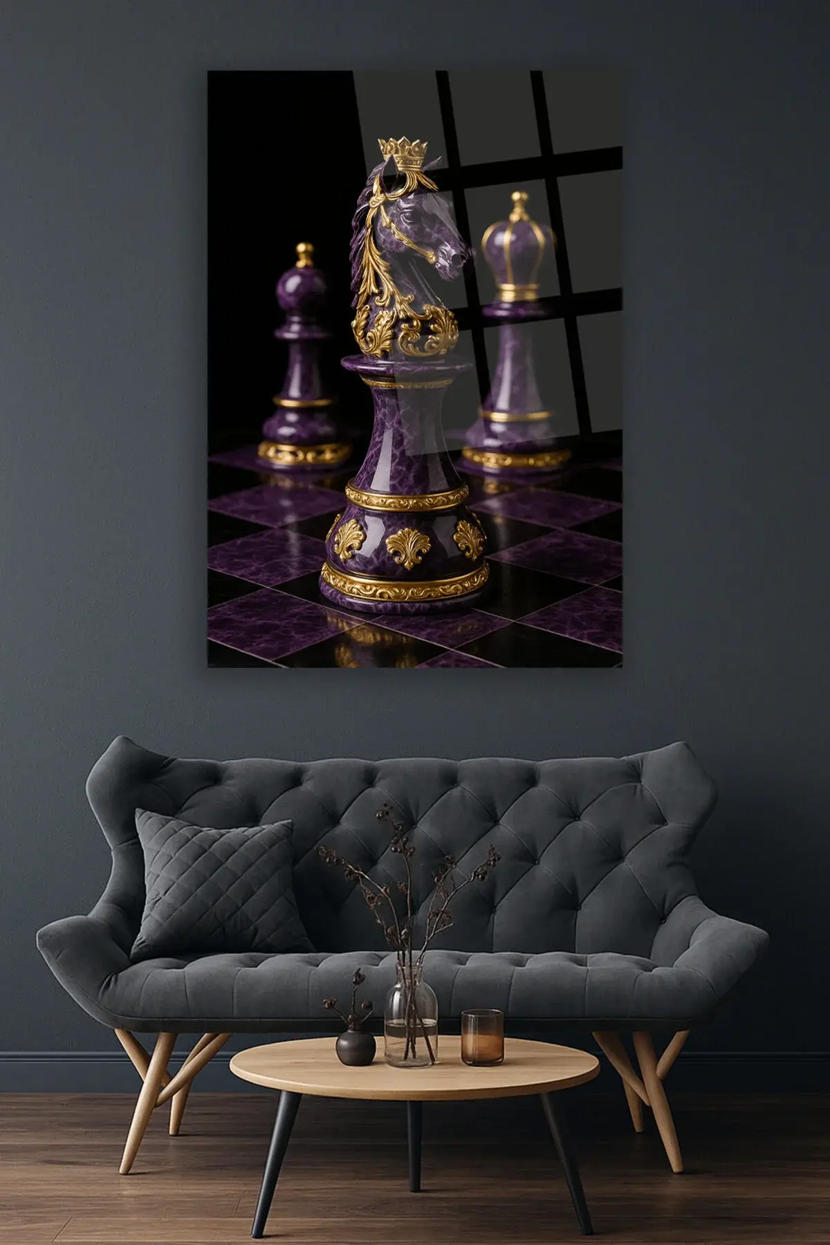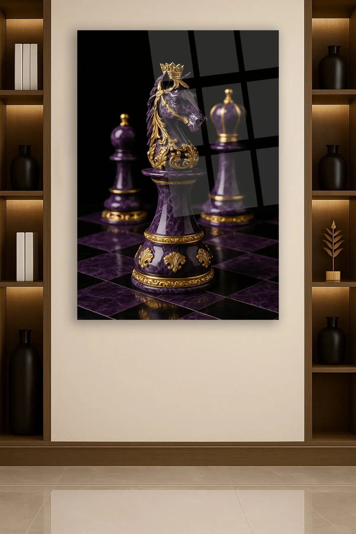 LÜKS SATRANÇ MODERN CAM TABLO ULTRA YÜKSEK KALİTELİ AT SATRANÇ TAŞI TABLOSU OFİS EV HEDİYESİ