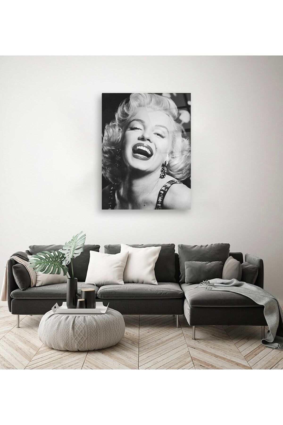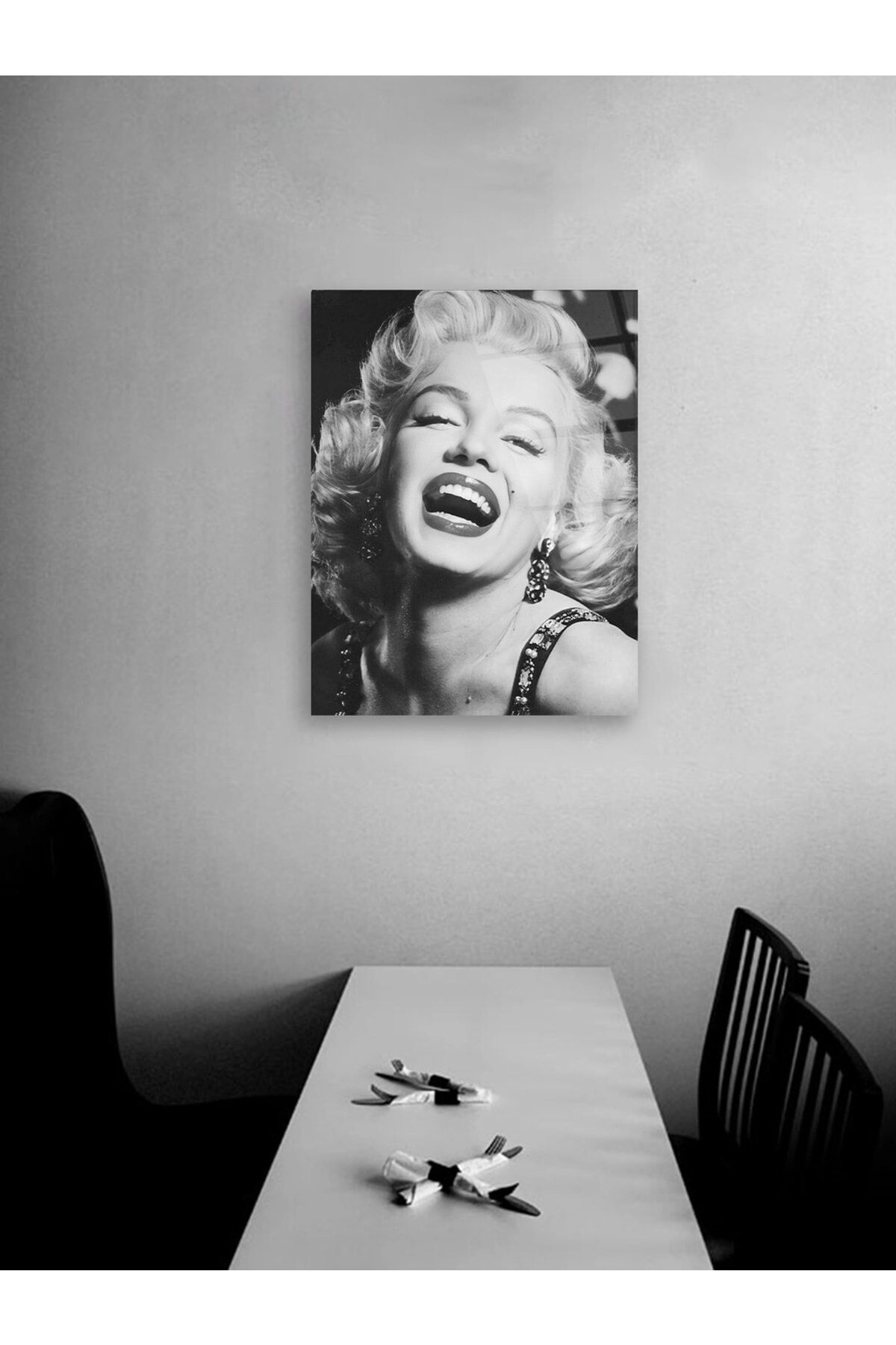 Marilyn Monroe Siyah Beyaz Cam Tablo Renkli
