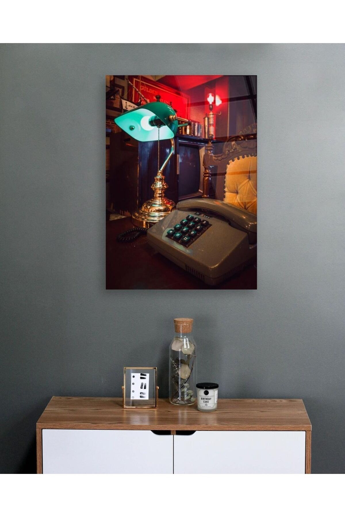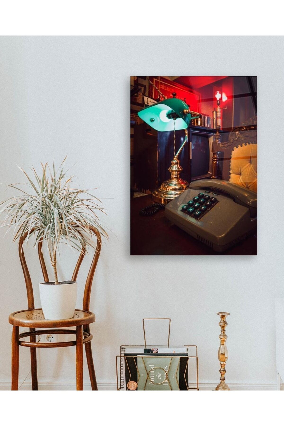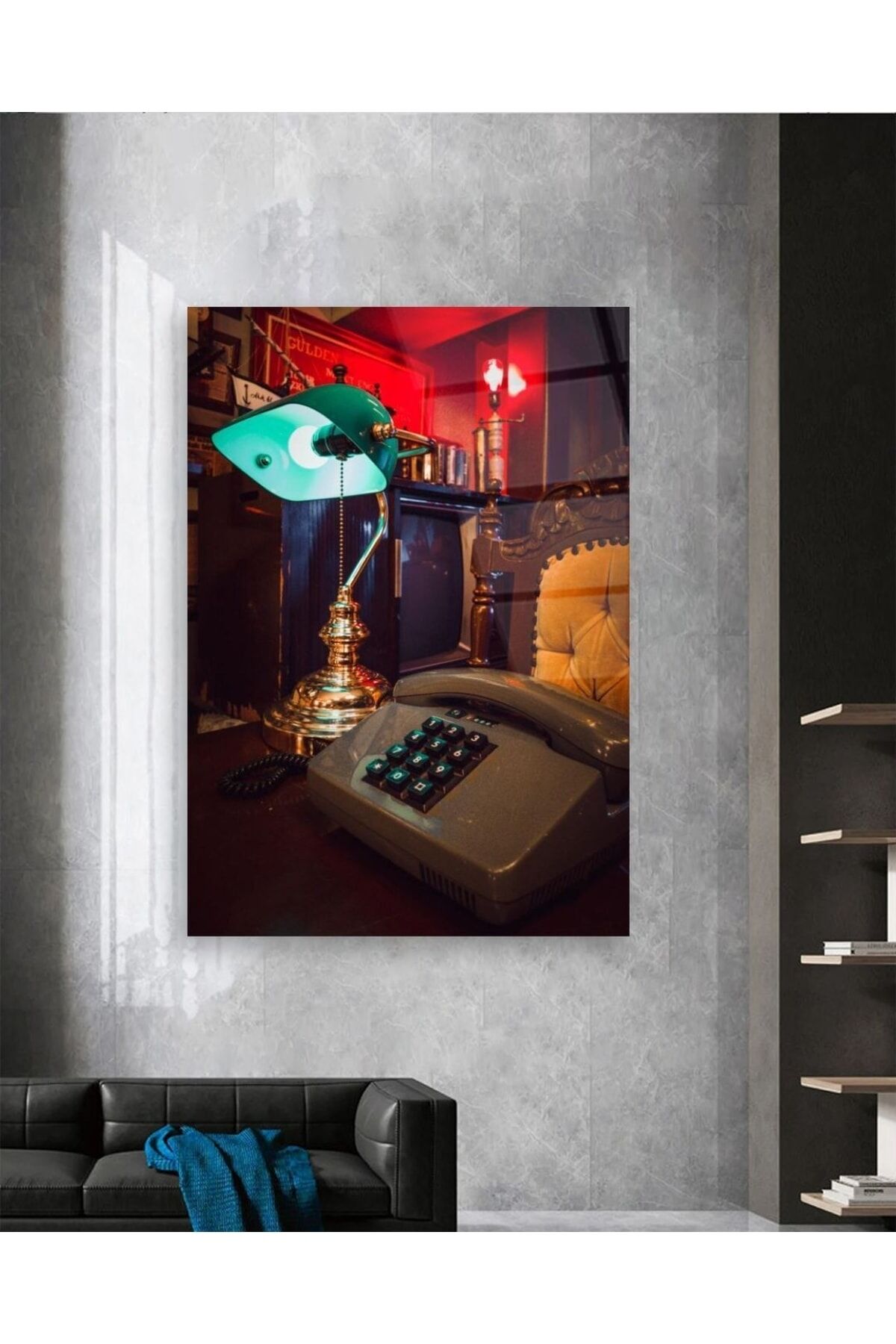 Masa Lambası Ve Antika Telefon Cam Tablo Renkli