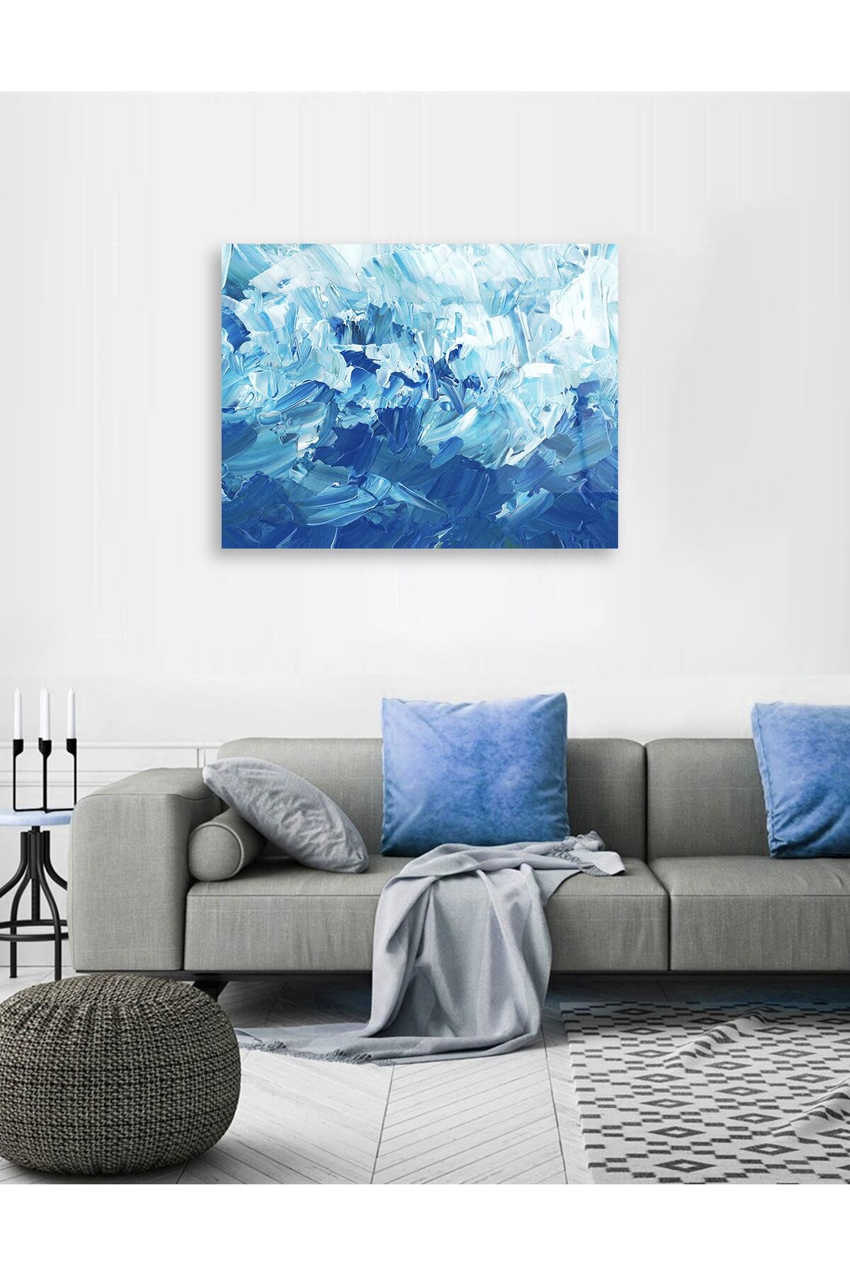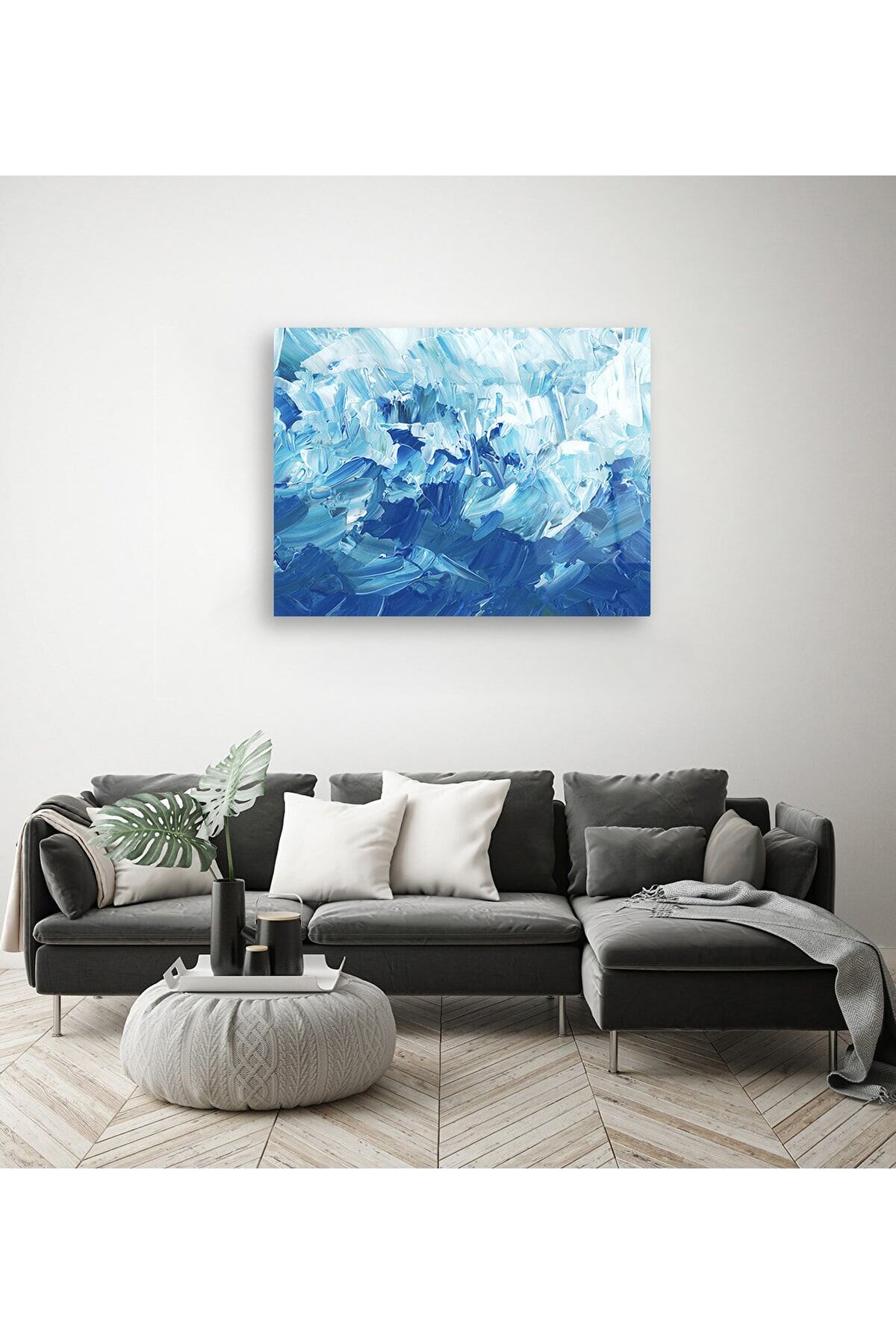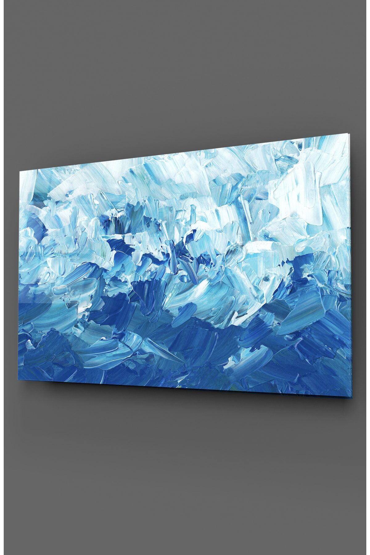 Mavi Fırça Darbesi Efektli Cam Tablo Renkli