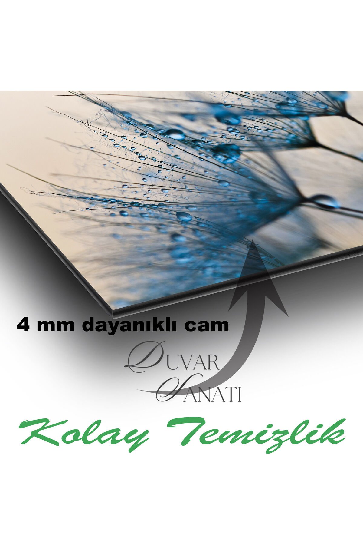 Duvar Sanatı "Mavi Karahindiba Yatay Cam Tablo" 4 mm kalınlığında temper işlemi (ısıl işlem) görmüştür. Kenarları rodajlanmış (kesiciliği giderilmiş) yüksek kaliteli düz camlardan oluşmaktadır. -Normal camlara göre kırılmaya 10 kat daha dayanıklıdır. Gönderilirken özel korumalı ambalaj, tabloya yapıştırılmış olarak çelik aparat ve duvara asmak için vida-dübel ile gönderilmektedir.; Duvar Sanatı tarafından hazırlanan özel tasarımlar doğrudan cam yüzeyine uv baskı tekniğiyle yüksek çözünürlüklü makinalarımız tarafından uygulanır. Bu nedenle yüksek kaliteli, mükemmel bir görüntü derinliği sağlar. ; -Görsellerimiz camın arka yüzeyine doğrudan uv cam boyası kullanılarak basılır ve özel koruma beyaz uv boya ile arka yüzey kapatılır. Baskı cam ile arka koruma boyası arasında kalır.-Cam tablolar zamanla solmazlar ve renkler canlılığını hiç kaybetmez. ; -Özellikle ev ve ofis dekorasyonunda büyük tablolar duvarlarda çok şık bir görünüm sağlarlar. ; -Dekoratif ve zarif tablolar ev ve ofis duvarlarınıza estetik bir hava katar. ; -Temizliği son derece kolay olan cam tablolarımızı nemli bez ile gönül rahatlığıyla silebilirsiniz. Özel çelik askı aparatı sayesinde ürünlerimizin duvardan kazara düşme olasılığı çok düşüktür. ; -Ürünle birlikte gönderdiğimiz vida ve dübel ile kolayca duvara monte edebilirsiniz. Ürün asıldığında duvardan 2 cm önde durmaktadır. ; -Kargo esnasında yaşanacak kırılma durumunda ücretsiz yeni ürün gönderimi yapmaktayız. ;