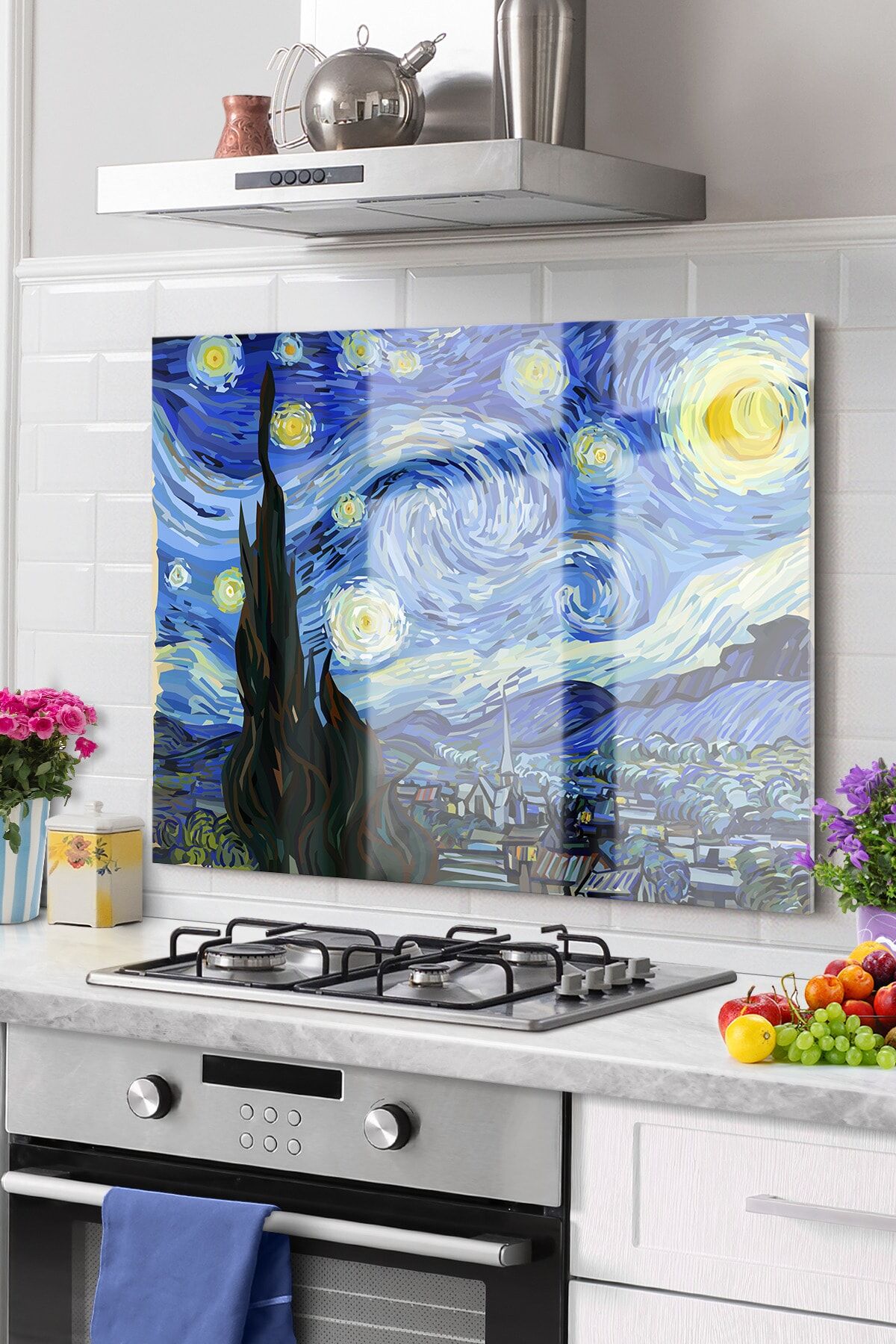 Mavi - Premium Mutfak Cam Ocak Arkası Koruyucu Tezgah Ankastre Arkası Koruyucu | Sanat Mor