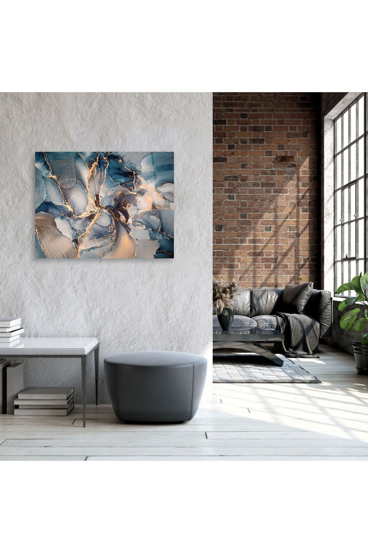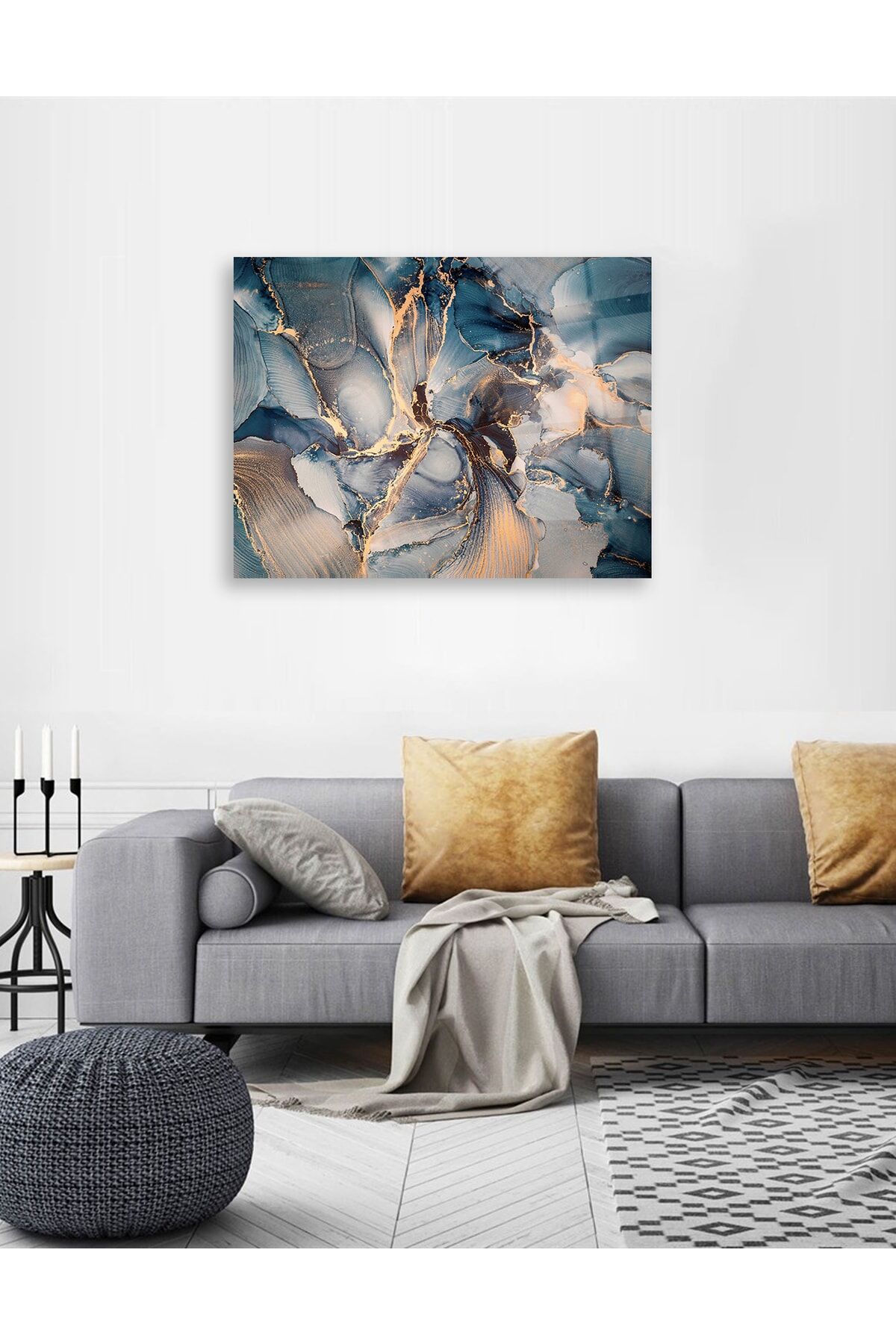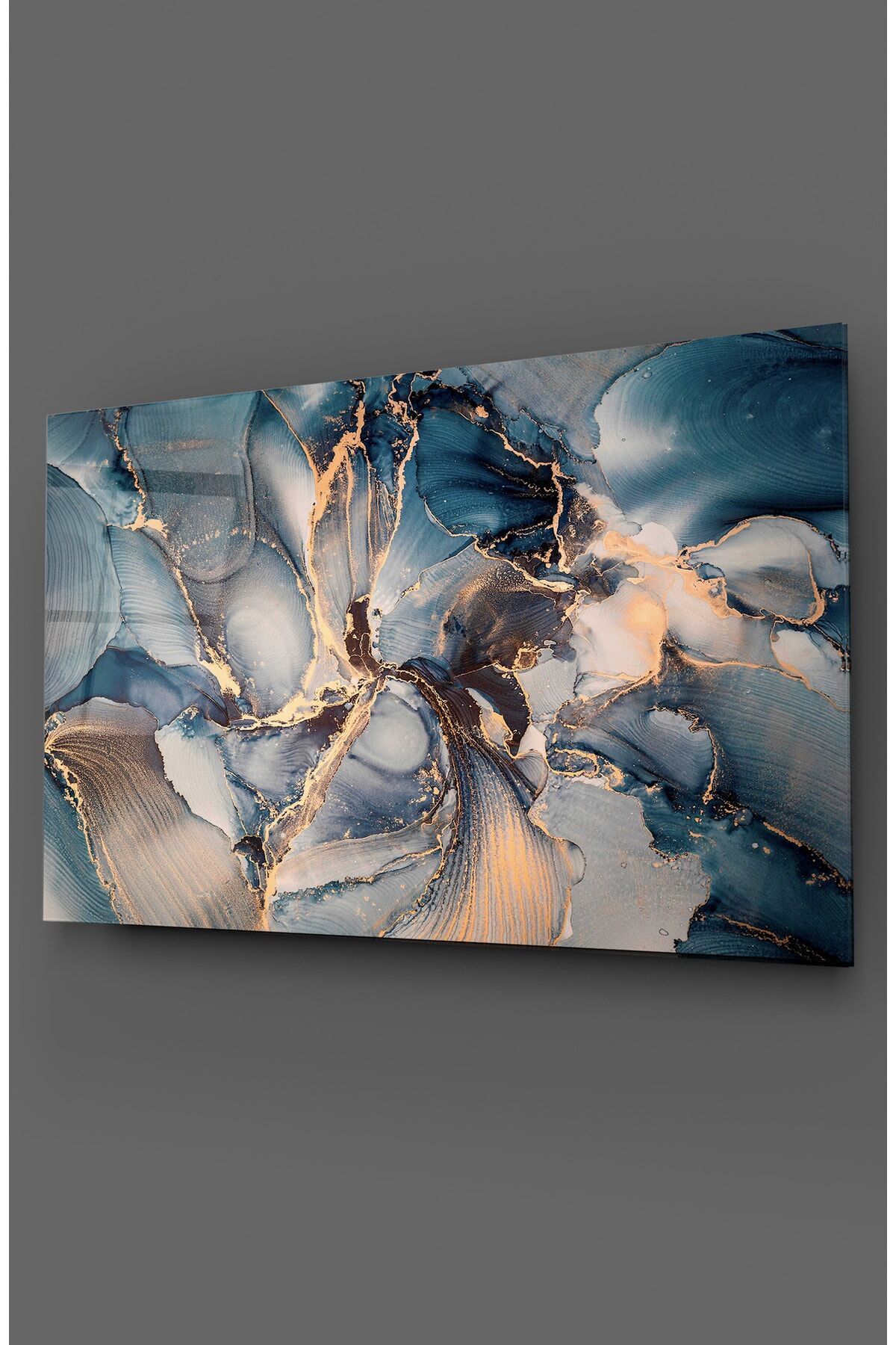 Mavi Renk Mermer Desen Cam Tablo Renkli