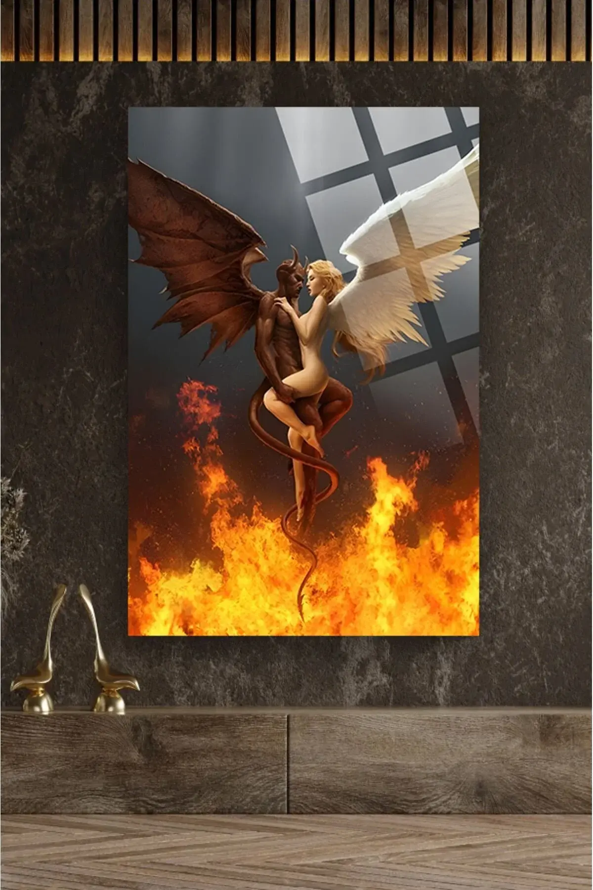 Melek ve Şeytan 4mm Lüks Kırılmaz Temperli Yüksek Çözünürlüklü Cam Tablo