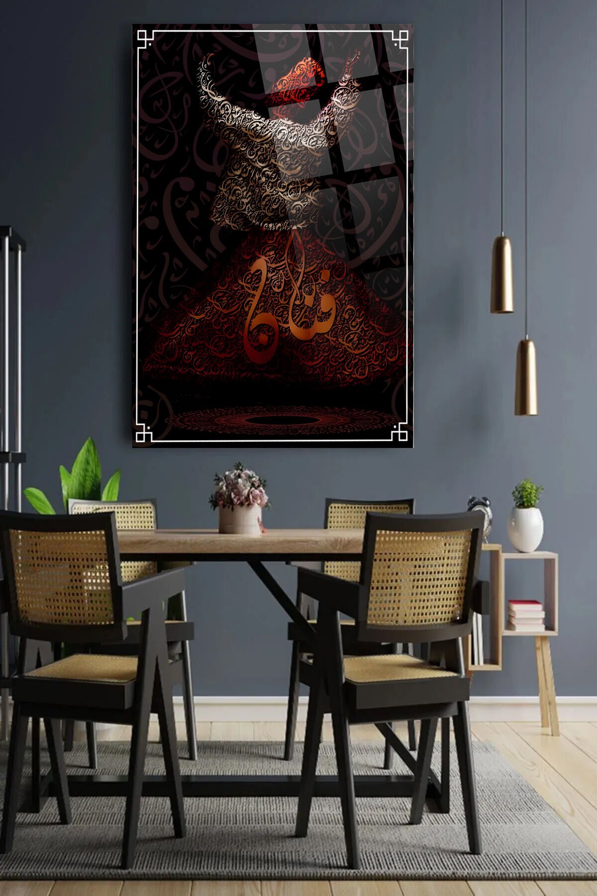 MEVLEVİ SEMA ALLAHI ANMA GÖRSELİ DİNİ İSLAMİ KIRILMAZ LÜKS CAM TABLO EV İŞ YERİ HEDİYESİ CAM TABLO Siyah 2