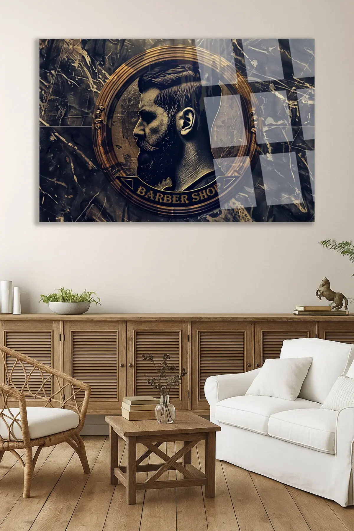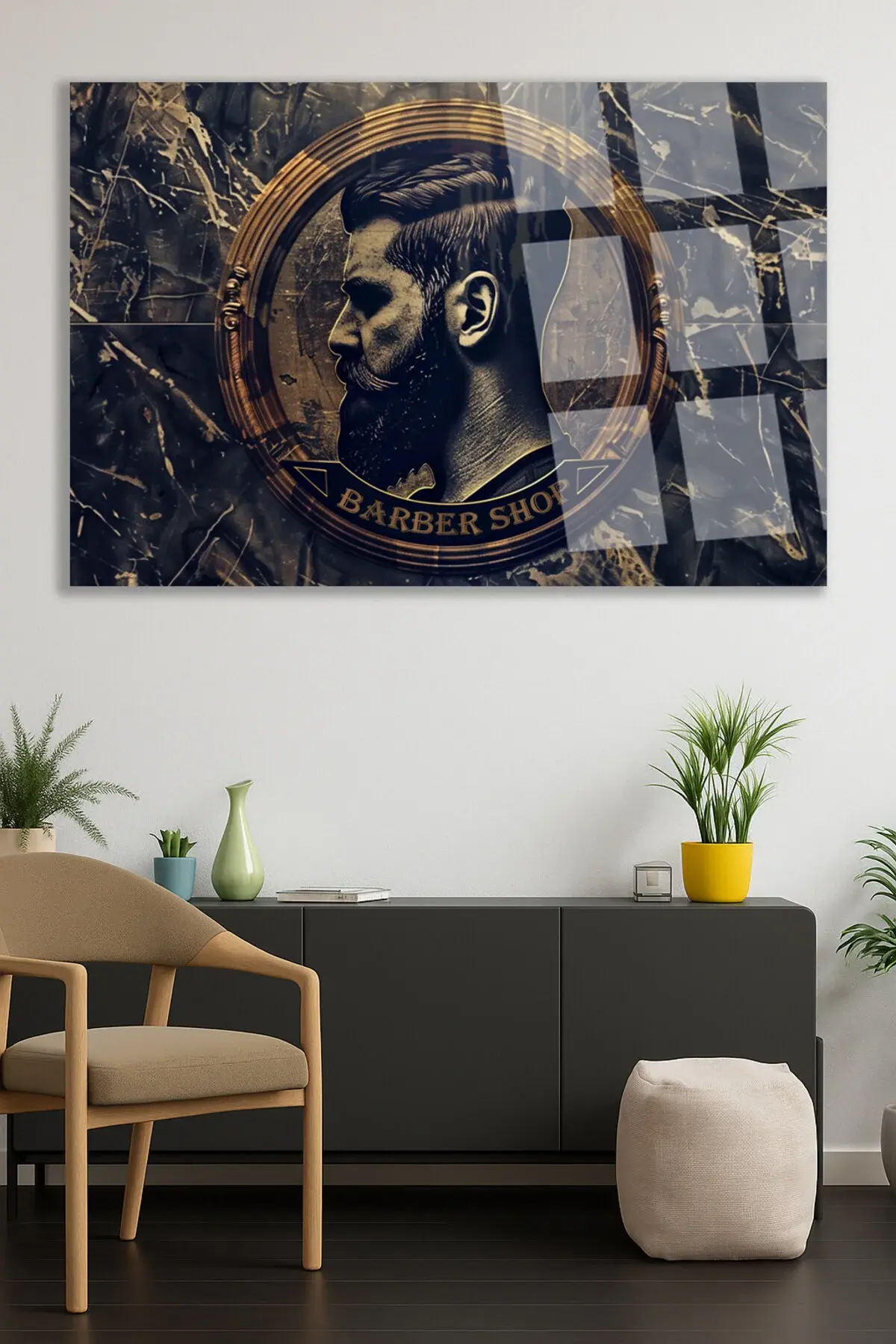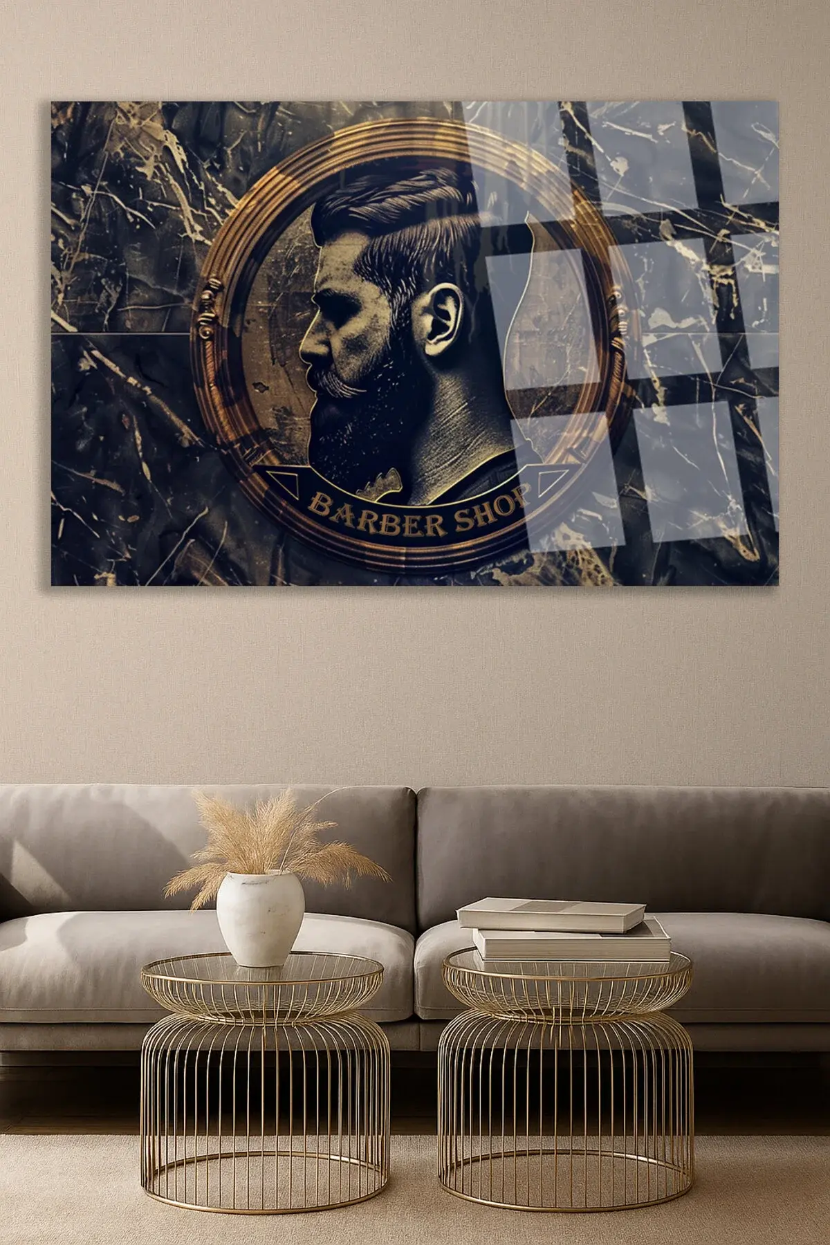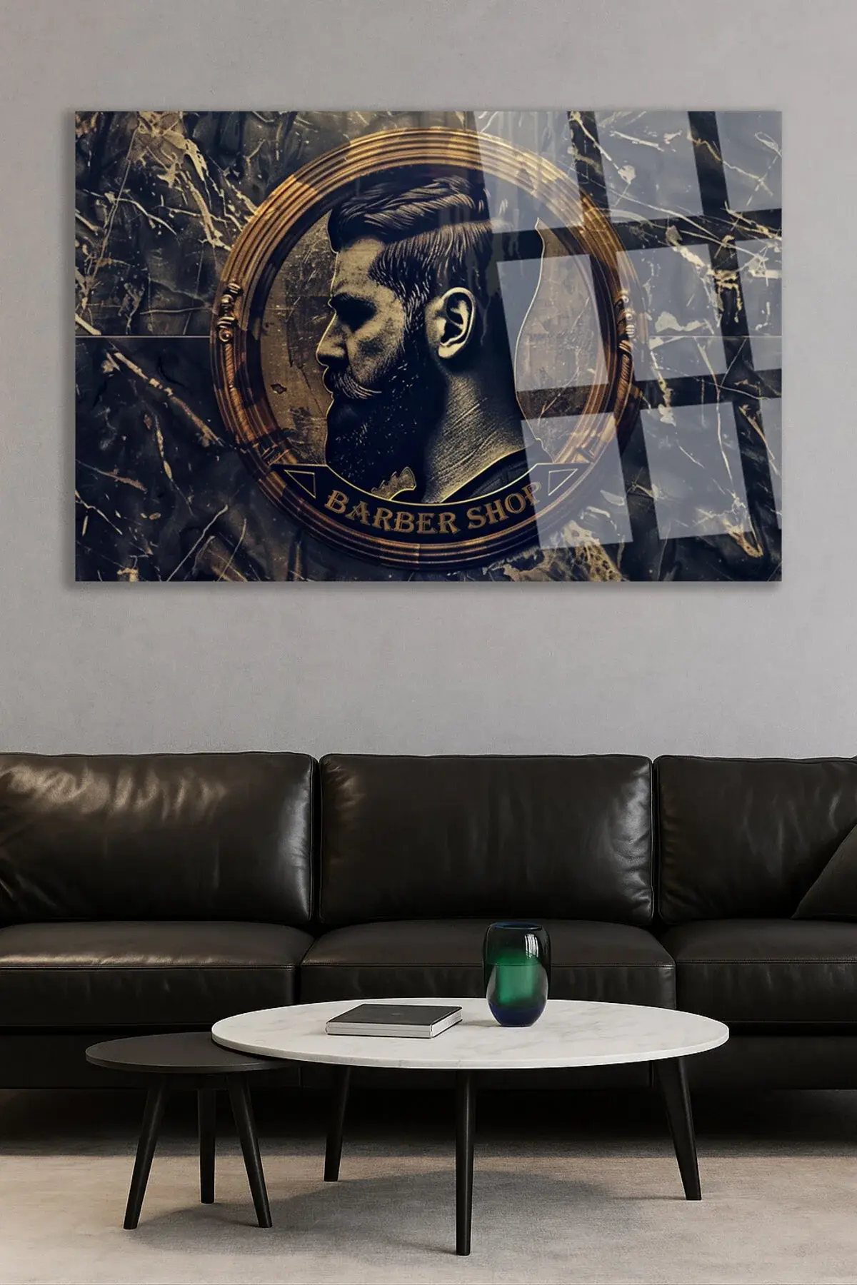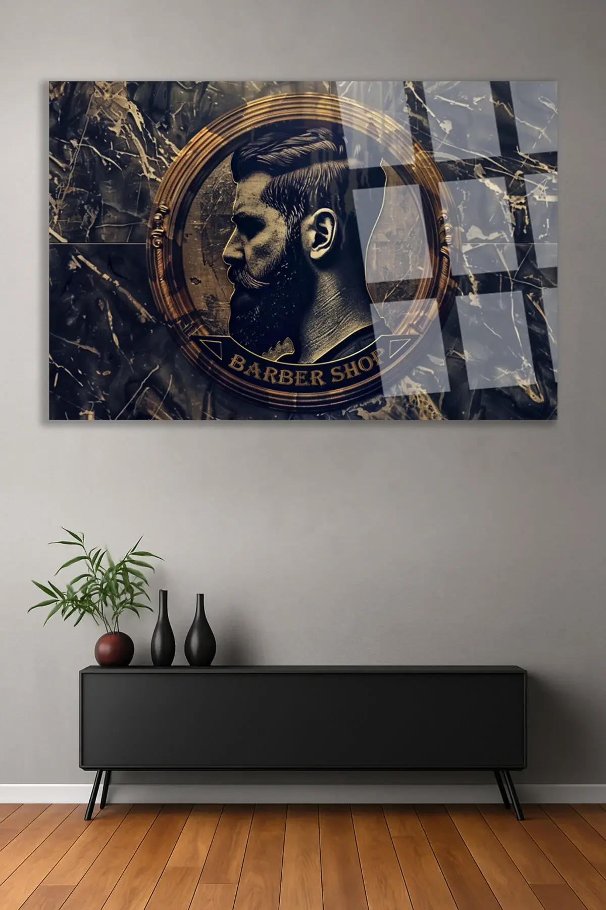 MODERN BERBER TABLOSU ERKEK KUAFÖRÜ KIRILMAZ CAM TABLO LÜKS HEDİYE ULTA CANLI RENKLER Bej