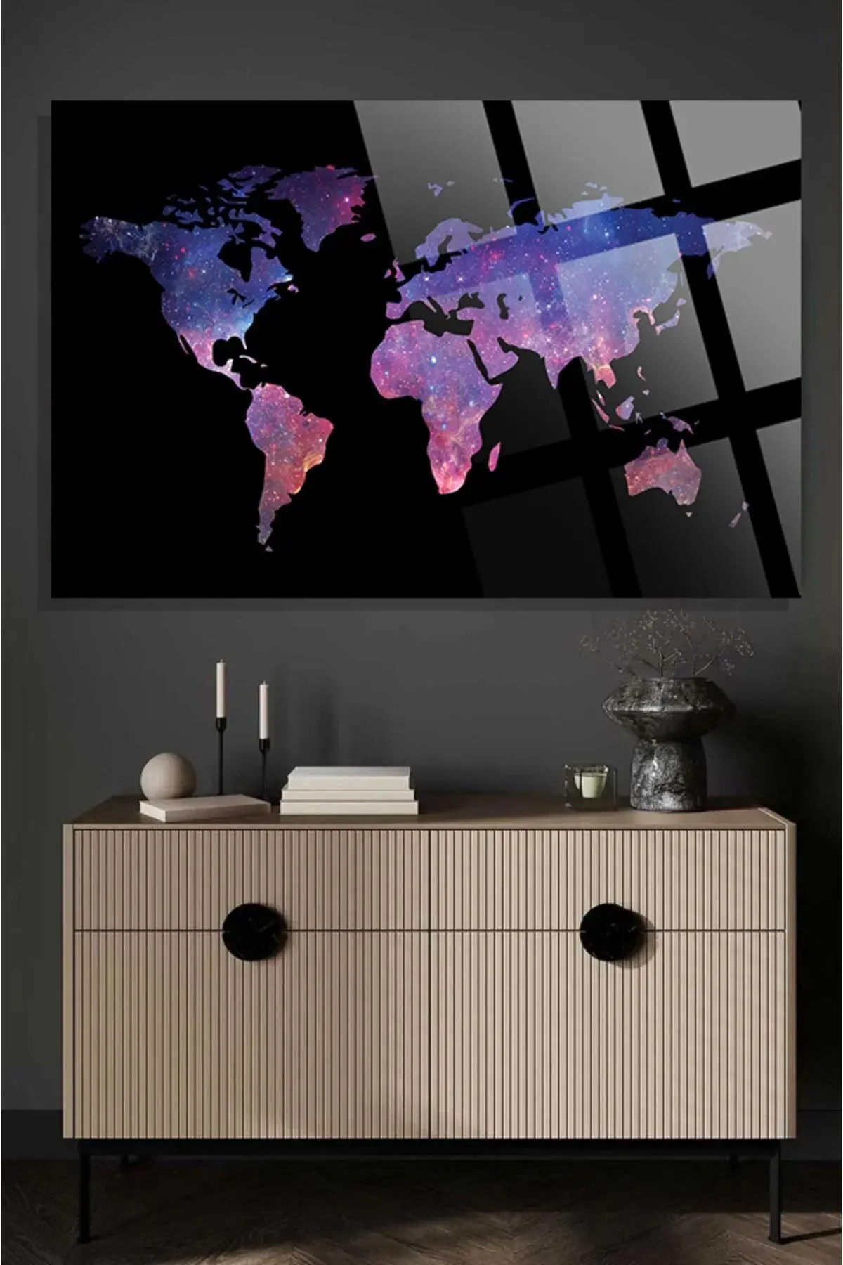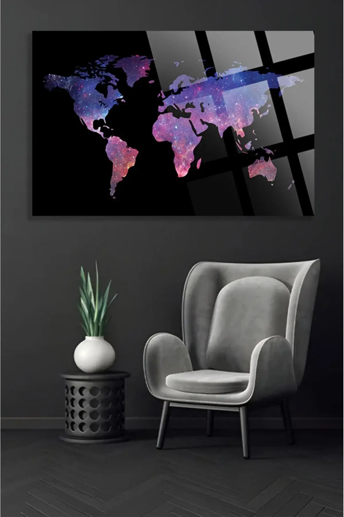 Modern Dünya Haritası Ofis, Ev için Harita 4mm Kırılmaz Temperli Yüksek Çözünürlüklü Cam Tablo