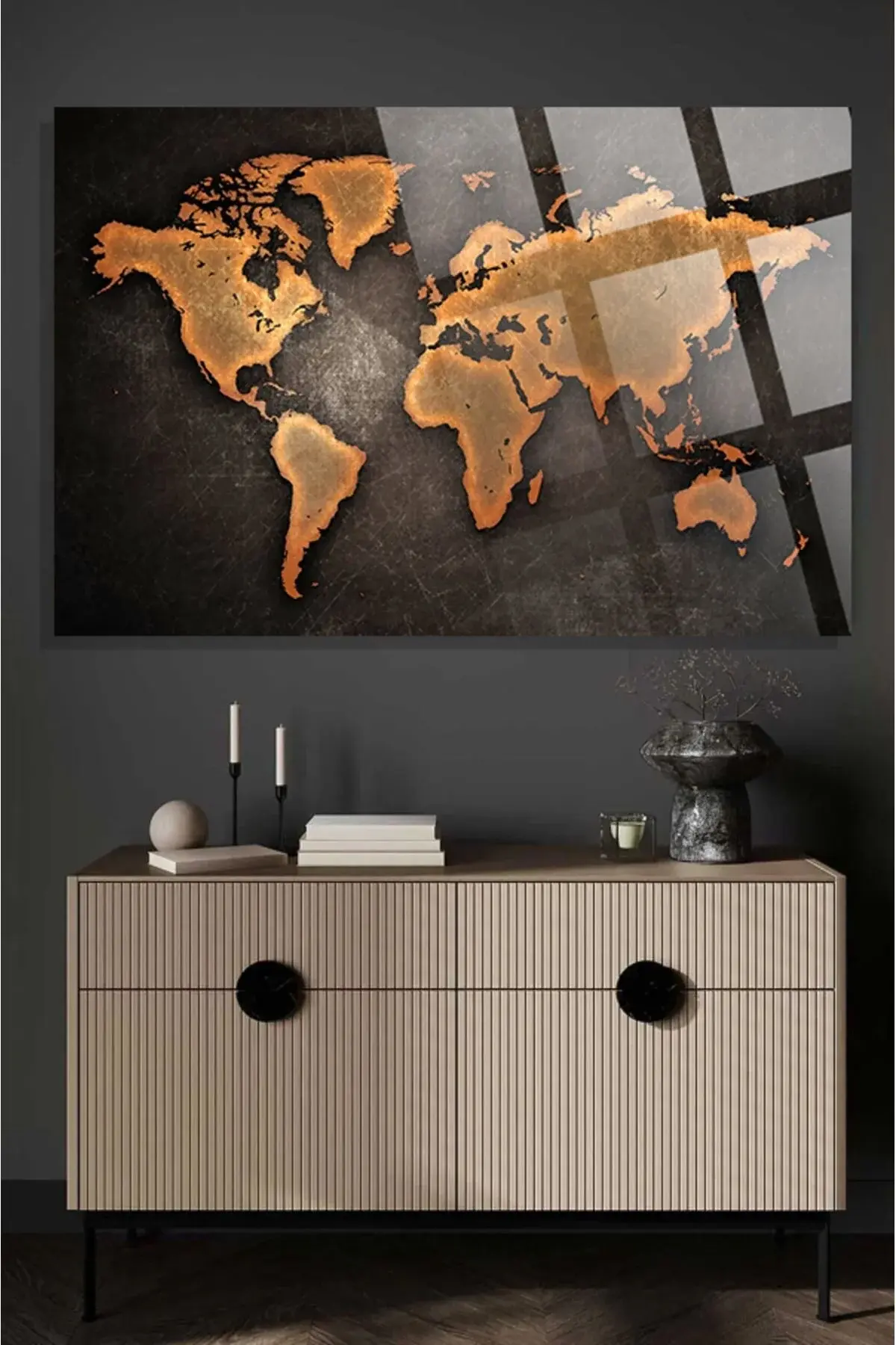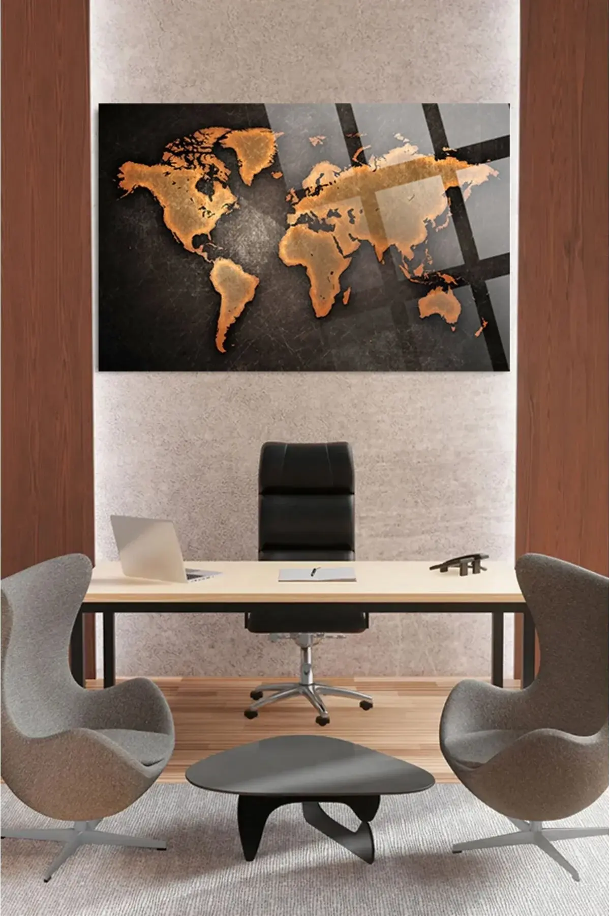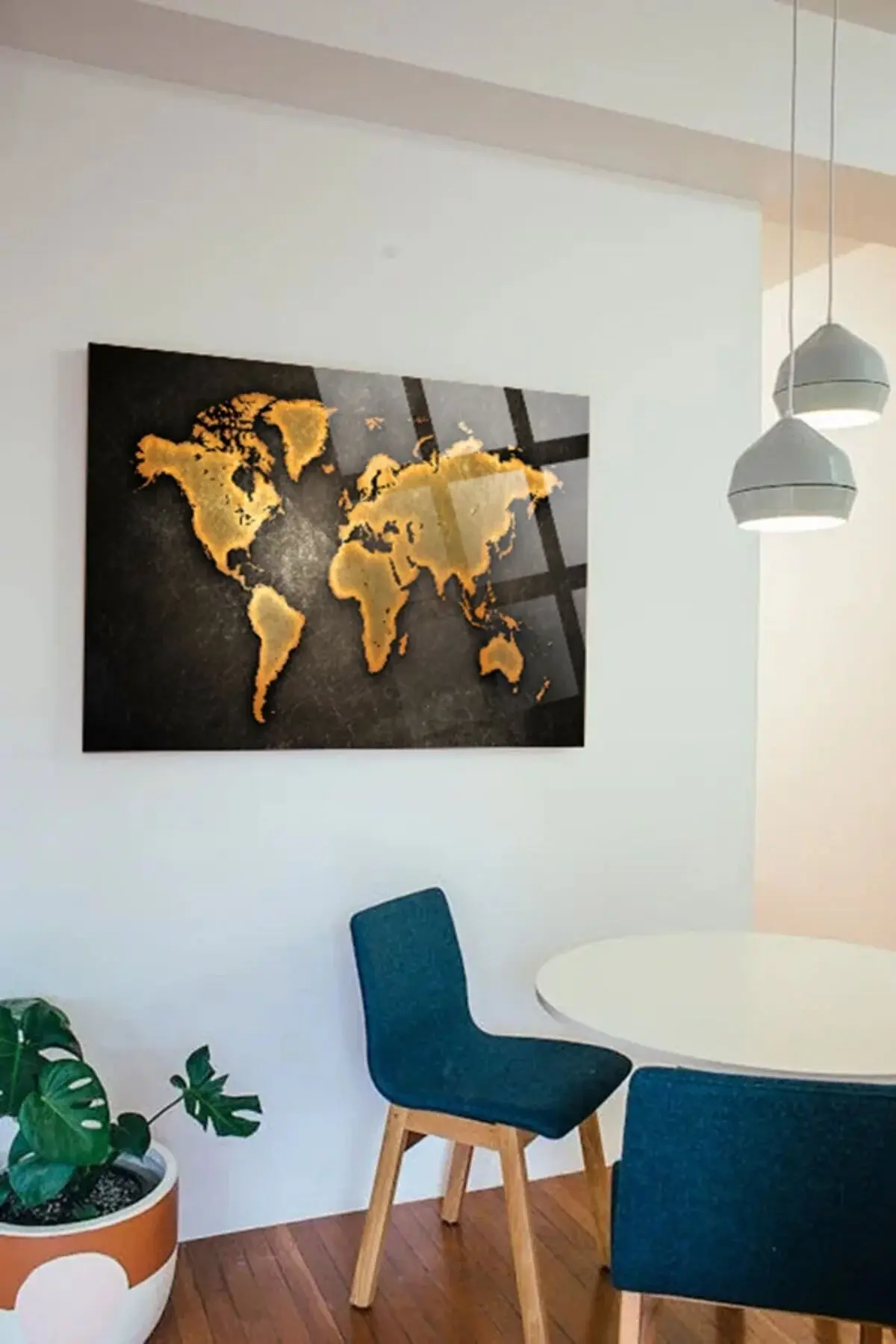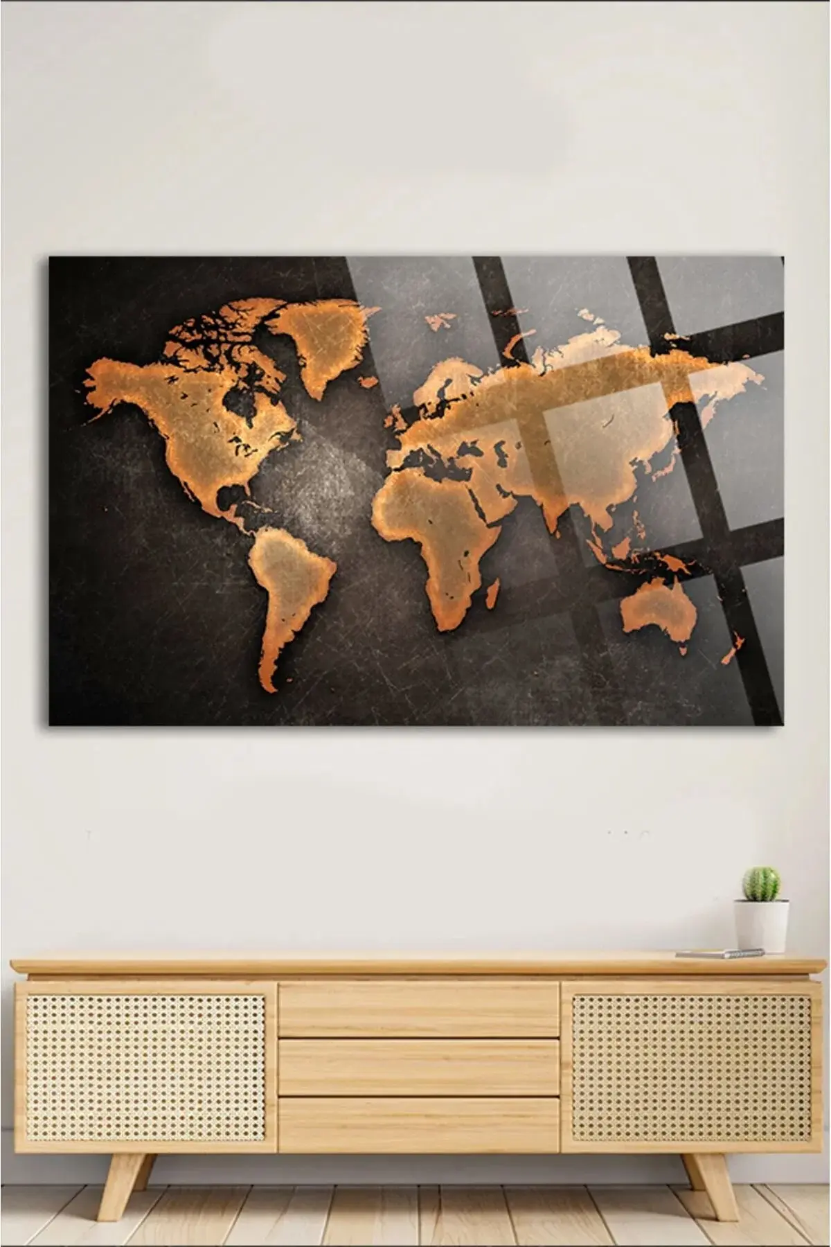 Modern Dünya Haritası Ofis, Ev için Harita 4mm Kırılmaz Temperli Yüksek Çözünürlüklü Cam Tablo dsjhajdkasdaws2