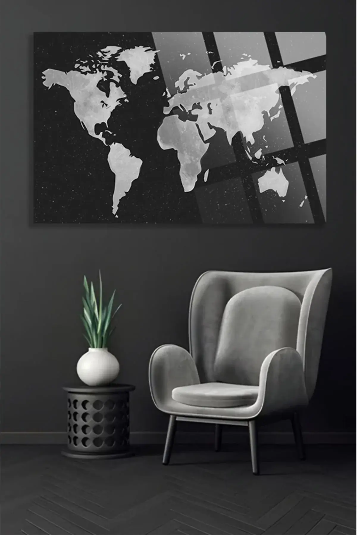 Modern Dünya Haritası Ofis, Ev için Harita 4mm Kırılmaz Temperli Yüksek Çözünürlüklü Cam Tablo