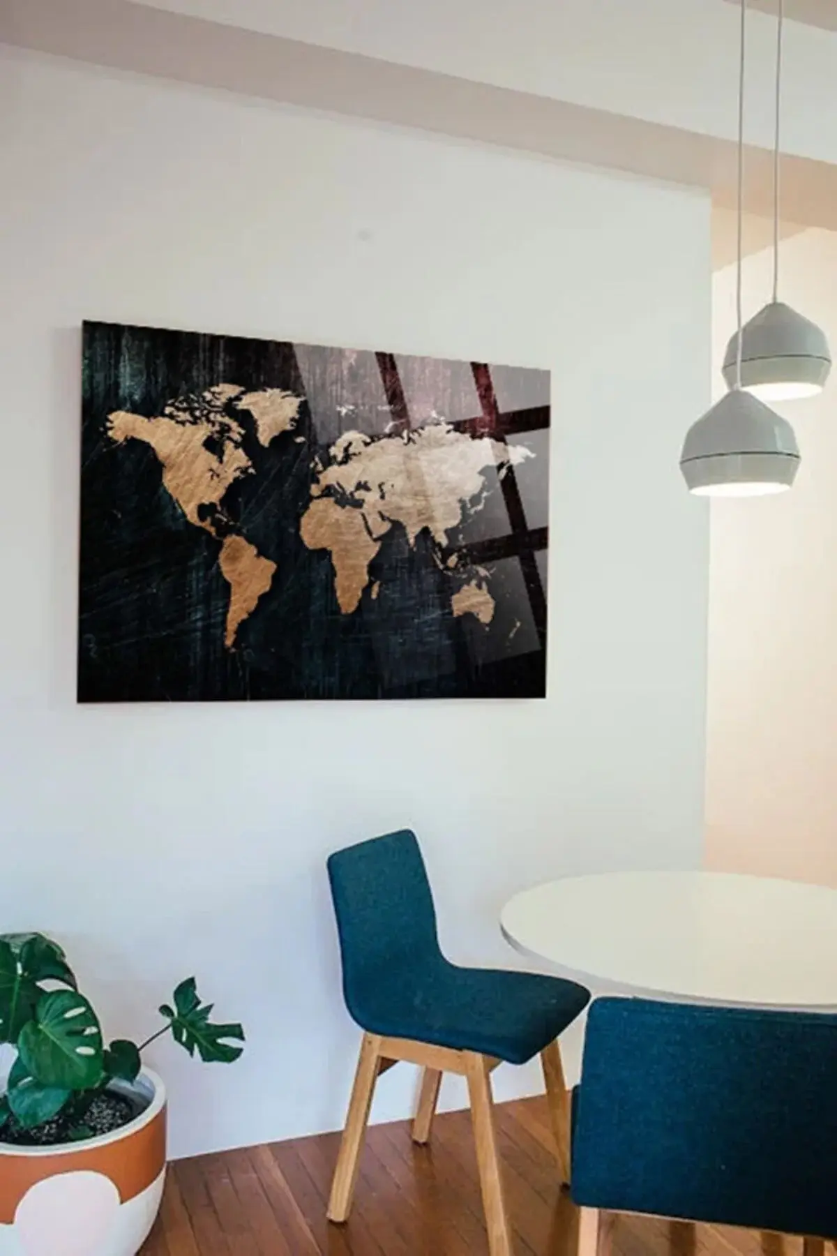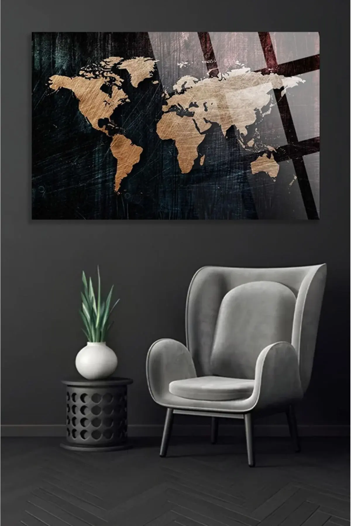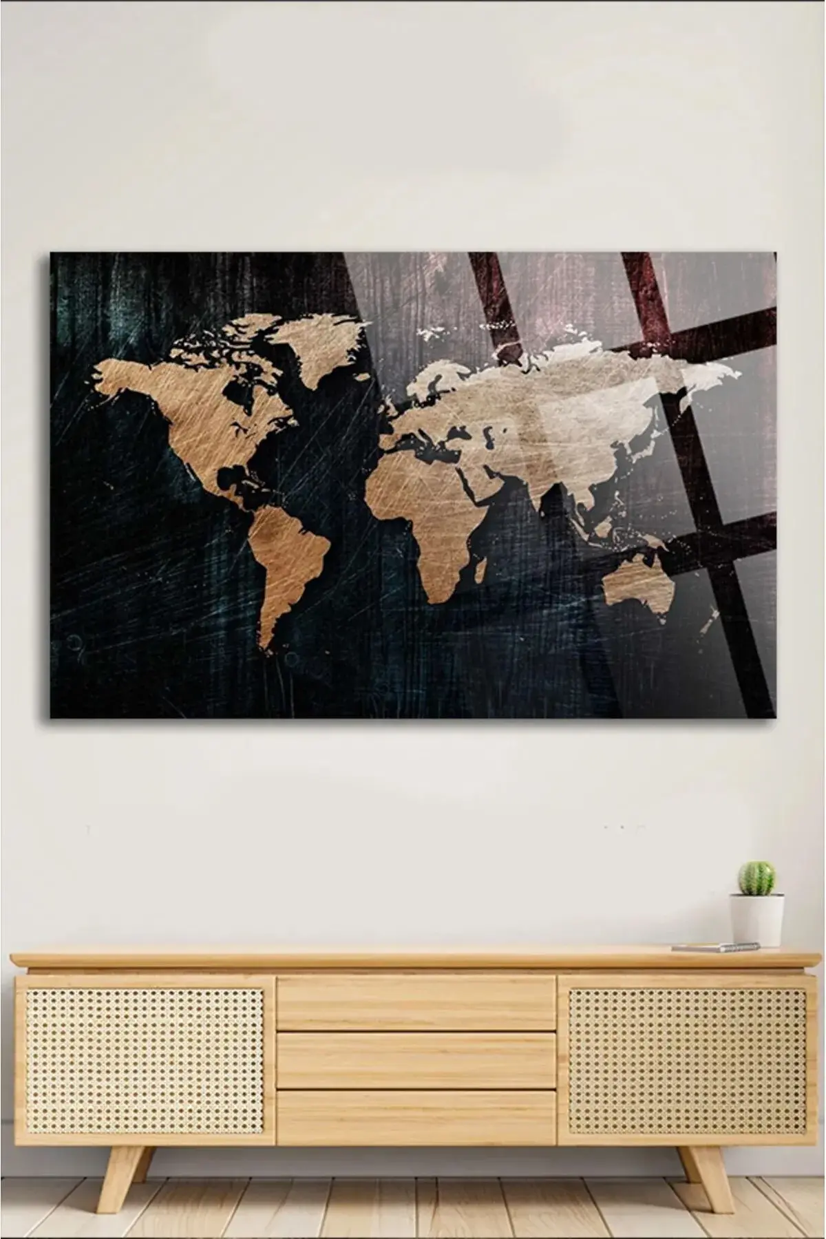 Modern Dünya Haritası Ofis, Ev için Harita 4mm Kırılmaz Temperli Yüksek Çözünürlüklü Cam Tablo