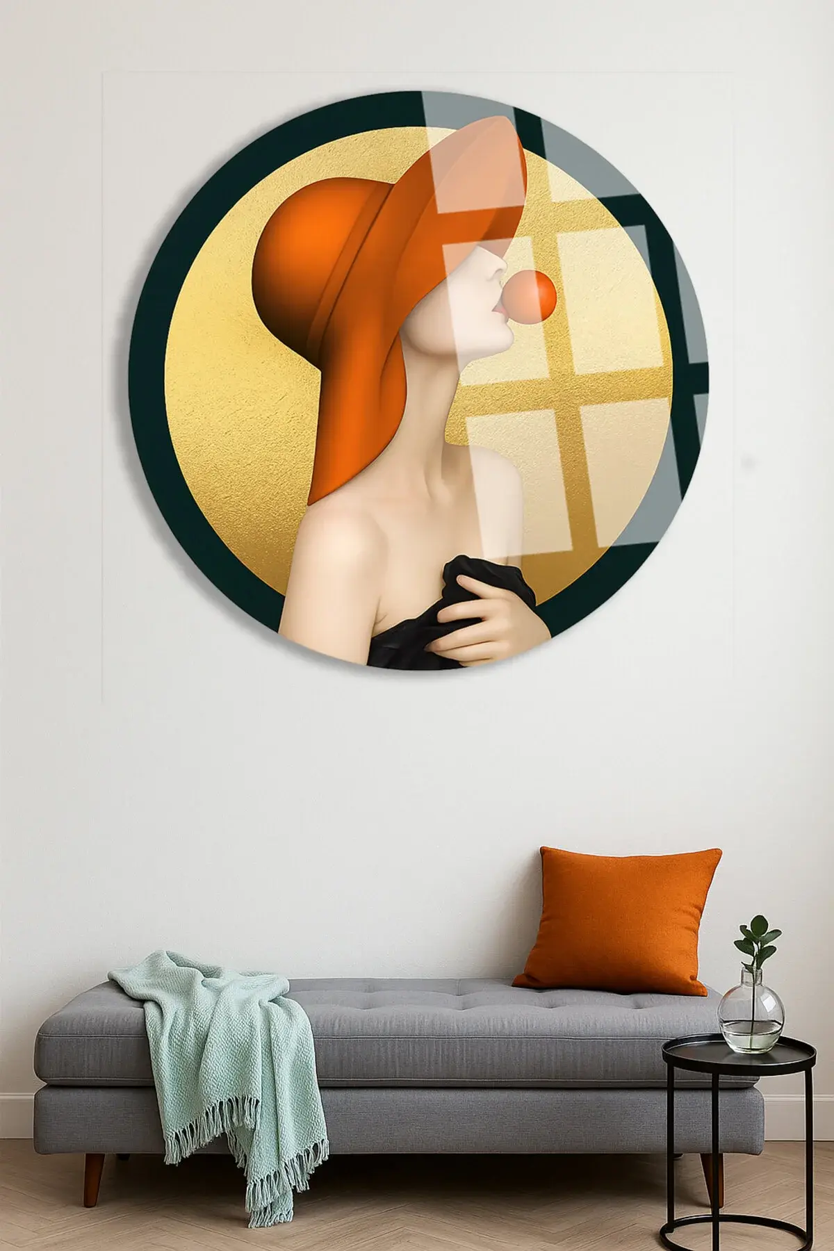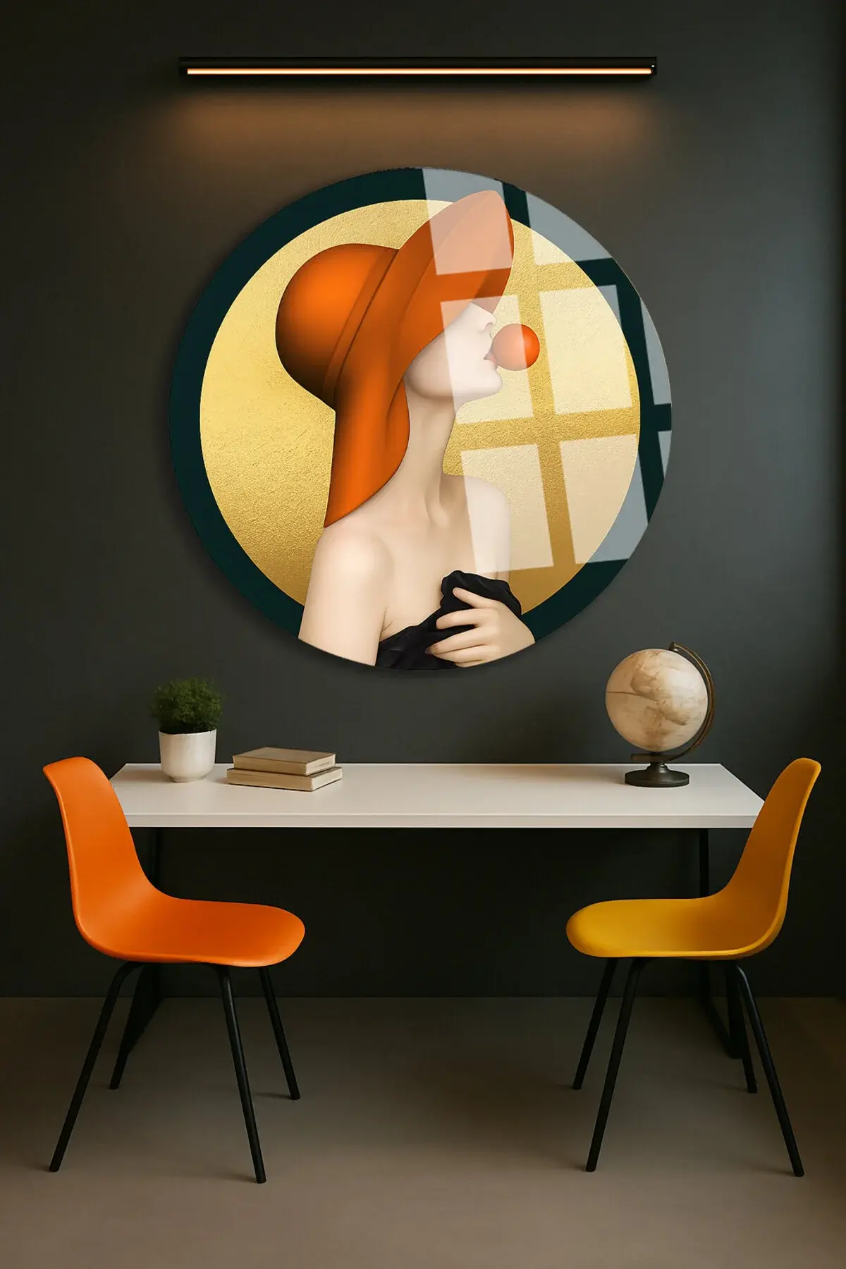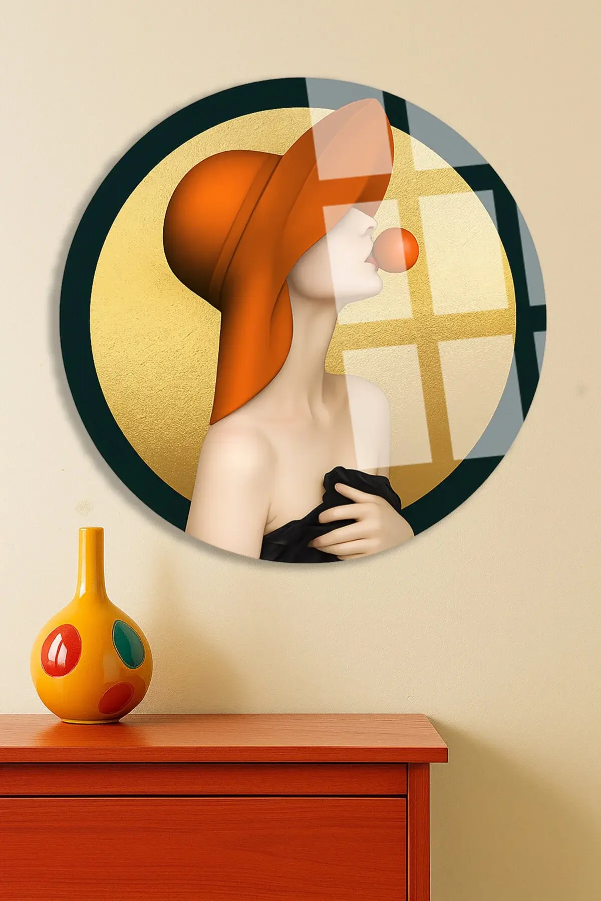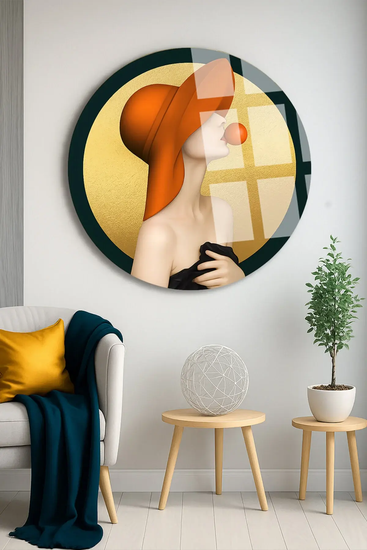 MODERN ŞIK KADIN TASARIMI MODERN KIRILMAZ LÜKS YUVARLAK CAM TABLO MODERN HEDİYE TABLO Turuncu