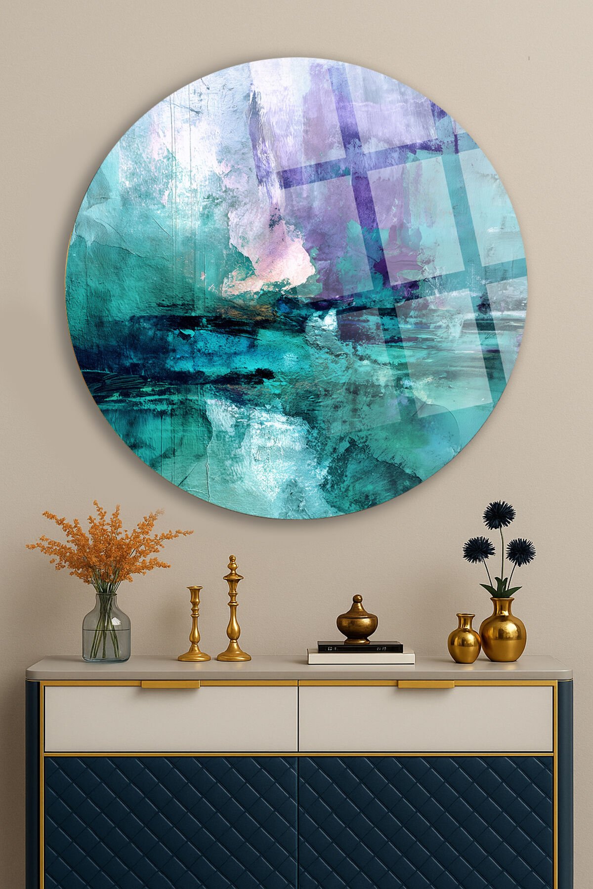 - Modern soyut tasarımıyla evinizin veya ofisinizin dekorasyonuna şık bir dokunuş ekler.; - Türkiye'de üretilen bu cam tablo, yerel işçiliği ve kaliteli malzemeleriyle öne çıkar.; - Çerçevesiz yapısı sayesinde, istediğiniz herhangi bir çerçeve ile kolayca uyum sağlar ve esnek bir dekorasyon imkanı sunar.; - Yüksek kaliteli cam malzemesi ile uzun ömürlü kullanım ve dayanıklılık sağlar.;