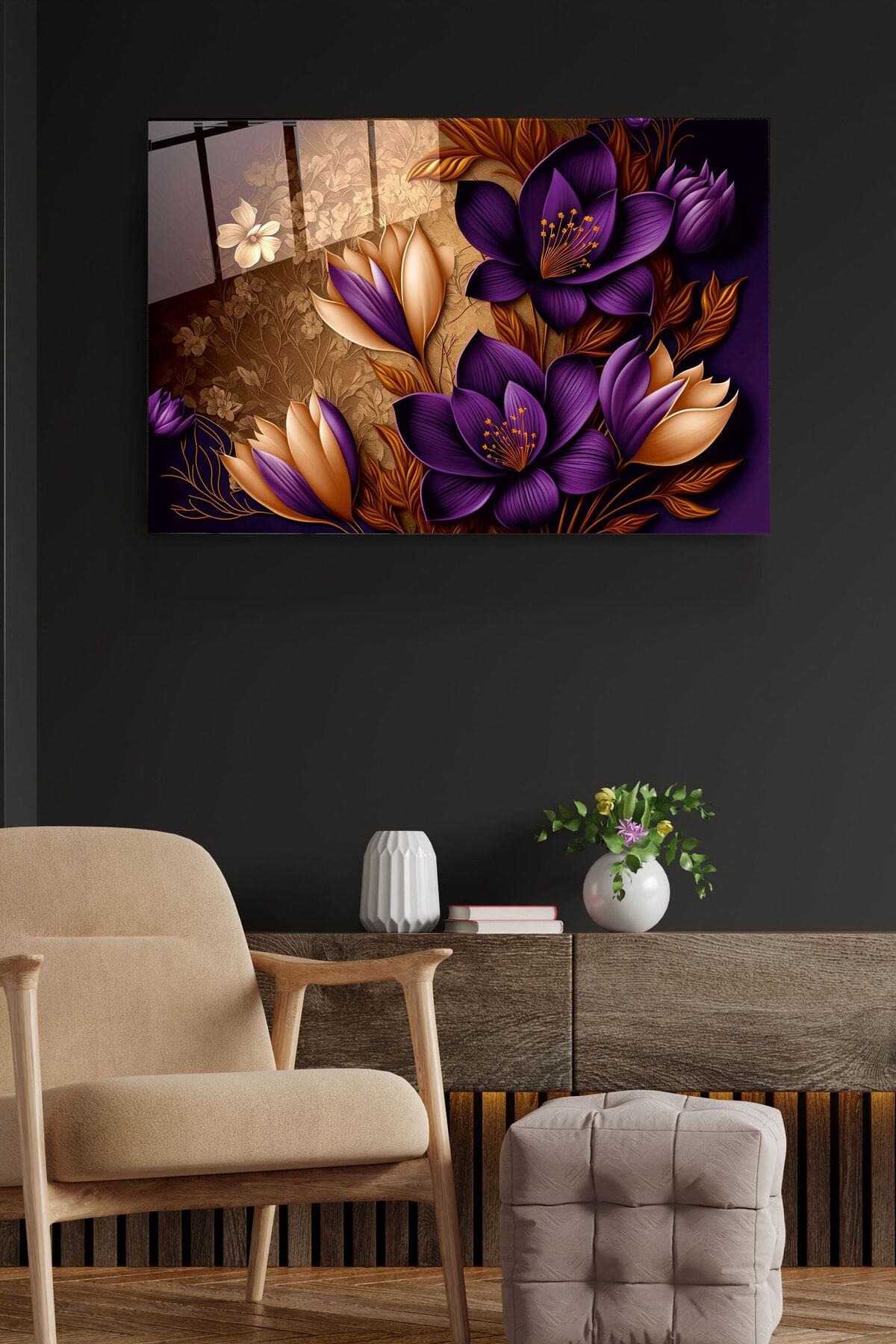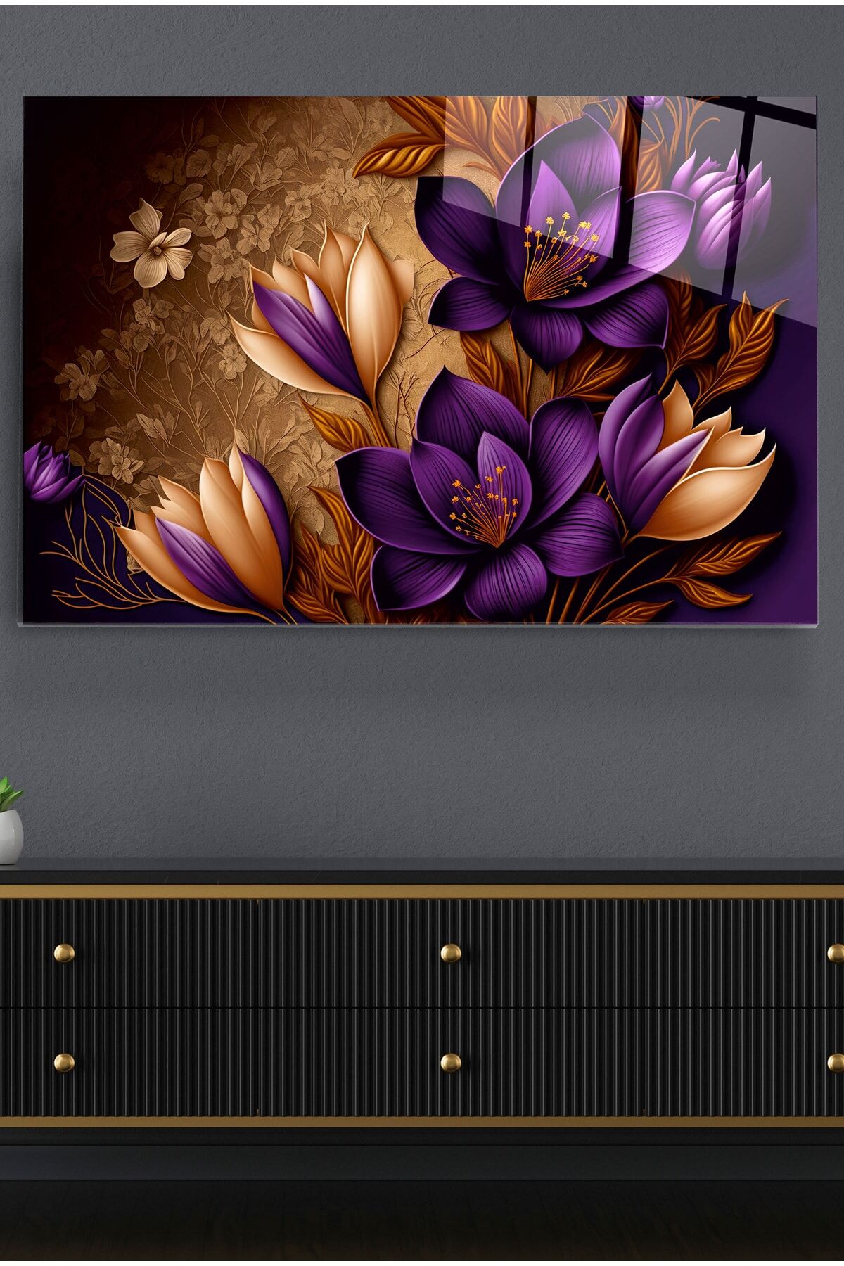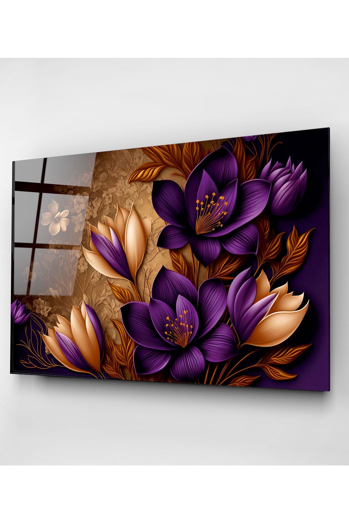 Mor Çiğdem Cam Tablo, Dekoratif Cam Tablo