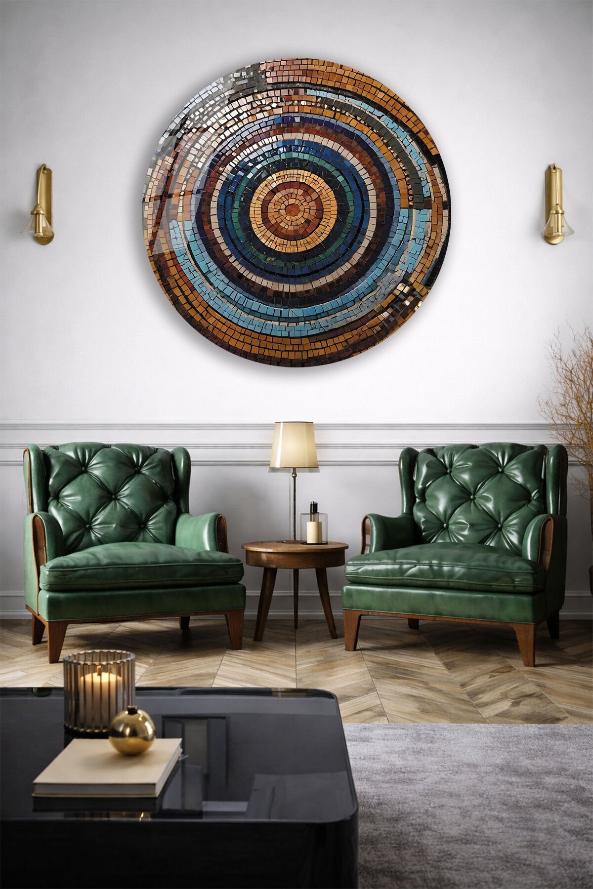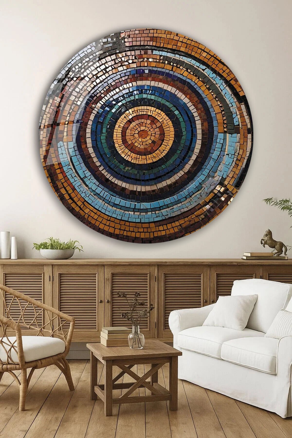 Mozaik Desen Yuvarlak Cam Tablo | Hediyelik, Dekoratif, Ofis, Mutfak,