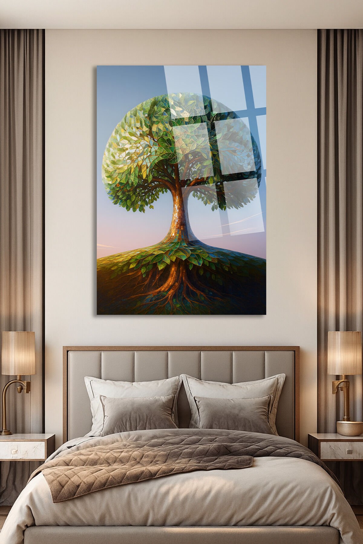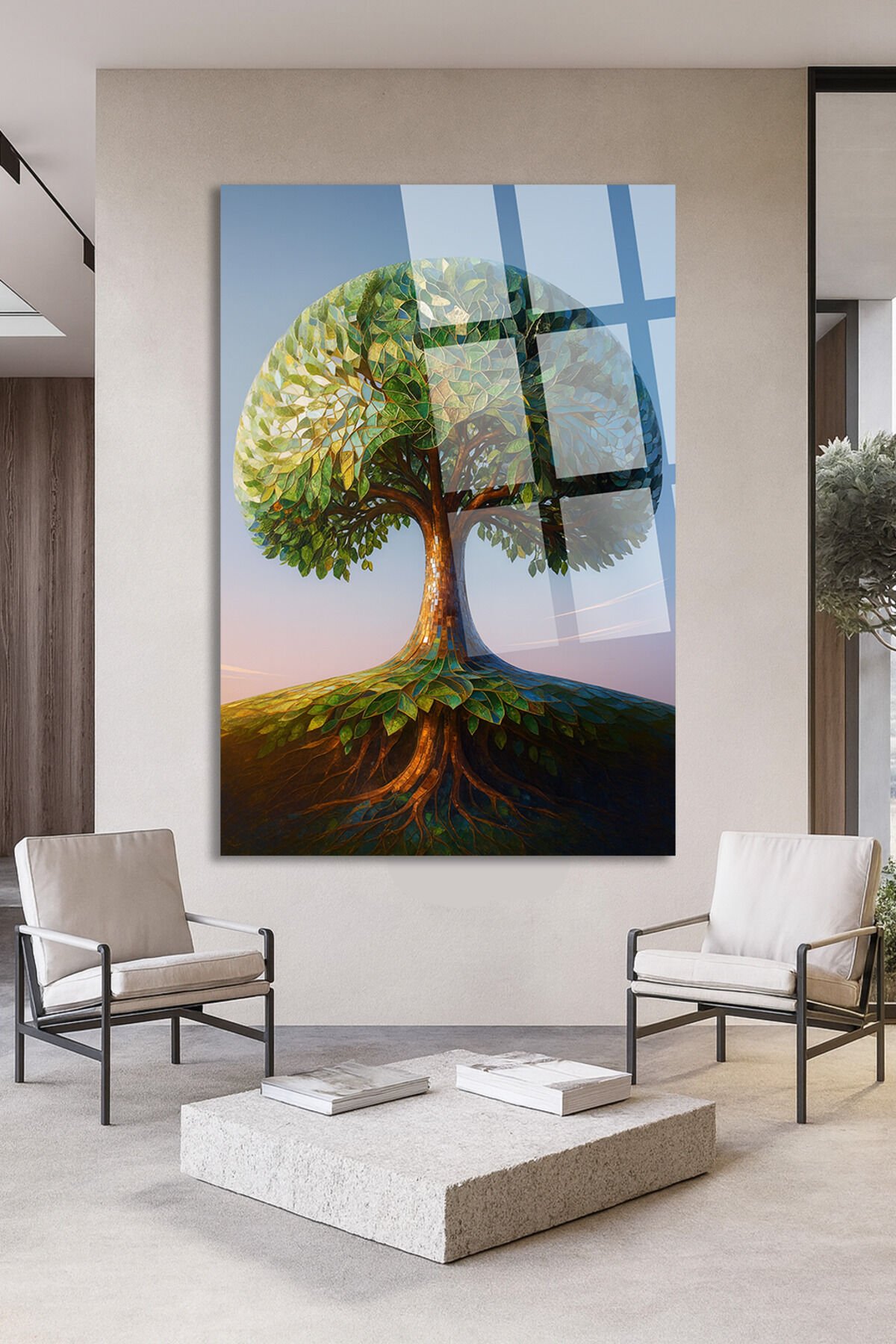 - Modern ve şık bir dekorasyon aracı olarak, doğanın huzurunu evinize taşıyan mozaik dokulu yaşam ağacı tasarımı.; - Türkiye menşeli, yerli üretimle gurur duyan bir sanat eseri.; - Çerçevesiz tasarımı sayesinde, duvarınızda minimalist bir görünüm oluştururken, tabloyu kolayca asmanızı sağlar.; - Ultra canlı renkleriyle göz alıcı bir estetik sunan cam materyal, uzun ömürlü kullanım vaat eder.; - Kirilmaz cam yapısı ile dayanıklılığı artırarak, yıllar boyunca ilk günkü canlılığını korur.;