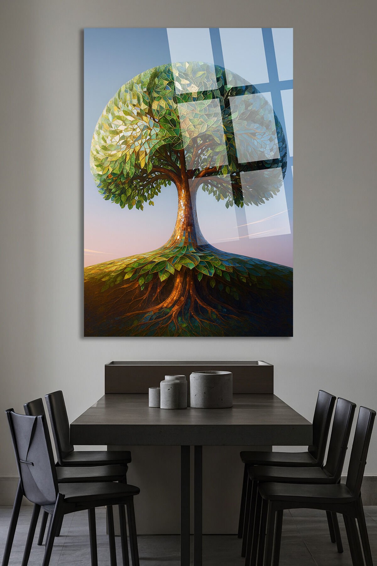 MOZAİK DOKULU YAŞAM AĞACI TASARIMLI TABLO MODERN ULTRA CANLI RENKLER KIRILMAZ CAM TABLO Yeşil
