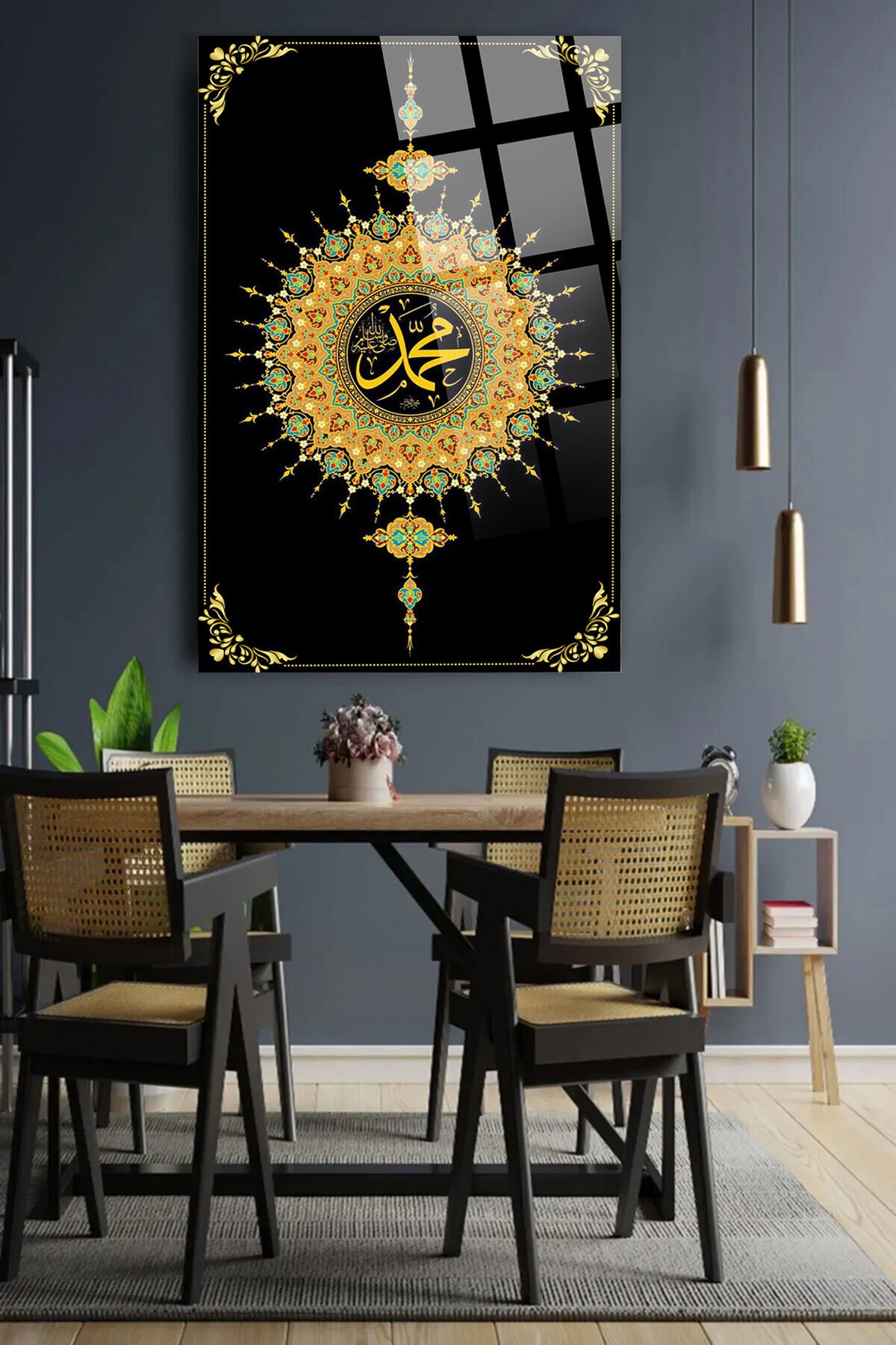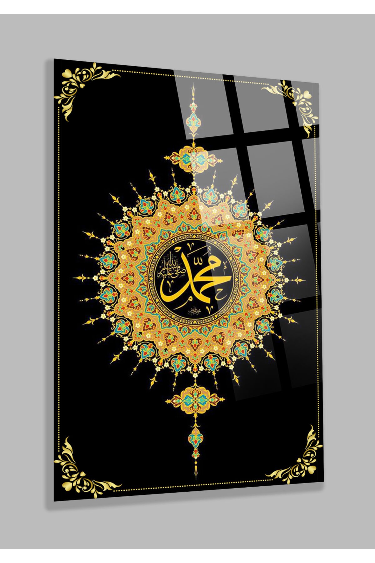 MUHAMMED YAZILI HARİKA TASARIM KIRILMAZ LÜKS CAM TABLO DİNİ İSLAMİ TABLO EV HEDİYESİ İŞ HEDİYESİ Siyah