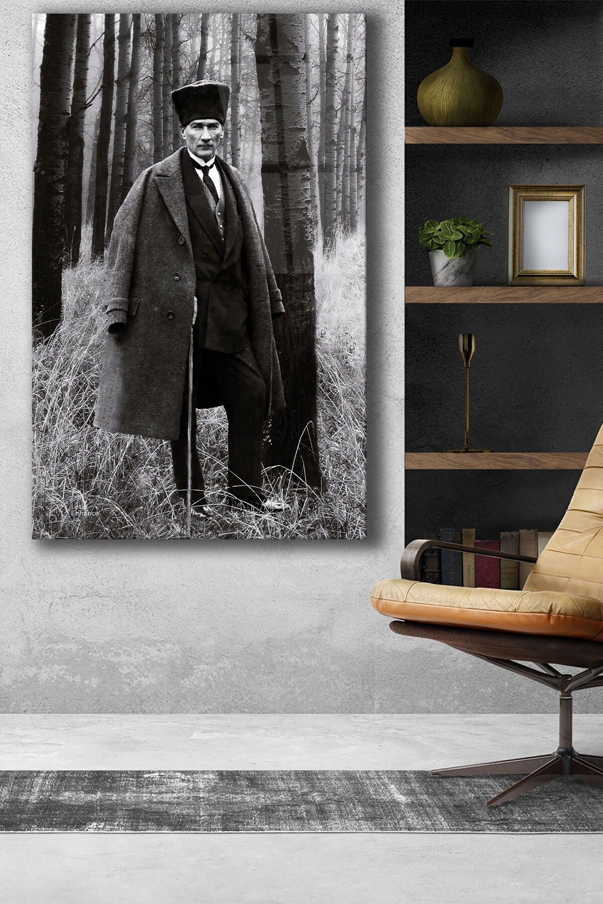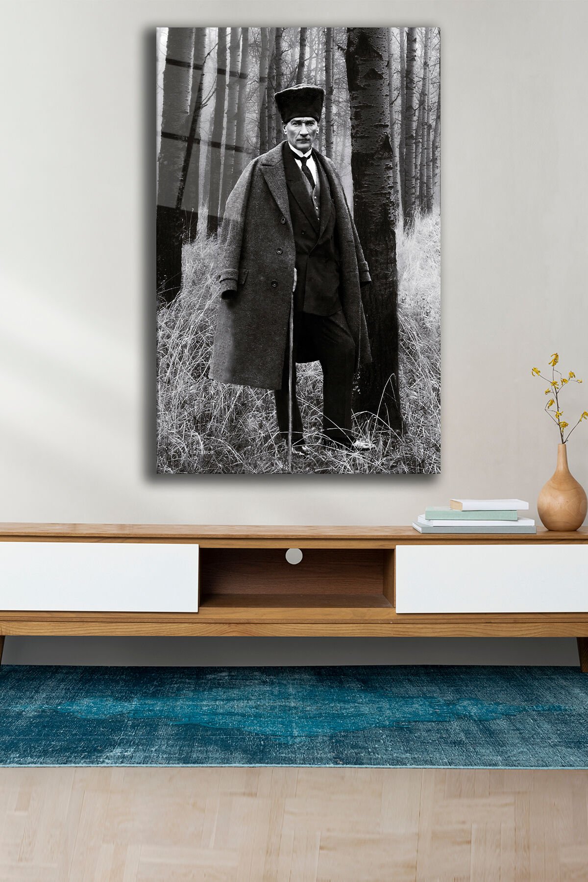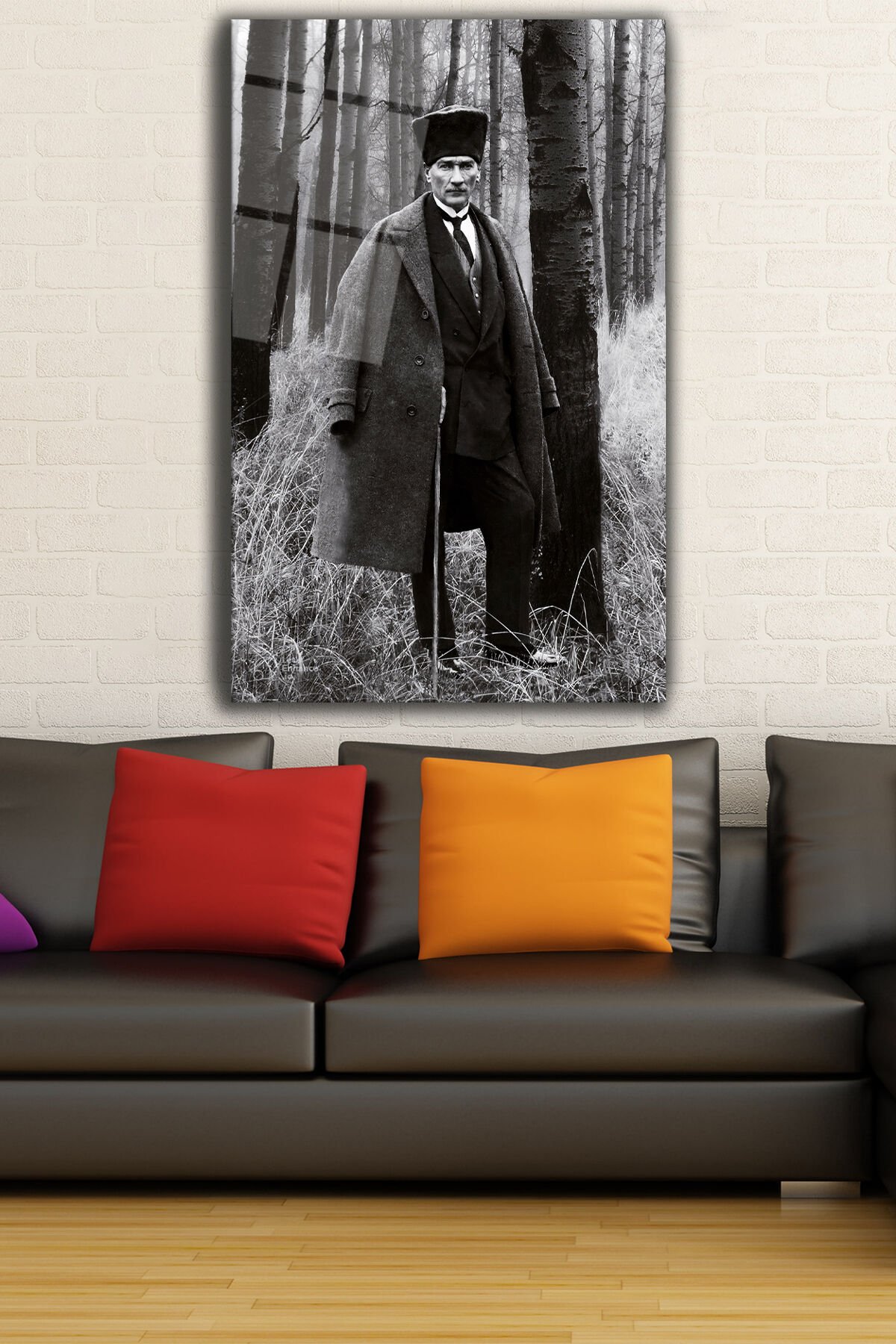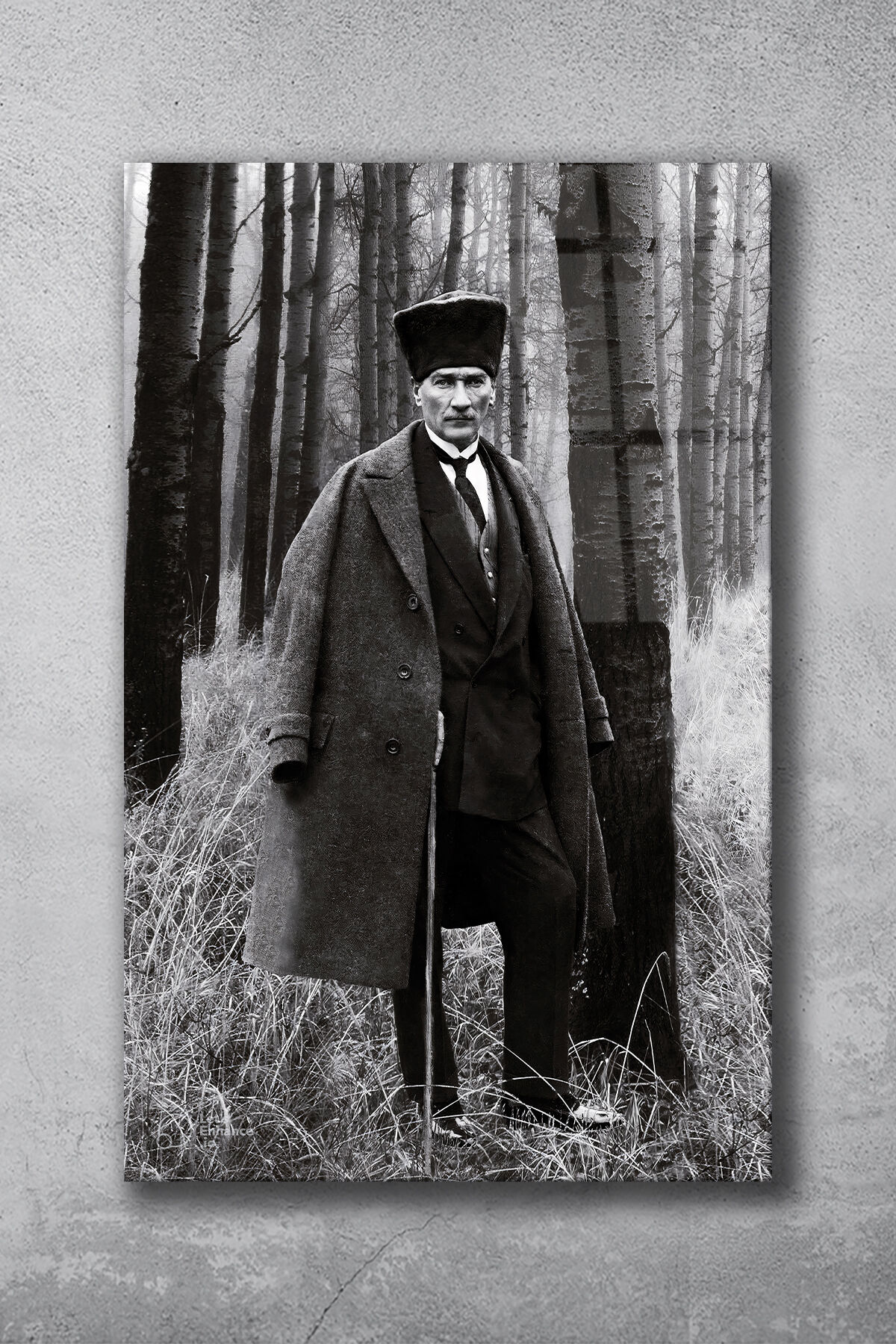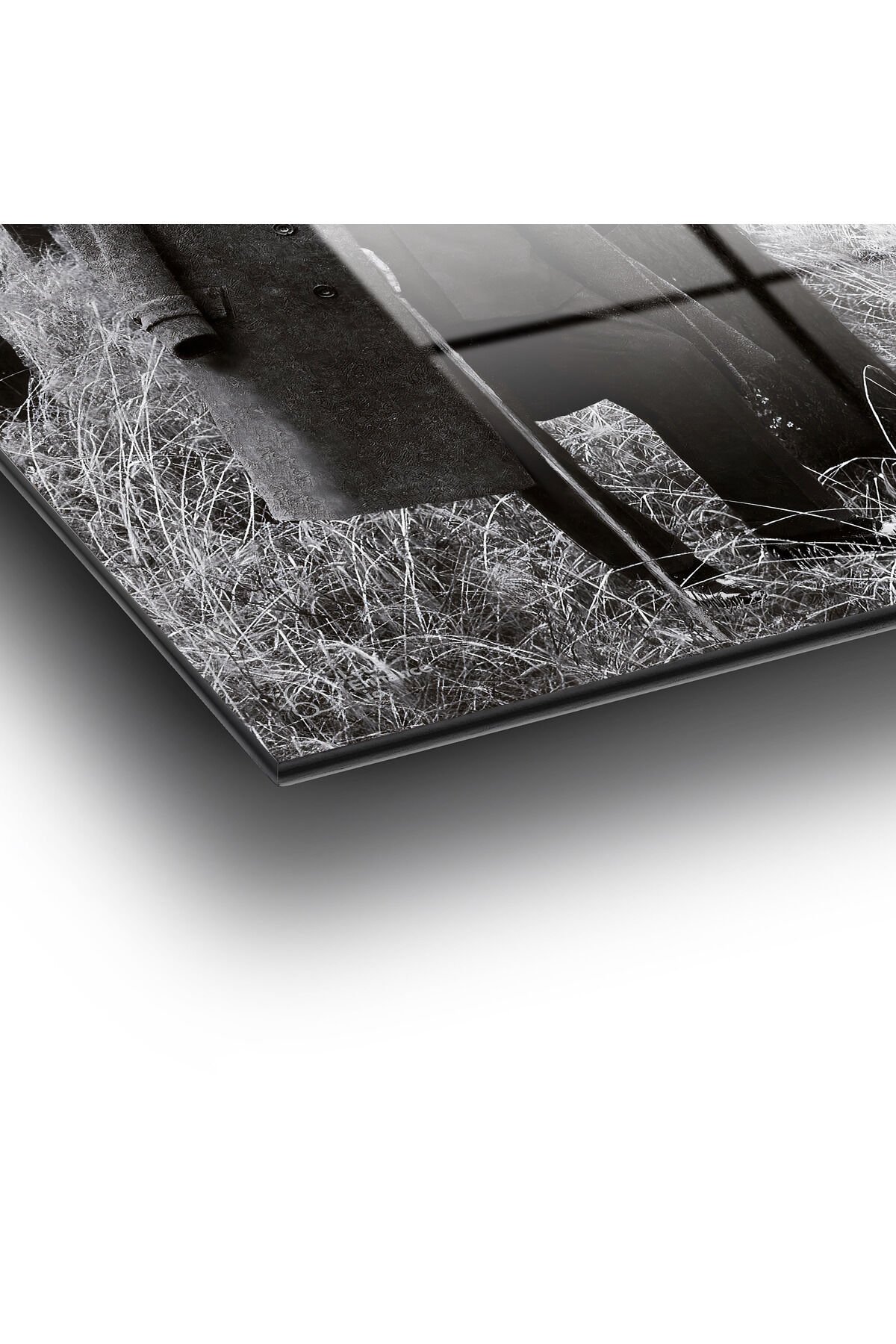 Mustafa Kemal Atatürk Cam Tablo, Siyah Beyaz, Ev, Ofis ve Okul Duvar Dekoru, Hediyelik, Büyük Tablo Siyah Beyaz