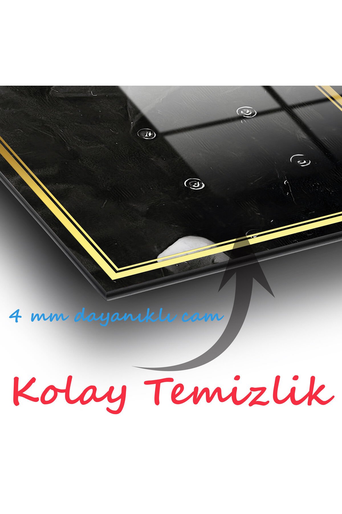 Cam tablolarımız 4 mm kalınlığında temper işlemi (ısıl işlem) görmüştür.; Kenarları rodajlanmış (kesiciliği giderilmiş) yüksek kaliteli düz camlardan oluşmaktadır.; Normal camlara göre kırılmaya 10 kat daha dayanıklıdır.; Gönderilirken özel koruma aparat ve ambalajları ile gönderilmektedir.; ; Tarafımızca hazırlanan özel tasarımlar doğrudan cam yüzeyine uv baskı tekniğiyle yüksek çözünürlüklü makinalarımız tarafından uygulanır.; Bu nedenle yüksek kaliteli,mükemmel bir görüntü derinliği sağlar.; Herhangi bir medyaya(folyo,kağıt v.; b.; ) baskı yapılmış görselin cam yüzeyine yapıştırılması şeklinde değildir.; Görsellerimiz camın arka yüzeyine doğrudan uv cam boyası kullanılarak basılır ve özel koruma boyası ile arka yüzey kapatılır.; Baskı cam ile arka koruma boyası arasında kalır.; Tasarımları ön yüzeyden camın parlaklığı ve şıklığı ile görürsünüz.; Cam tablolar zamanla solmazlar ve renkler canlılığını hiç kaybetmez.; ; Özel tasarım cam tablolar duvar dekorasyonunda yeni bir sayfa açmaktadır.; Özellikle ev ve ofis dekorasyonunda büyük tablolar duvarlarda çok şık bir görünüm sağlarlar.; Dekoratif ve zarif tablolar ev ve ofis duvarlarınıza estetik bir hava katar.; ; Tablolarımız sizler için özel olarak tasarlanmıştır.; ; Temizliği son derece kolay olan cam tablolarımızı,herhangi bir kimyasal ürünle veya nemli bez ile gönül rahatlığıyla silebilirsiniz.; Özel askı aparatı sayesinde ürünlerimizin duvardan kazara düşme olasılığı çok düşüktür.; Tek çivi ile kolayca duvara monte edebilirsiniz.; Ürün asıldığında duvardan 2 cm önde durmaktadır.; ; Kargo esnasında yaşanacak her türlü olumsuzluk(kırılma v.; b.; ) firmamıza aittir.; Kırılma olasılığı %1 in altındadır.; Özel çerçeveli kargo metodumuz Türkiyede yalnızca tarafımıza aittir bu sayede kırılma yaşanmamaktadır.; En ufak bir sorunda ise sizlere sağlam şekilde ulaşıncaya kadar tekrar gönderilir.; ; Üretici firma olarak özel tasarımlarıyla camı birleştirerek yaşam alanlarınıza şık bir görünüm ve modern bir hava katmayı amaç edinilmiştir.Kişiye özel Tablo seçeneğimiz de mevcuttur kişiye özel cam tablolalar için iletişime geçiniz.