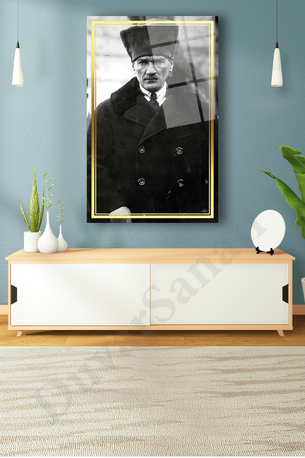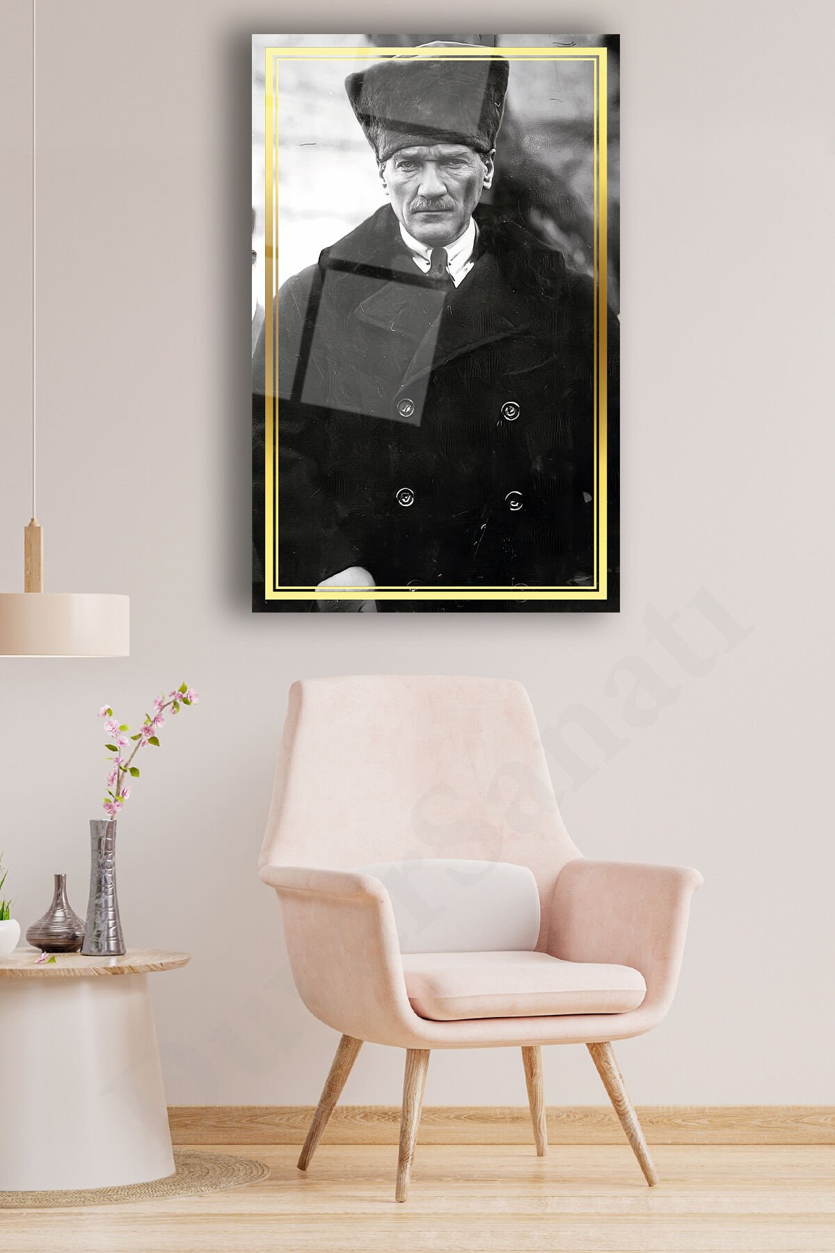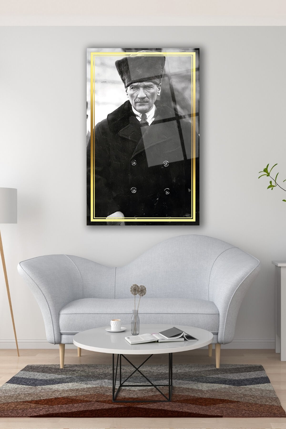 Mustafa Kemal Atatürk Cam Tablo, Siyah Beyaz, Ev, Ofis ve Okul Duvar Dekoru, Hediyelik, Büyük Tablo Siyah Beyaz