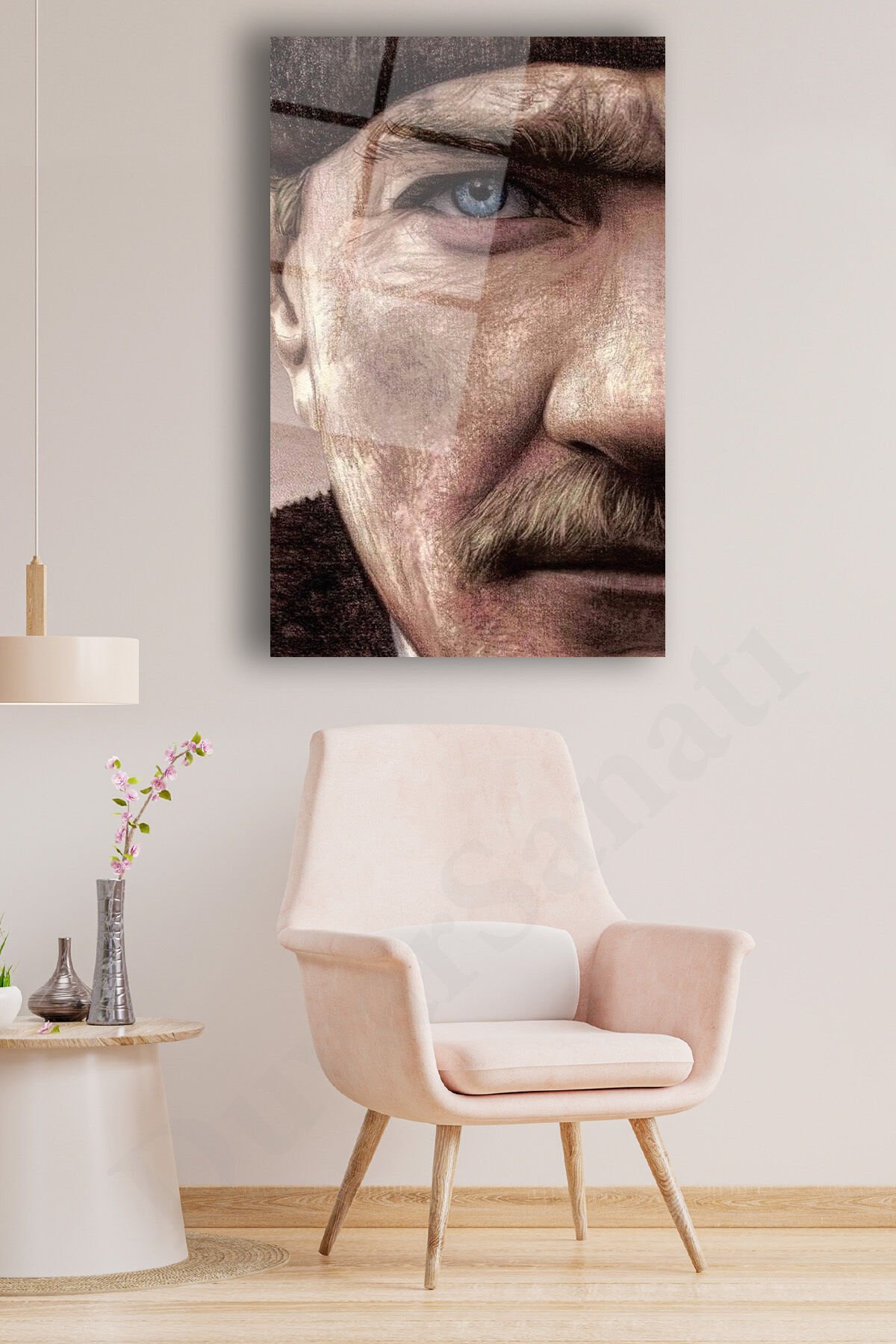 Mustafa Kemal Atatürk Portresi Cam Tablo, Ev, Ofis ve Okul Duvar Dekoru, Hediyelik, Büyük Tablo Kahverengi