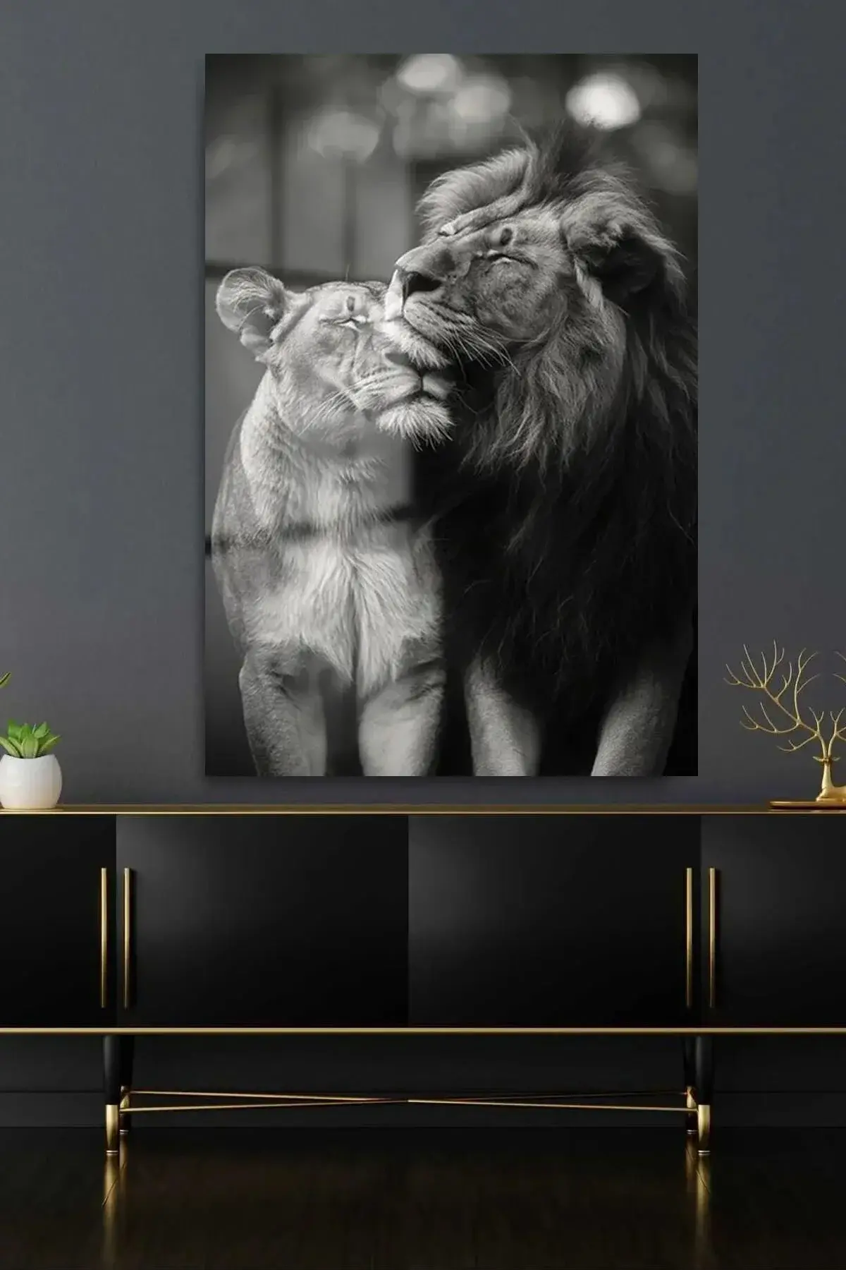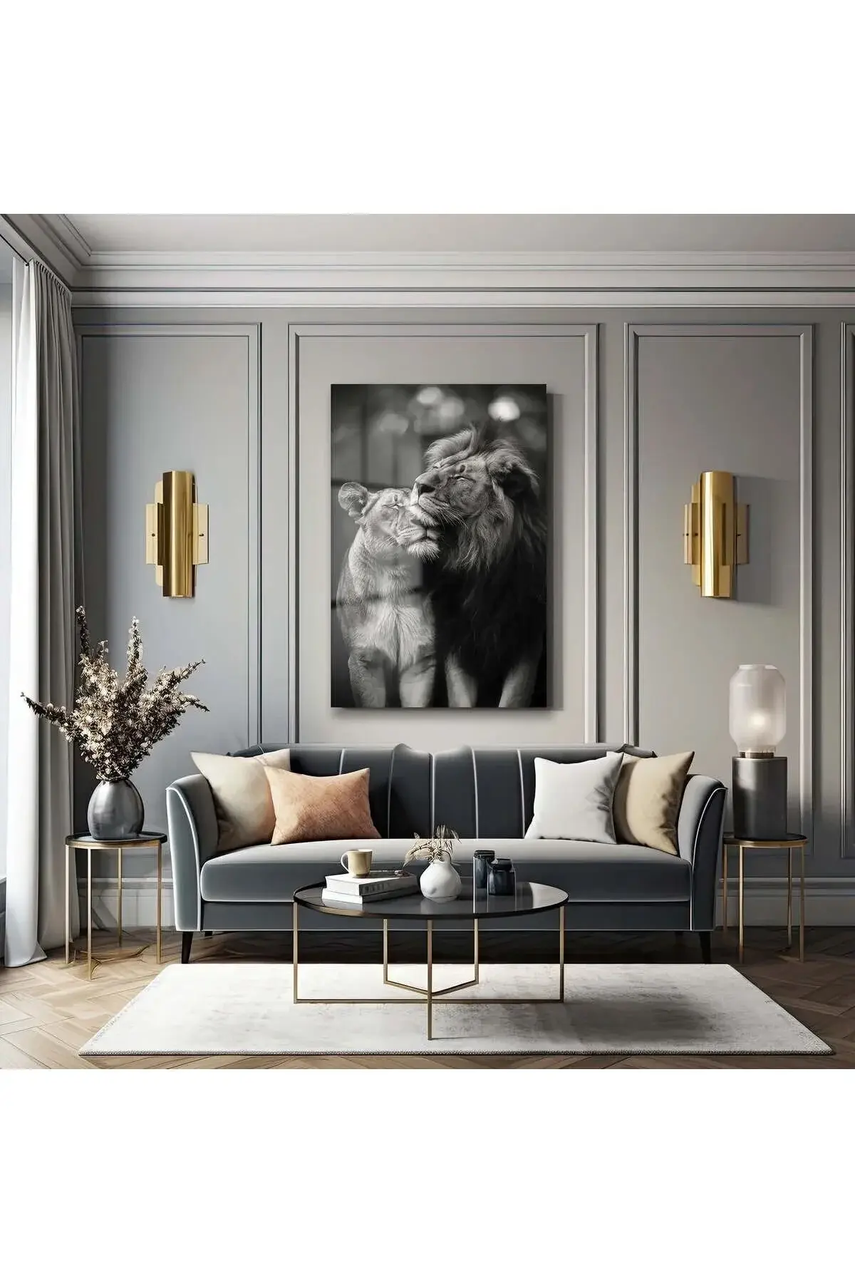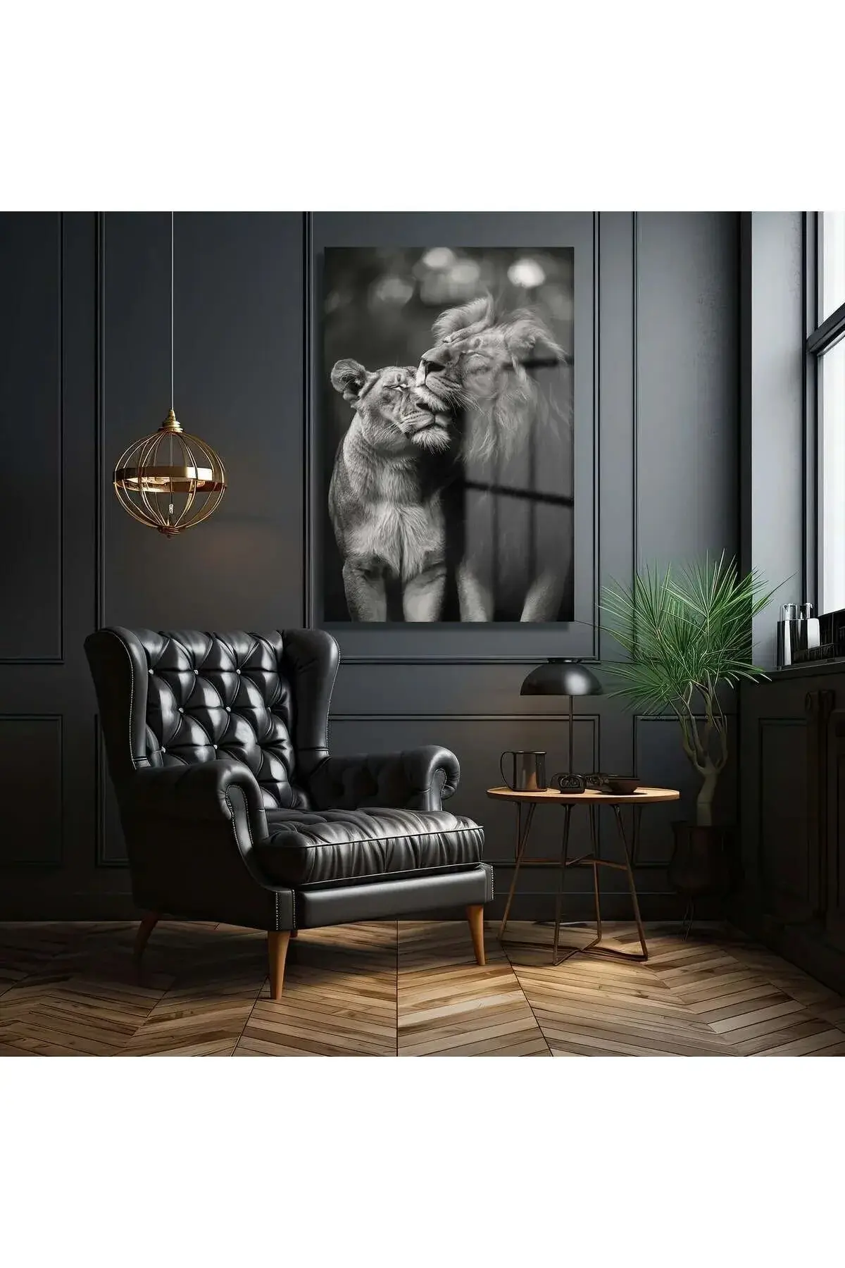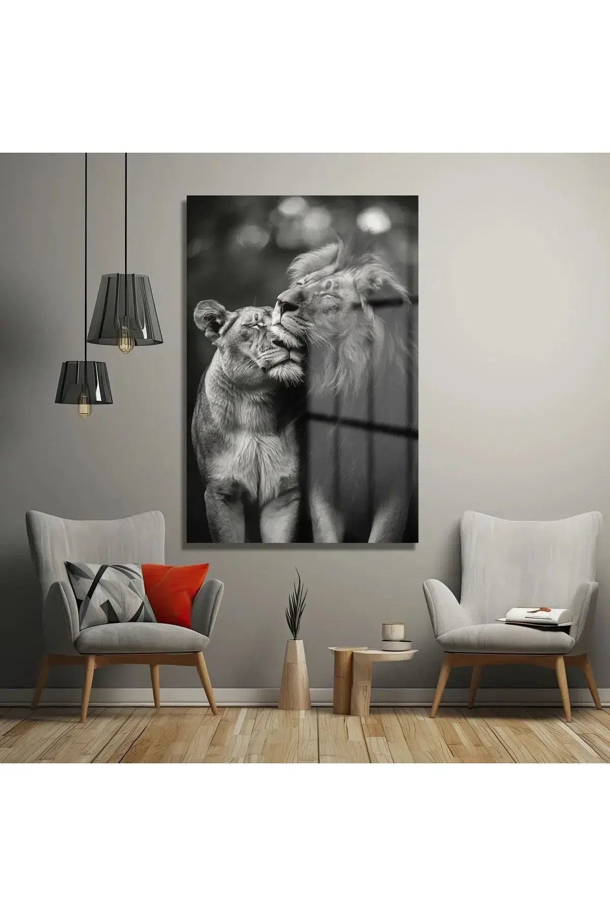 Mutlu Sevgili Aslan Ailesi Cam Tablo, Ev Ve Ofis Hediyesi Yüksek Çözünürlüklü 4mm Cam Tablo