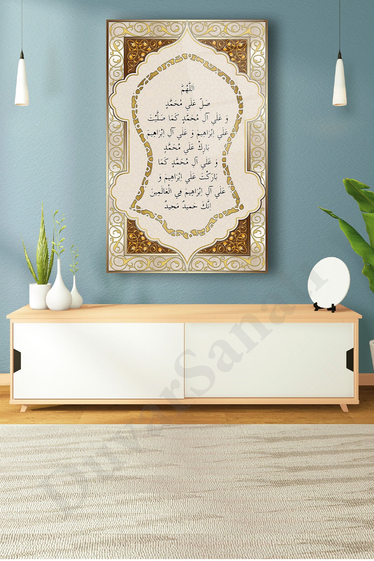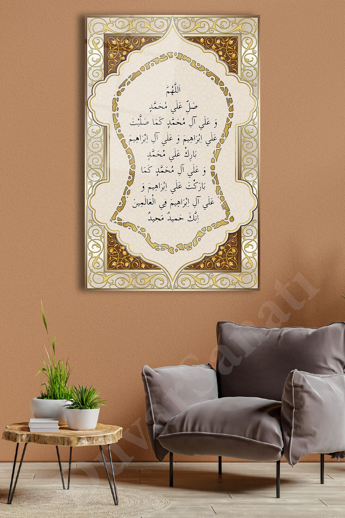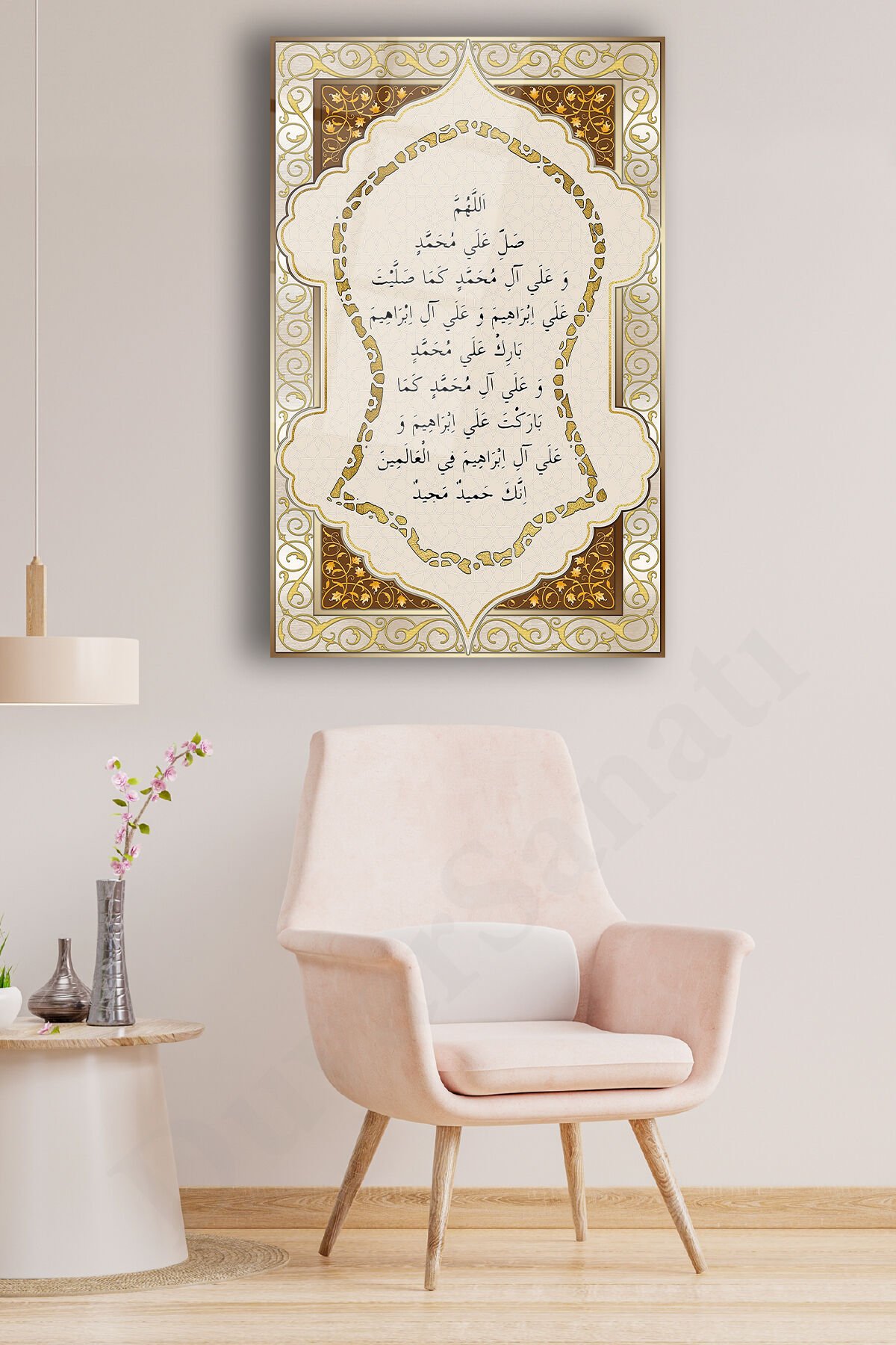 Nali Şerif İslami Dua Dikey Cam Tablo Dini Modern Ev Ofis Salon Hediyelik Büyük Tablo Krem Kahverengi