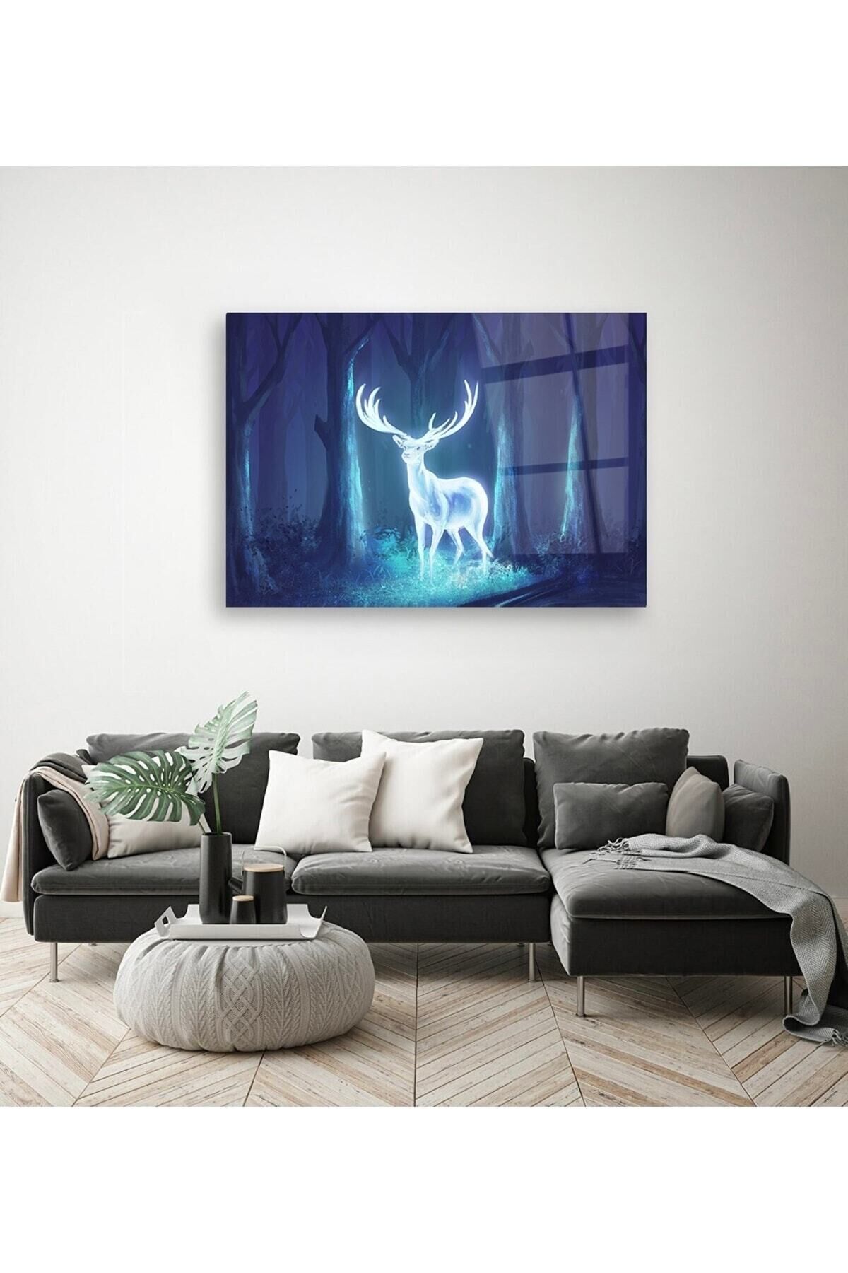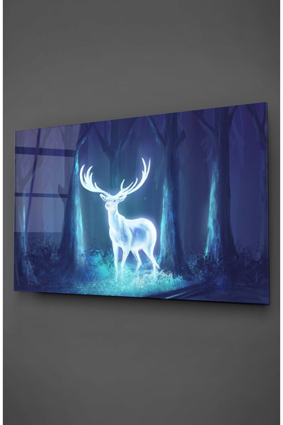 Neon Efekt Geyik Cam Tablo Renkli