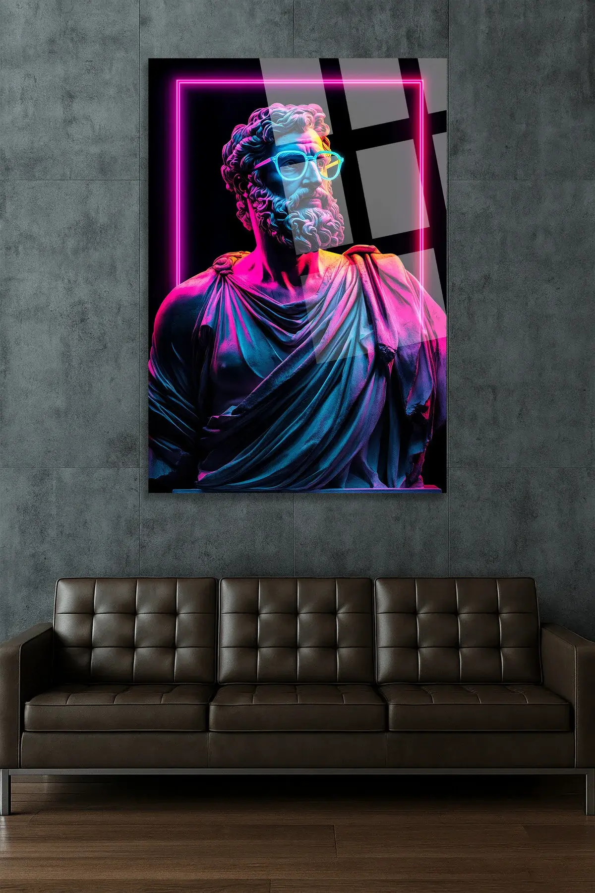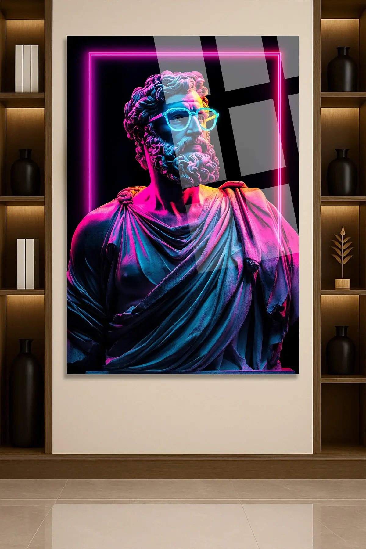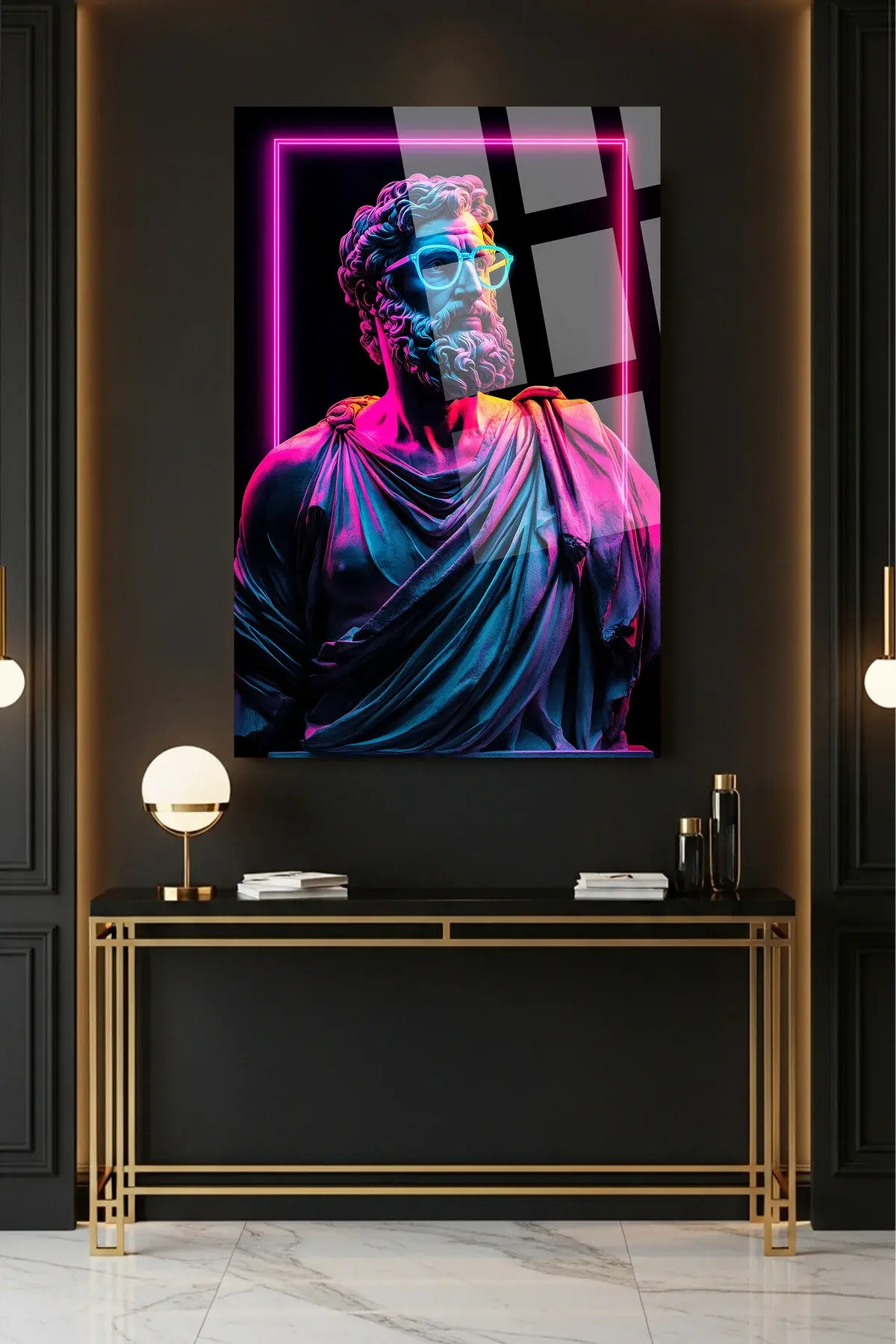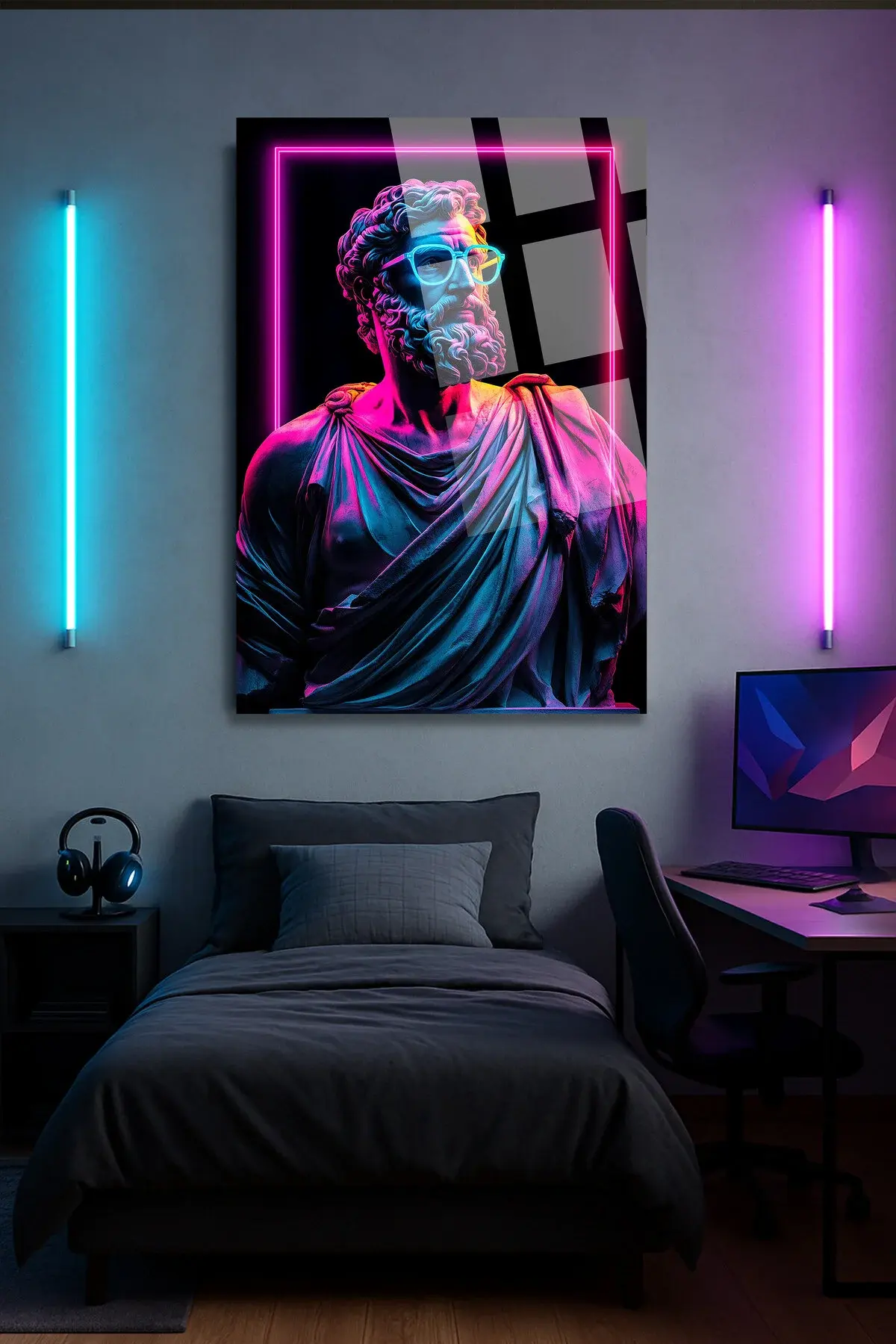 Neon Efektli Heykel Tasarım Cam Tablo – Gamer & Genç Odası Modern Duvar Dekoru MODERN TABLO Siyah