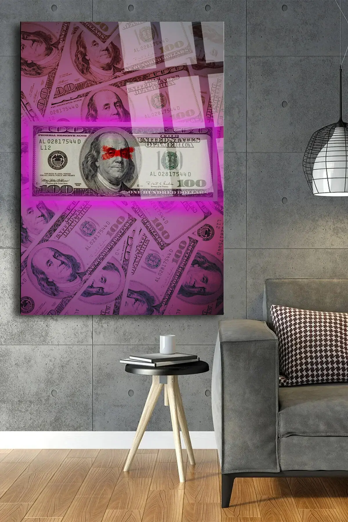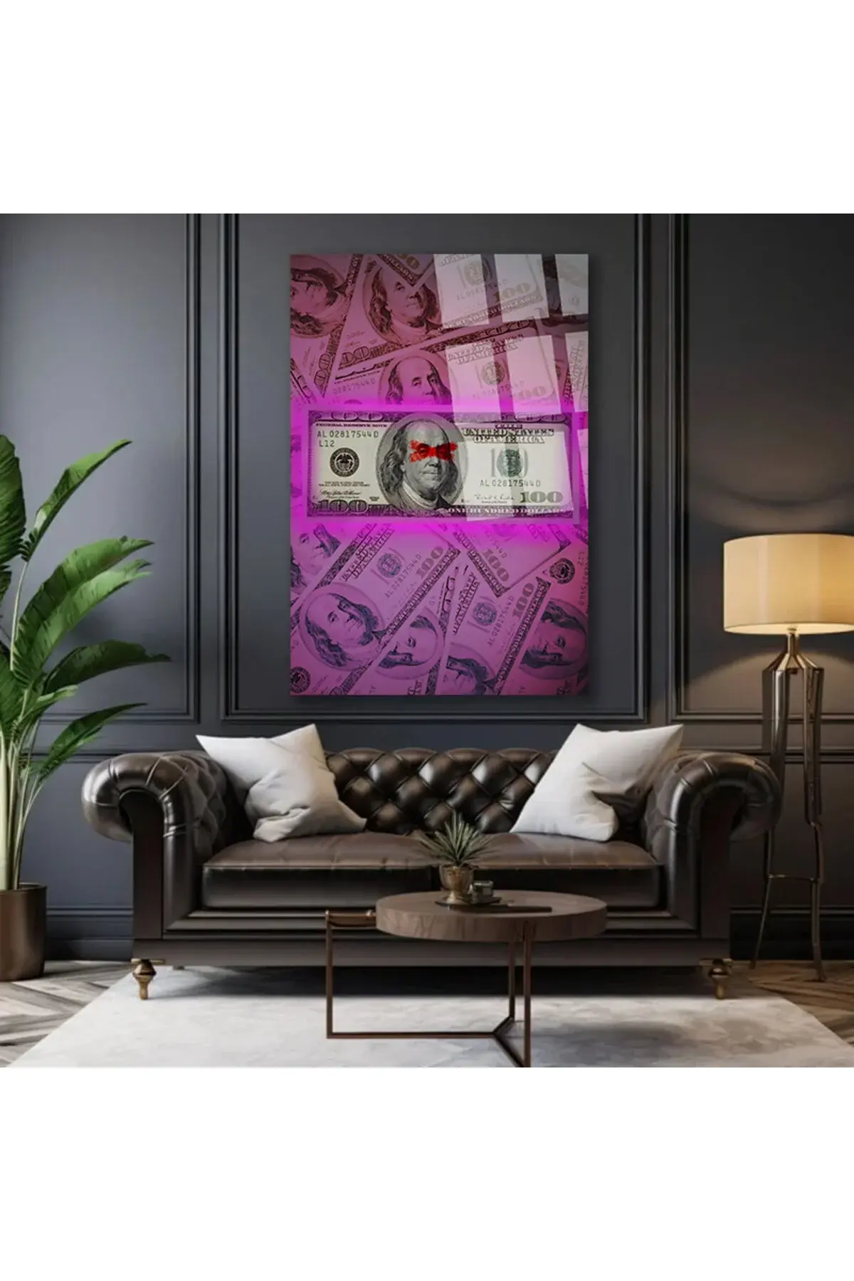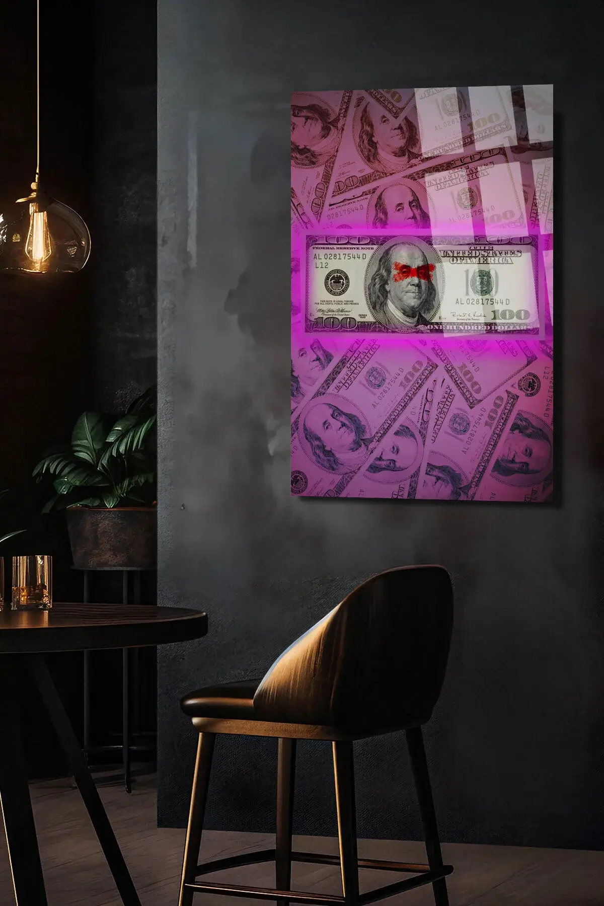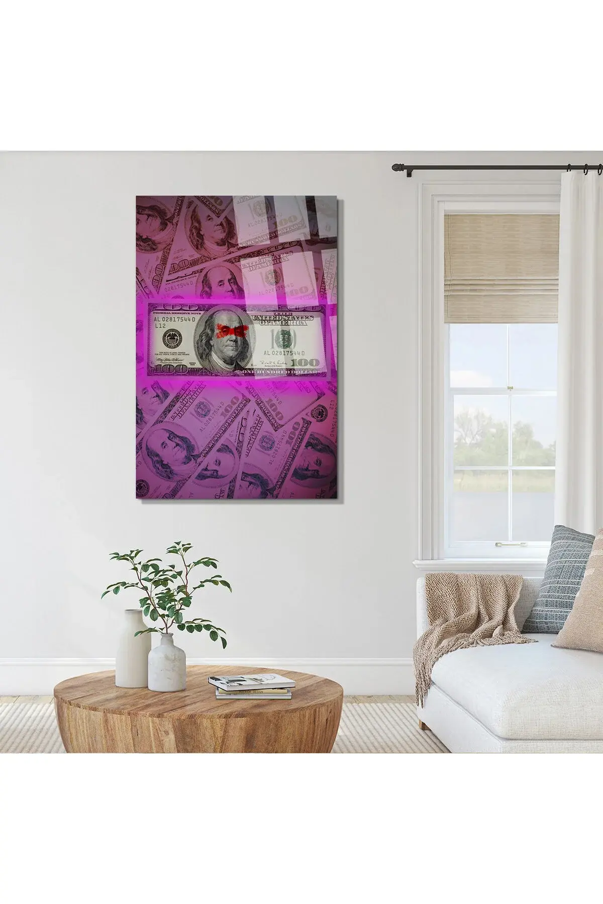 Neon Işık Konsept Dolar Ultra Canlı Renkli Kırılmaz Cam Tablo Ev Hediyesi Mor