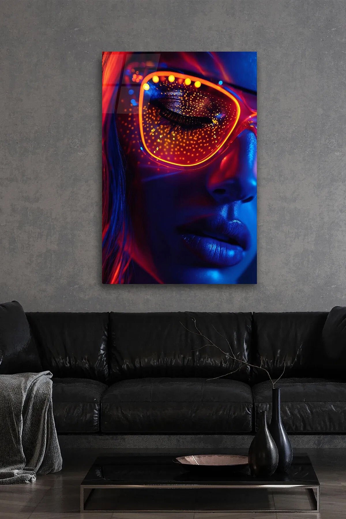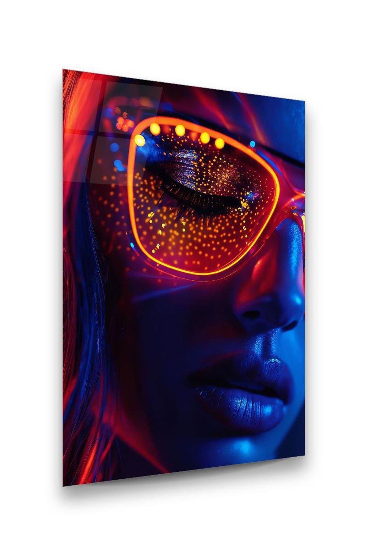 NEON RENKLERLE KADIN YÜZÜ GÖRSELİ KIRILMAZ LÜKS CAM TABLO EV İŞ YERİ OFİS HEDİYESİ Mor