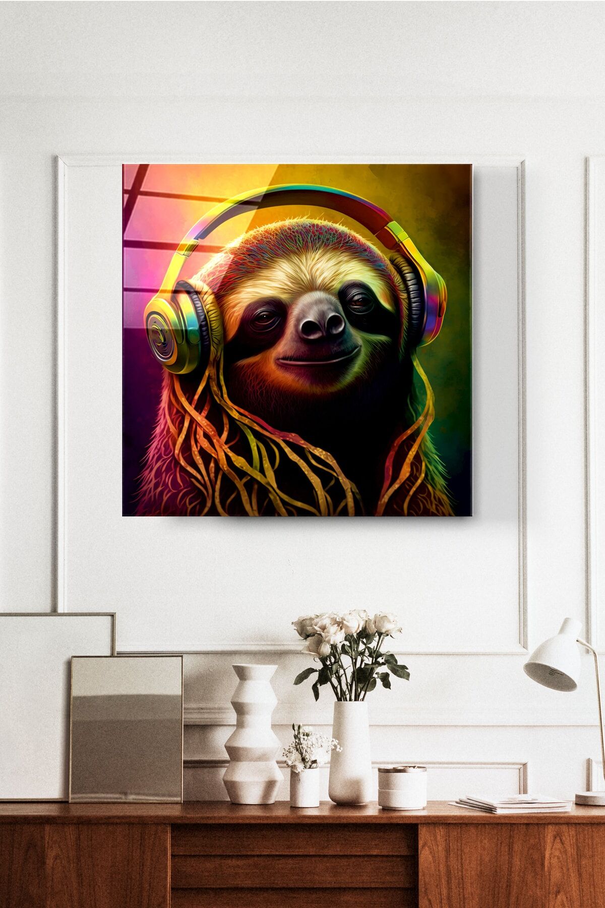 Neon Sloth Cam Tablo, Dekoratif Cam Tablo
