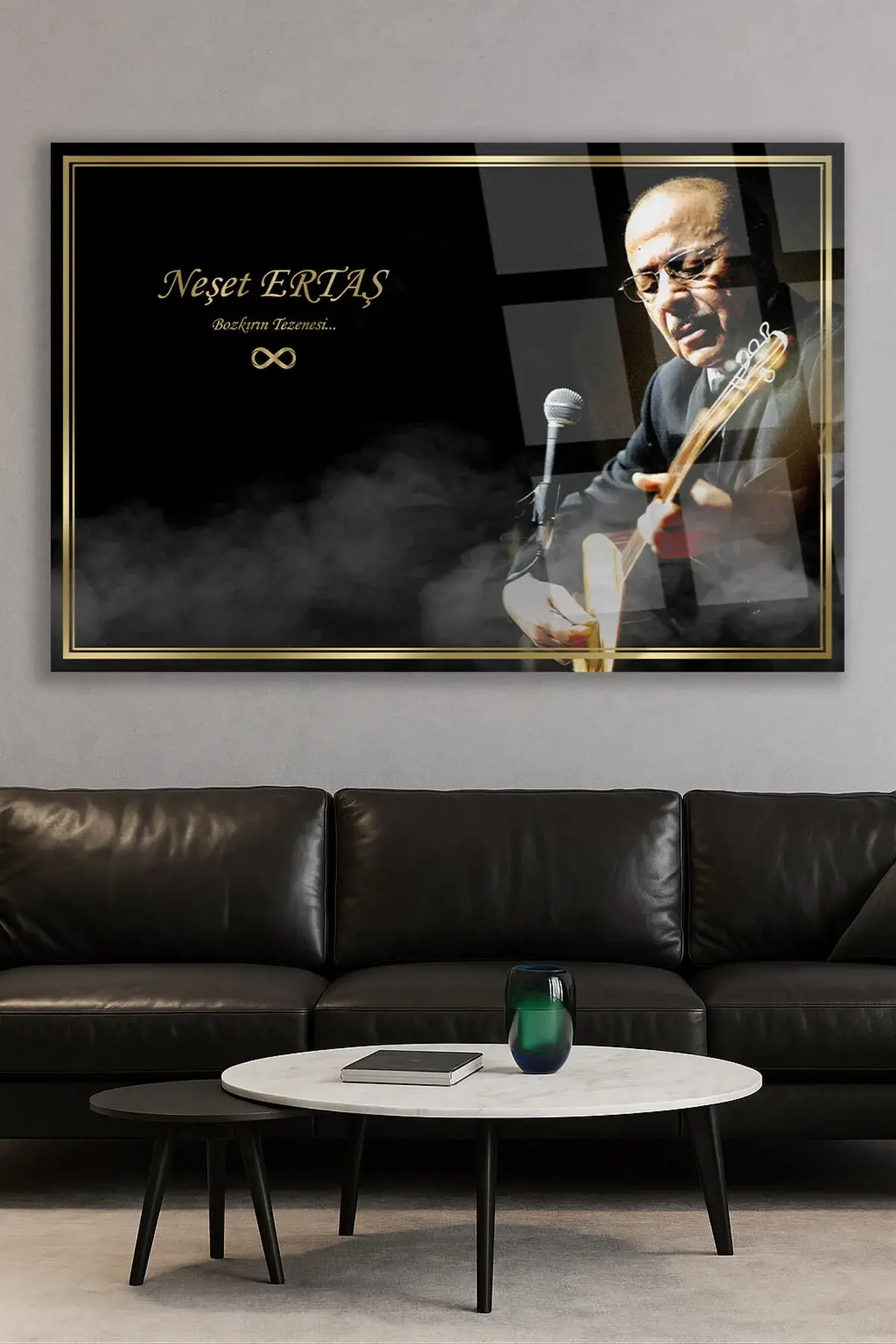 NEŞET ERTAŞ TABLOSU KIRILMAZ LÜKS CAM TABLO ULTRA CANLI RENKLER LÜKS HEDİYE TABLO Siyah