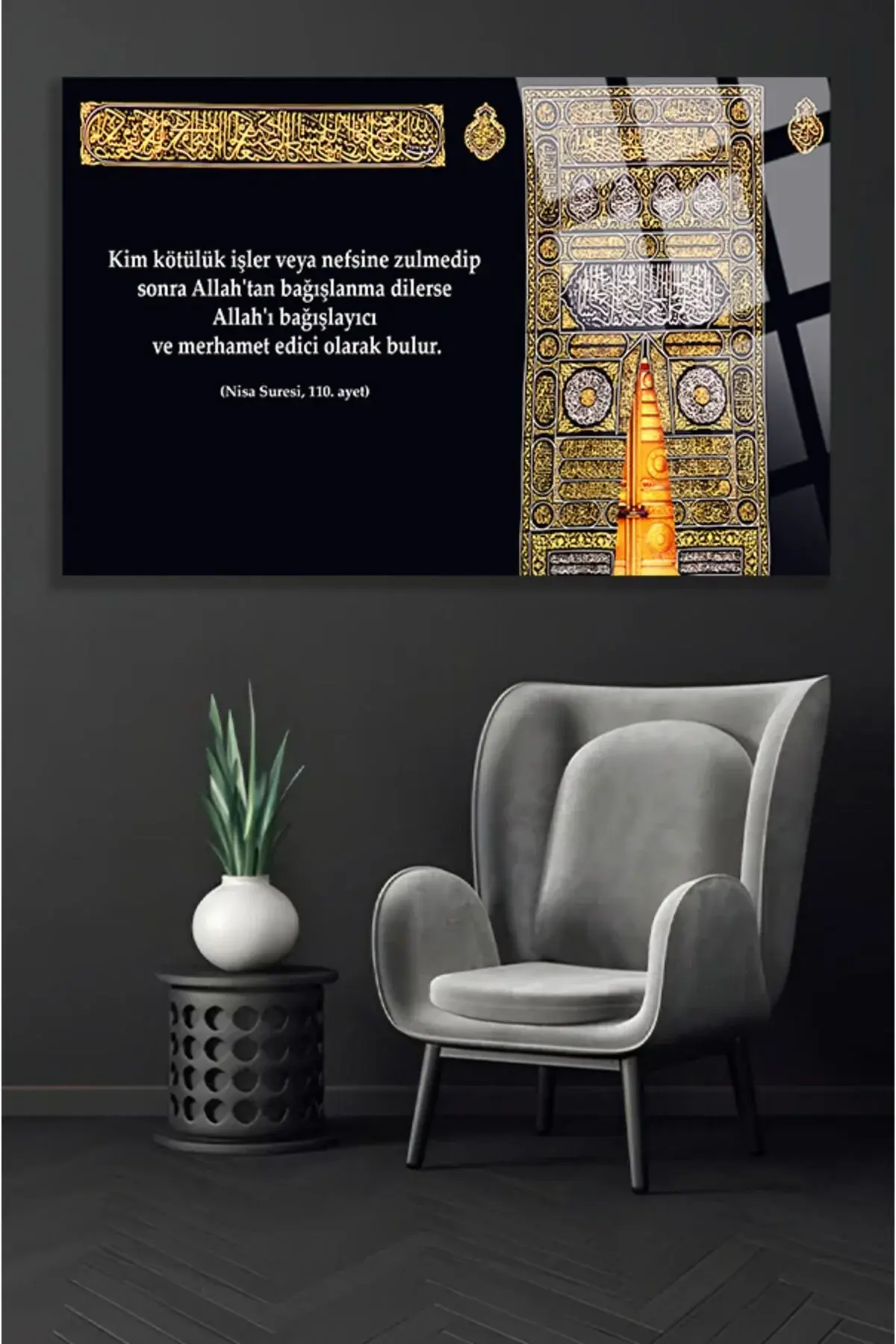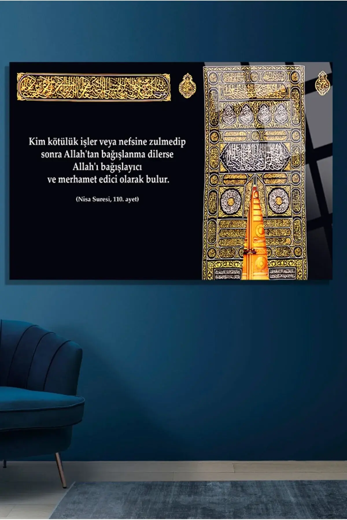 Nisa Suresi 110.Ayet Canlı Renkli Cam Tablo, Ev Ve Ofis Hediyesi Yüksek Çözünürlüklü 4mm Lüks Tablo